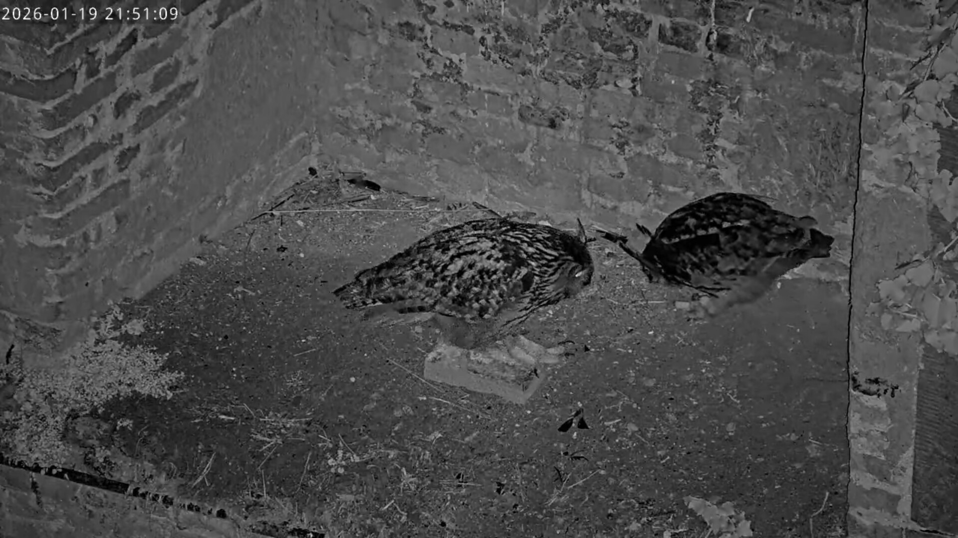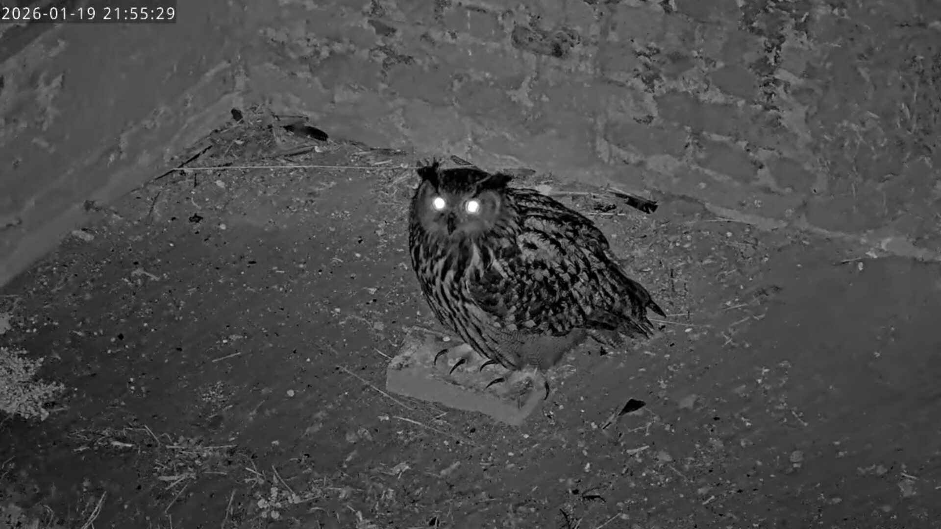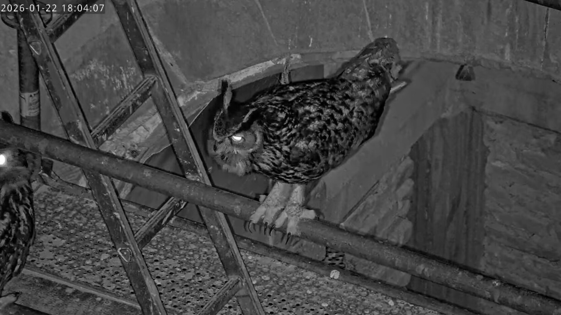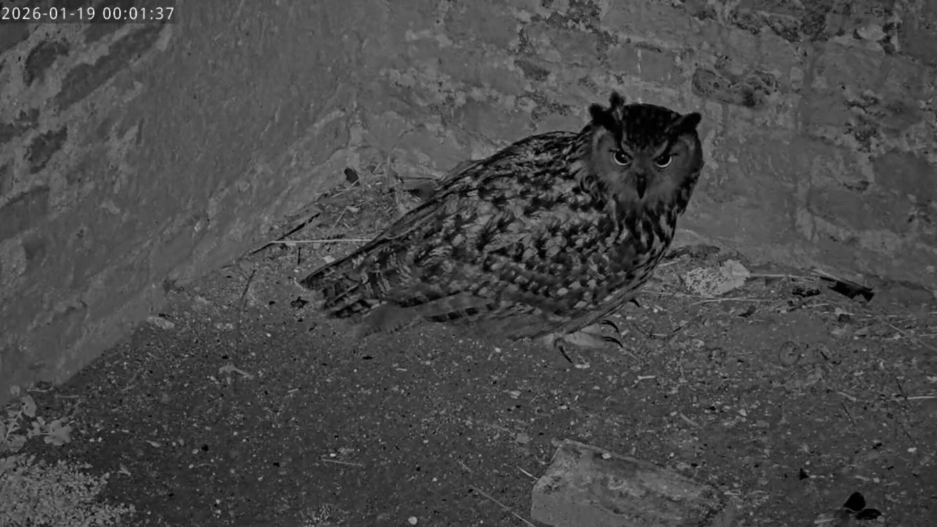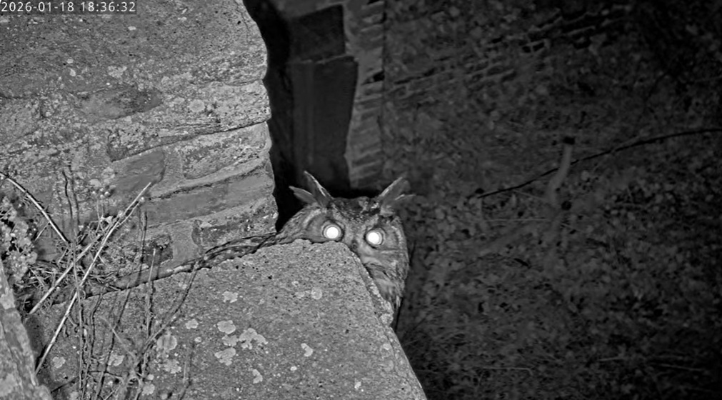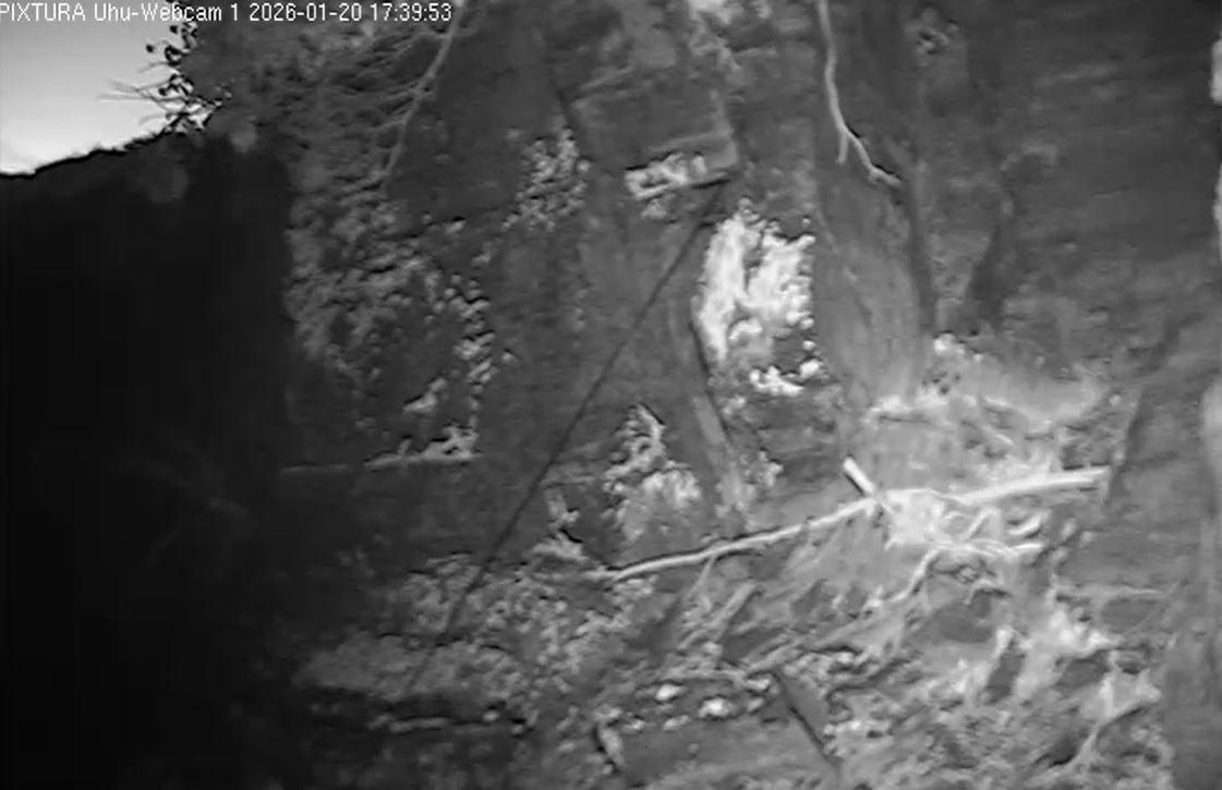 Nach einem Uhu- Duett hat die scharfäugige Kamerafrau Tristan in der Brutnische entdeckt.