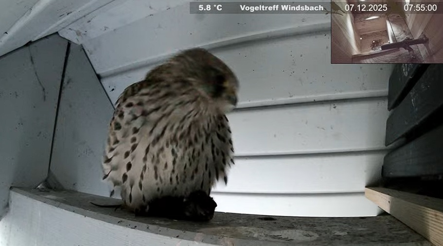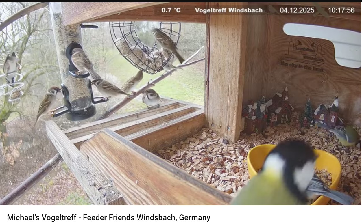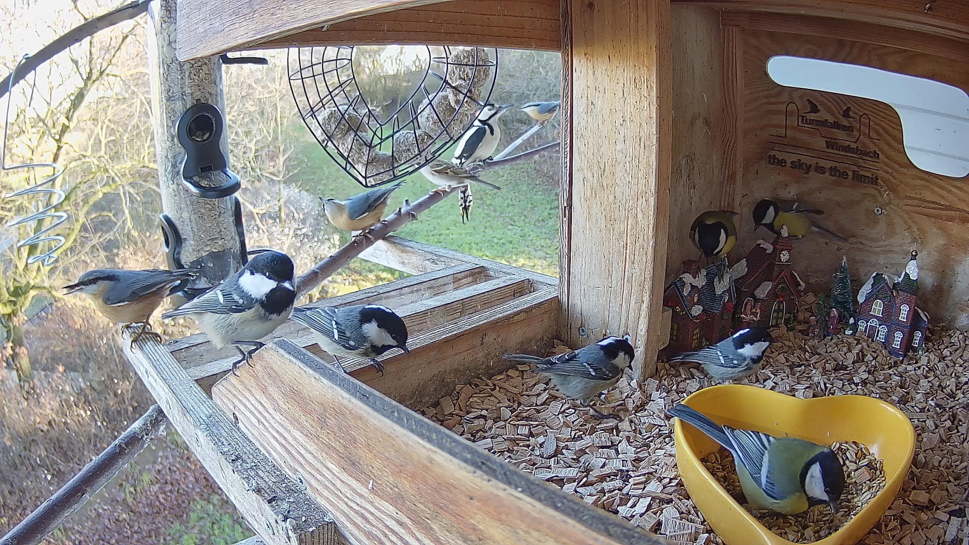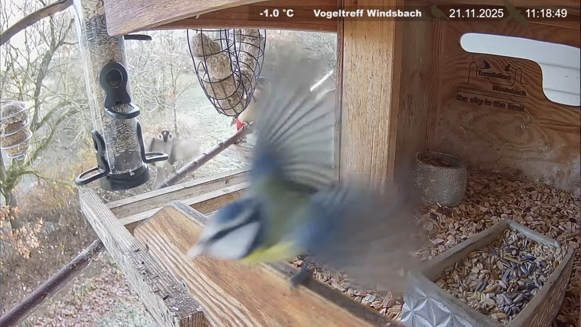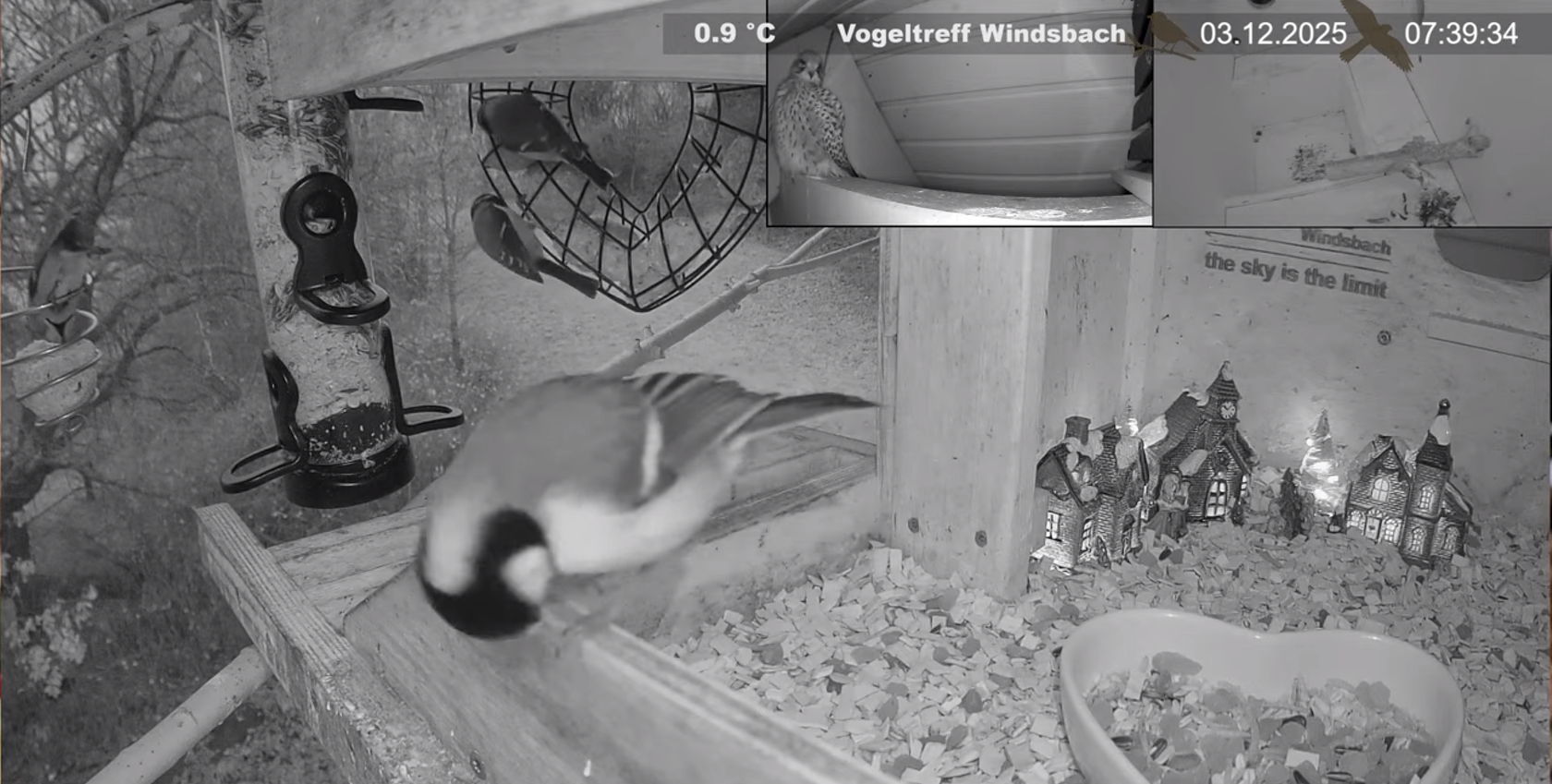 Die Meiserl sind schon beim Futtern, während sich Nanny um ihr Gefieder kümmerte. Gegen 7:50 ein ähnliches Bild ![]()