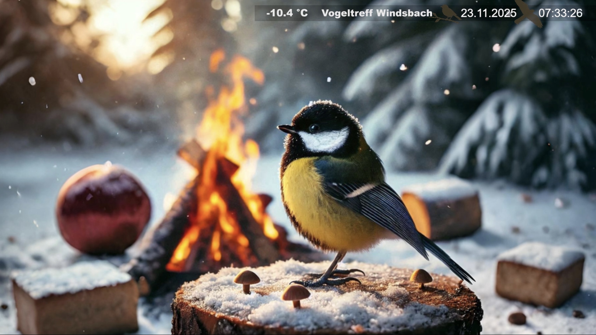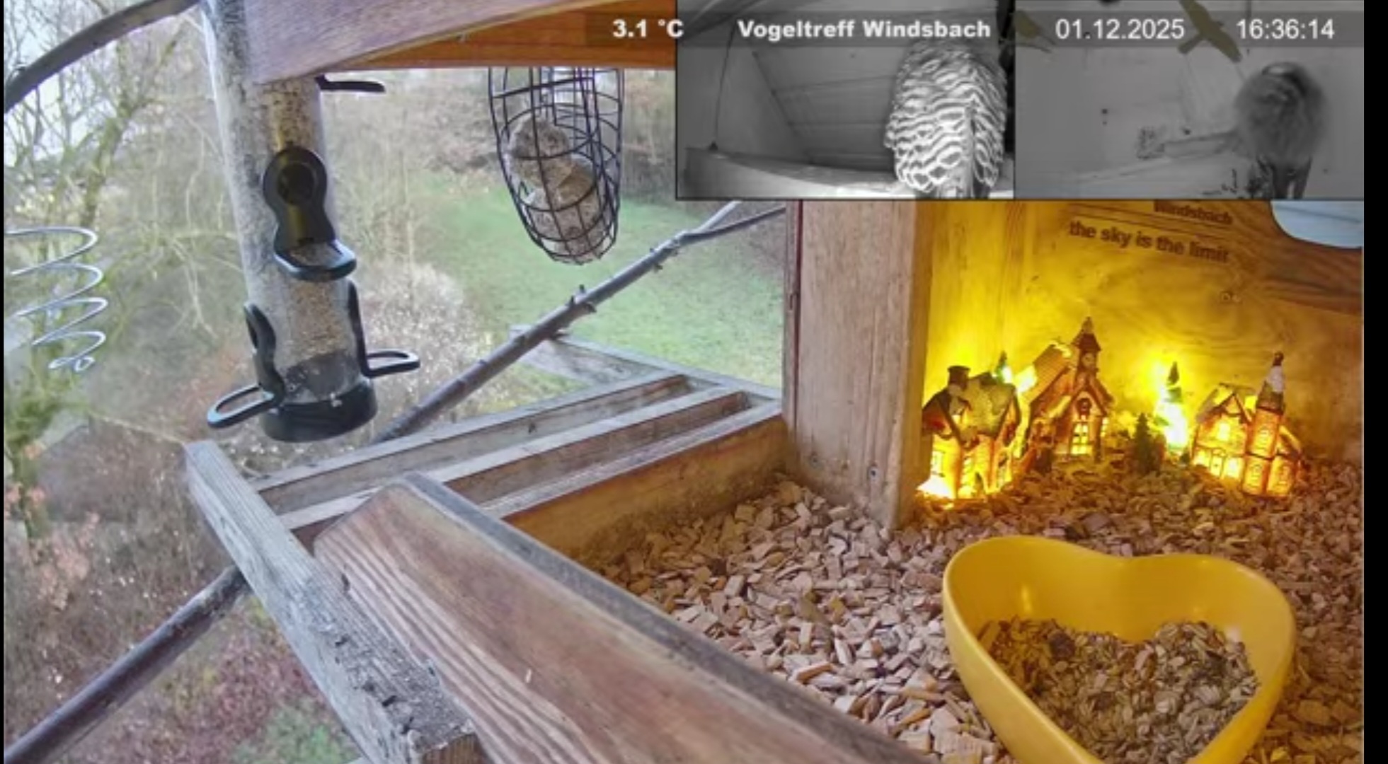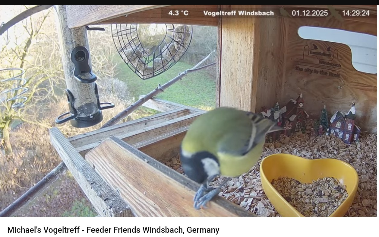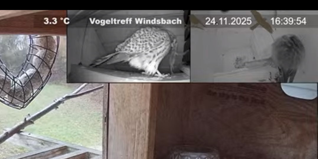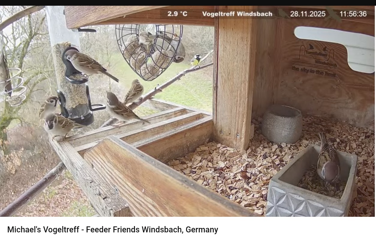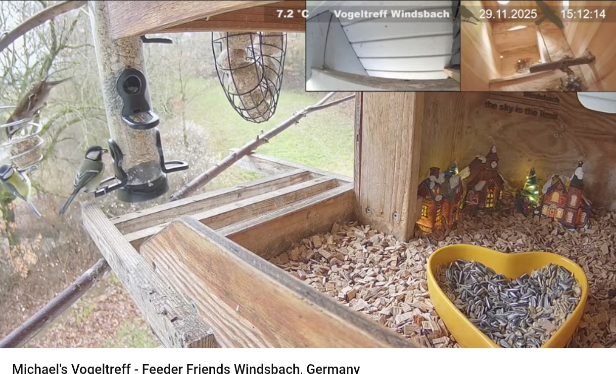 Die Meiserl sind schon beim Futtern, während sich Nanny um ihr Gefieder kümmerte. Gegen 7:50 ein ähnliches Bild ![]()