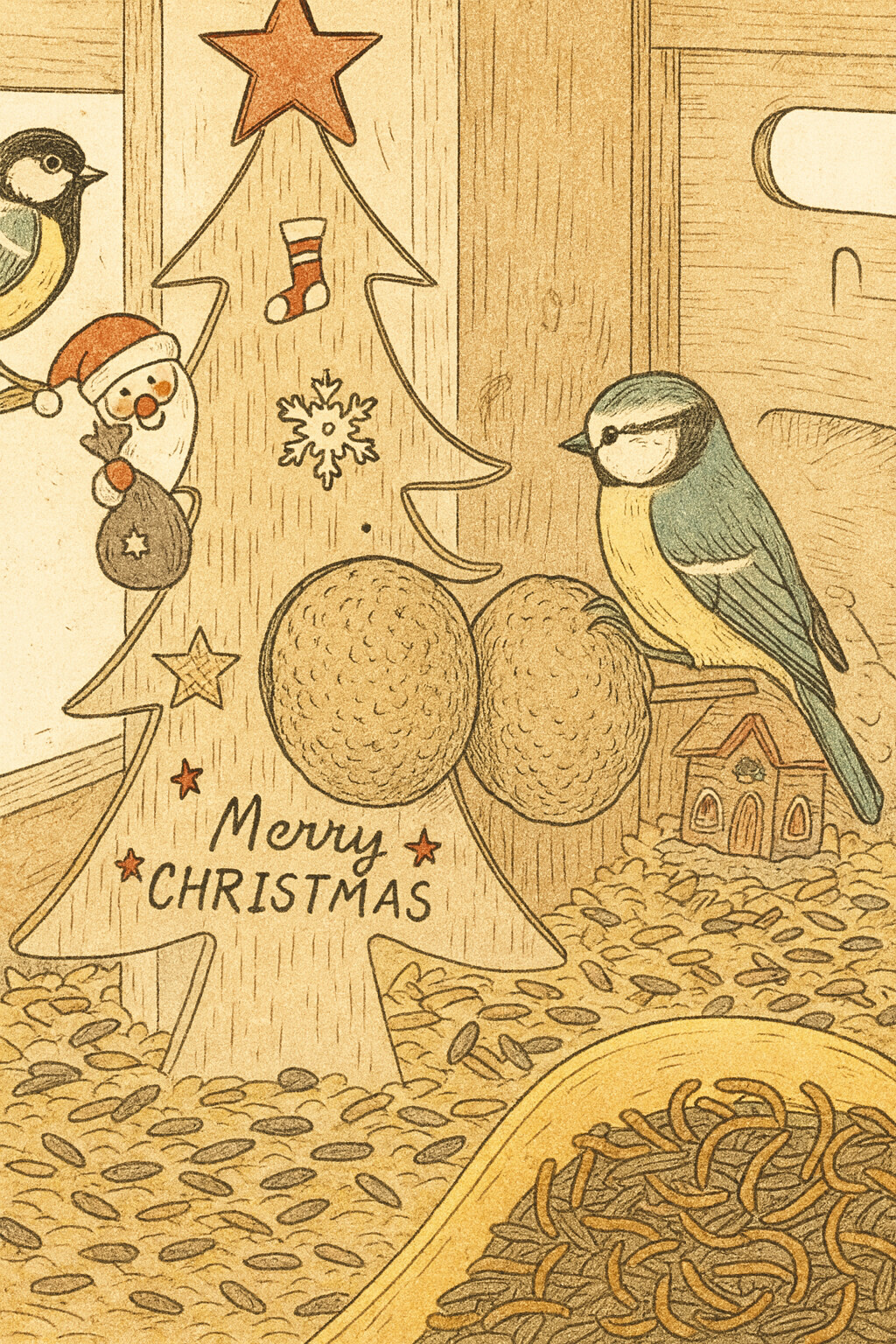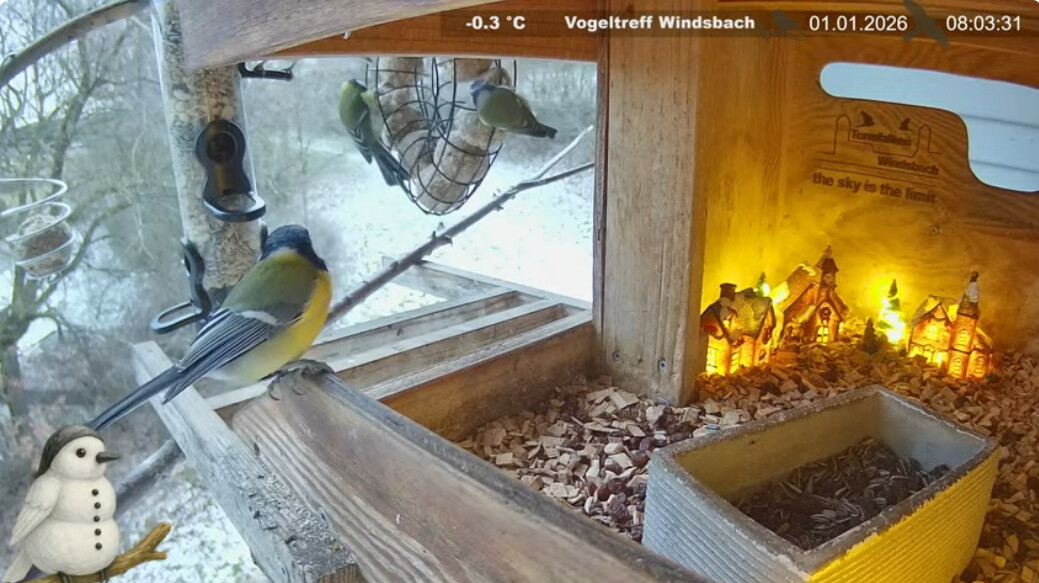 Man beachte den Vogelschneemann. Michael wieder sehr einfallsreich