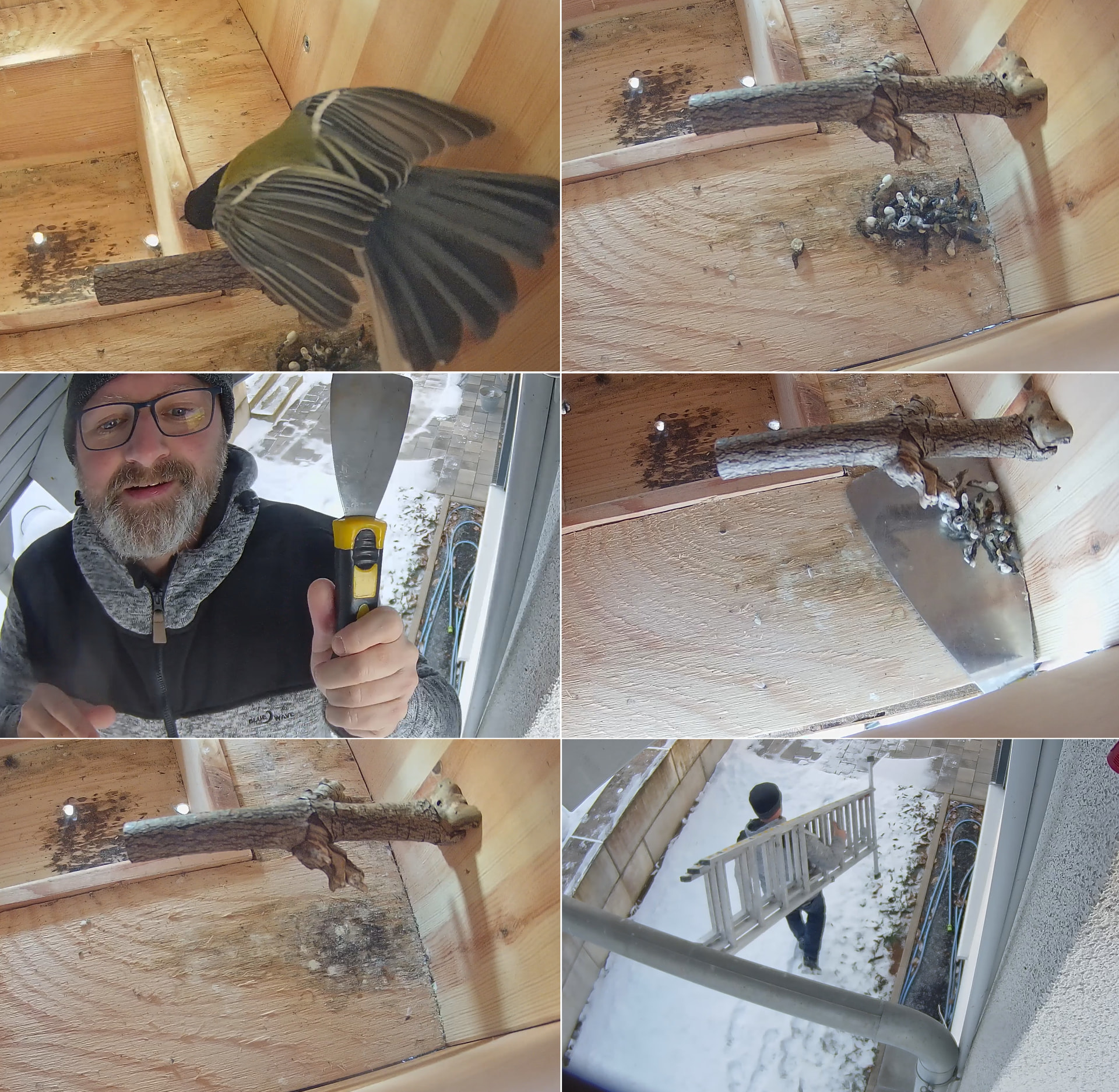 Kohlmeisenmännchen Flori bewacht und schläft täglich in seinem Kasten.