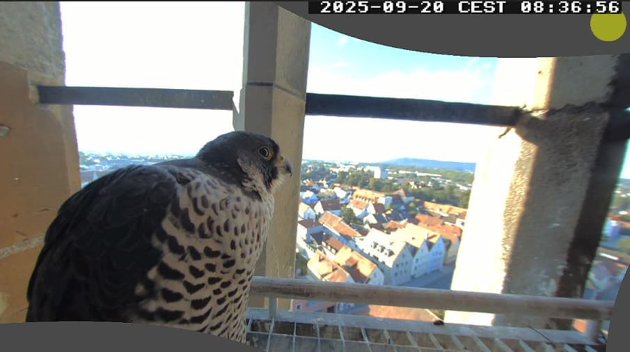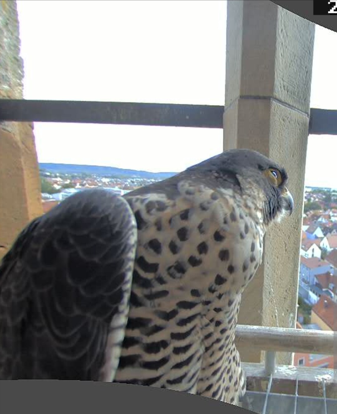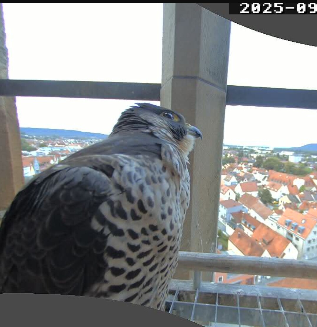 Wie schön, ja, auch das Gefieder und die Größe sieht sehr nach Liesl aus. Sie ist an Brust und Bauch noch sehr stark gefleckt (wenn auch inzwischen gesperbert und nicht mehr getropft), das lässt darauf schließen, dass es ein recht junger Falke ist.