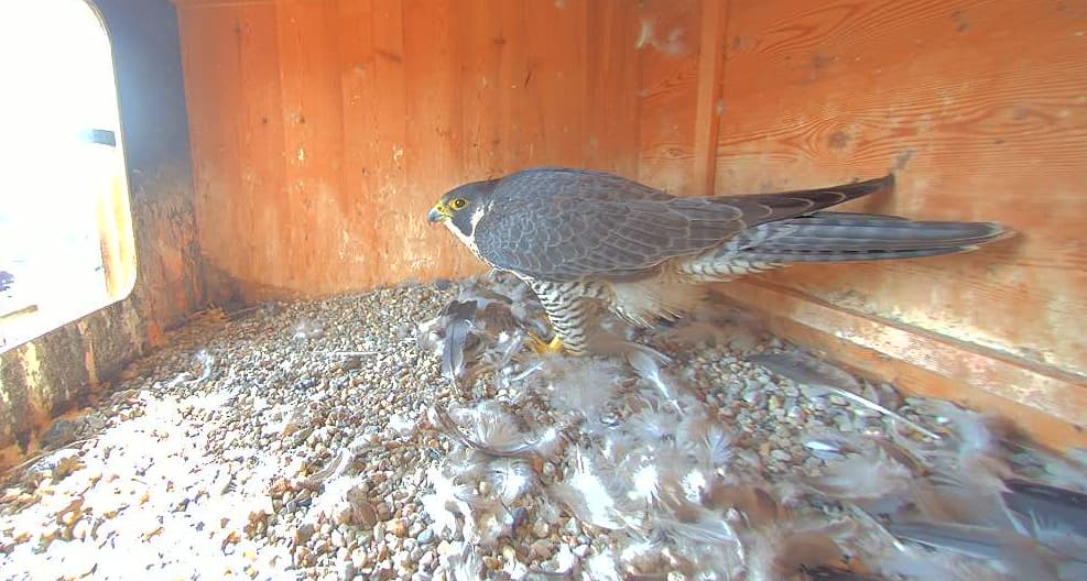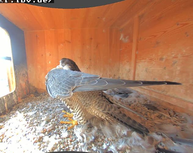 Da müsste man vor Ort sein. (Leider habe ich keinen Nistkasten in der Nähe, dass ich WF live beobachten könnte…) aber ja, von den meisten anderen Cams kenne ich das auch so, dass eher die Weibchen den Kasten „hüten“, wenn sie denn ganzjährig da sind. In Oberbayern ist das anders, da ist Frieda schon seit dem Sommer nicht mehr gesichtet, dafür passt Freddy auf den Brutplatz auf, hie und da übernachtet er sogar. Frieda erscheint wohl nur zur Herbstbalz und zur Brutzeit. In anderen Kästen wiederum sind beide Revierfalken ganzjährig zu beobachten.