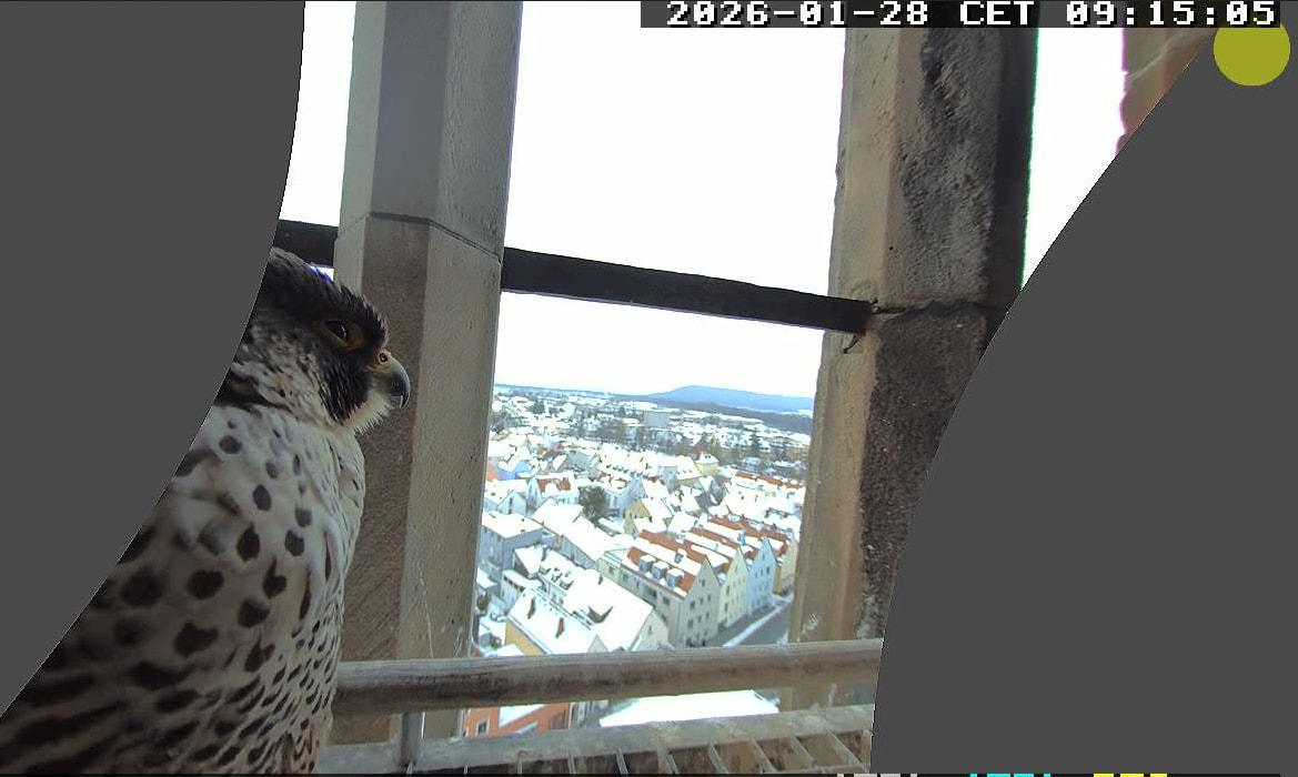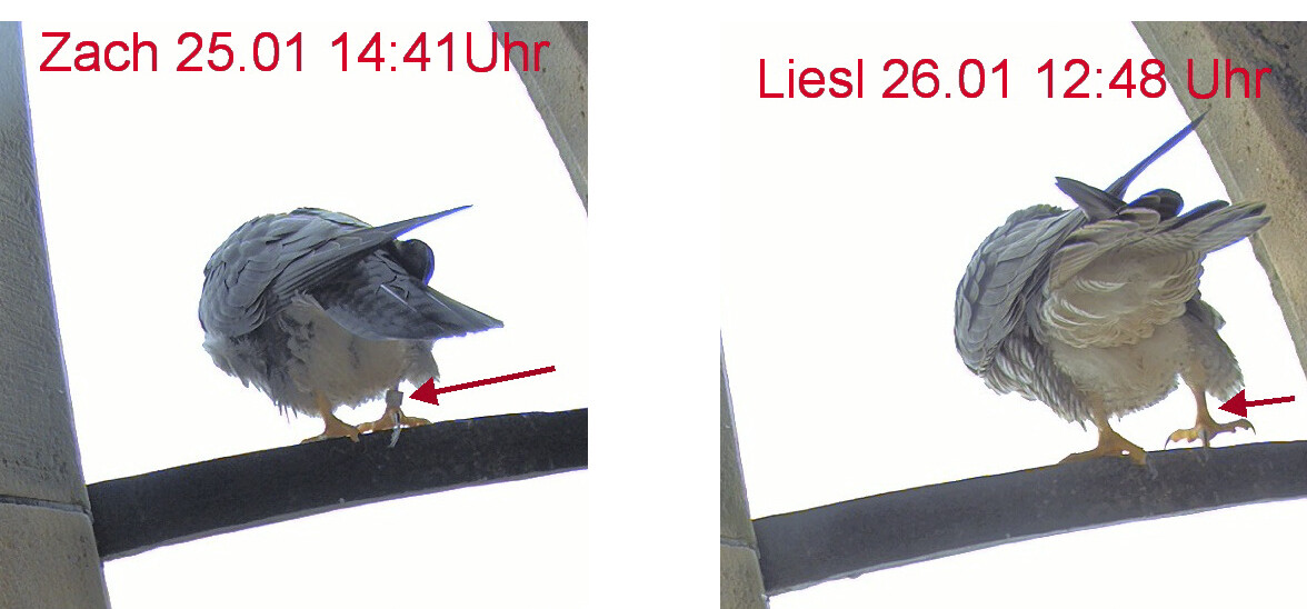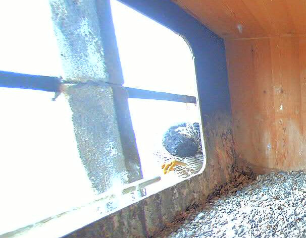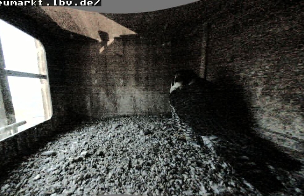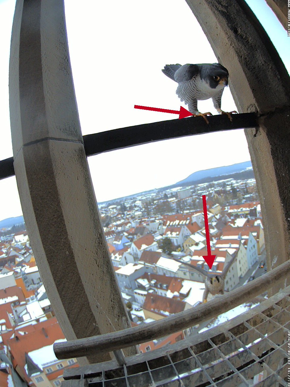 14:35 - Zacherl (ich konnte ganz kurz die Beringung sehen) sitzt wieder auf der Stange - ähnlich wie beim Bild von LisaMarie gestern Nachmittag.