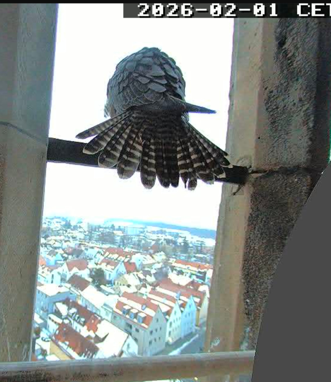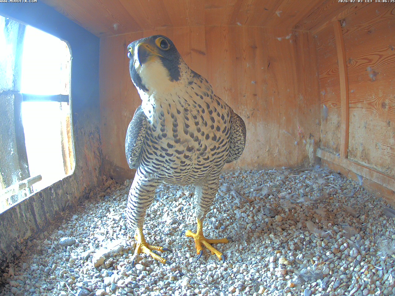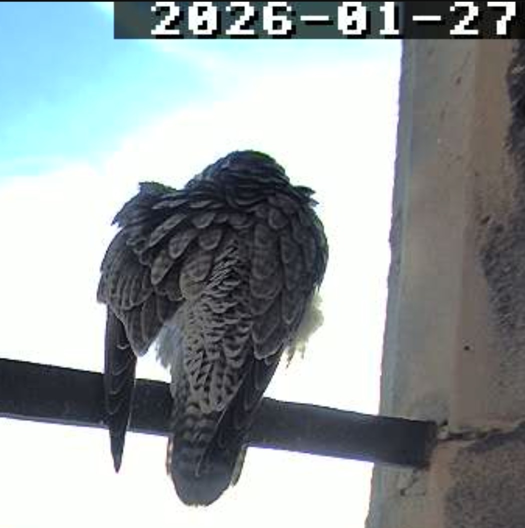 14:35 - Zacherl (ich konnte ganz kurz die Beringung sehen) sitzt wieder auf der Stange - ähnlich wie beim Bild von LisaMarie gestern Nachmittag.