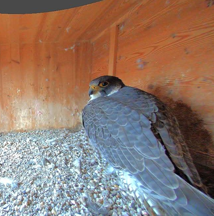 Ein Falke sitzt gerade hier im Eckerl - wahrscheinlich ist es Liesl ![]()