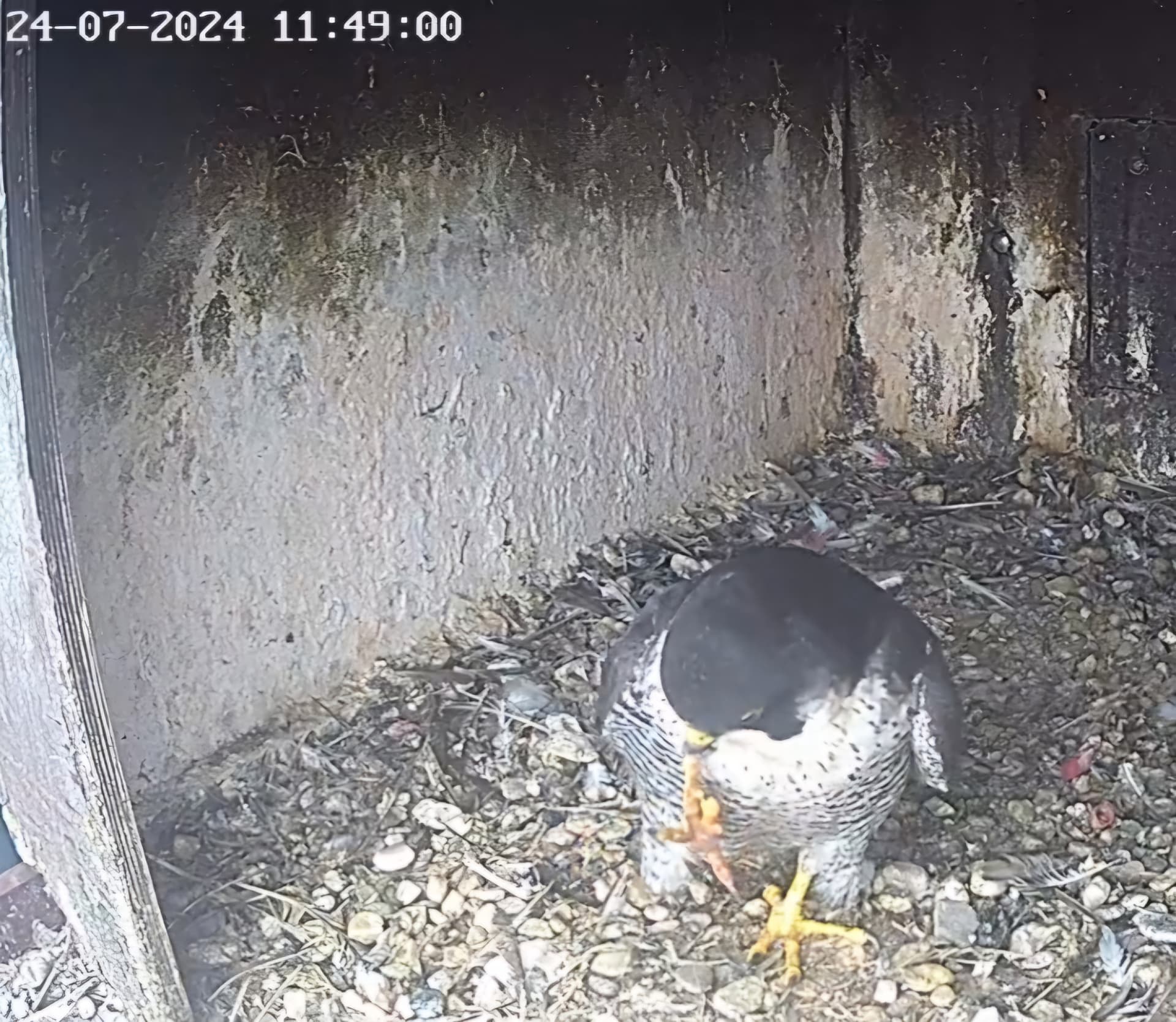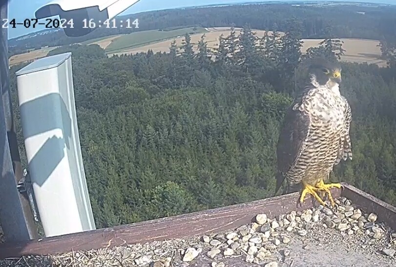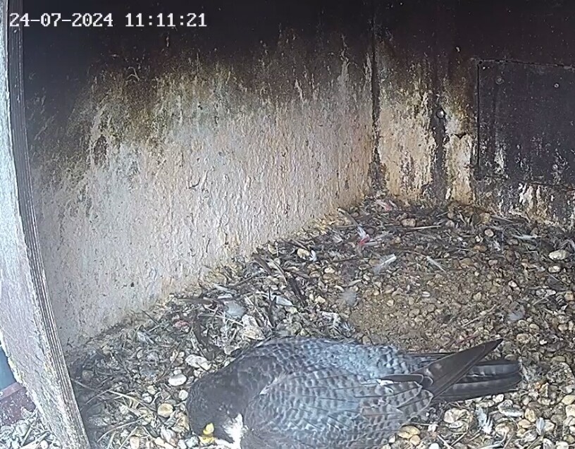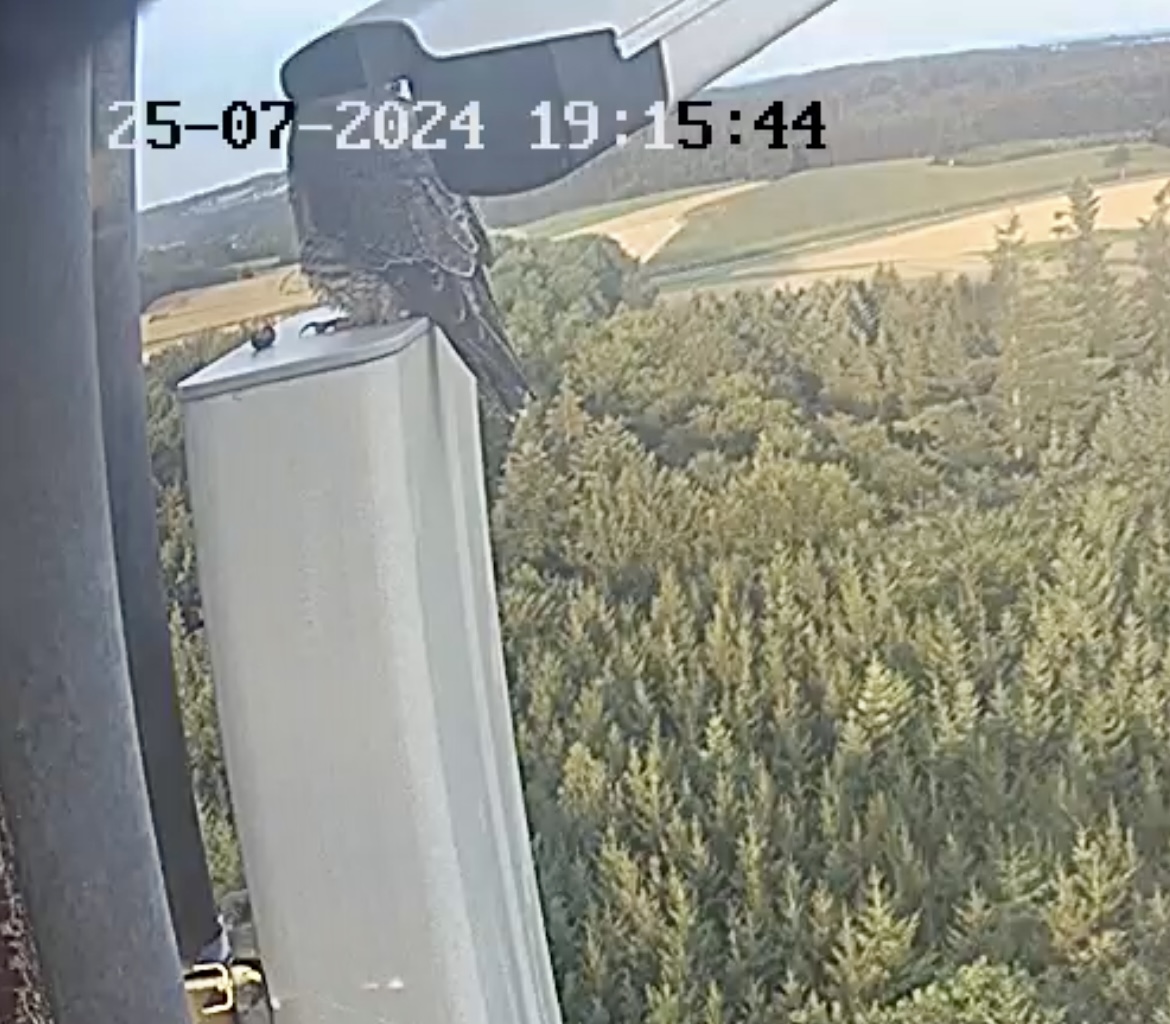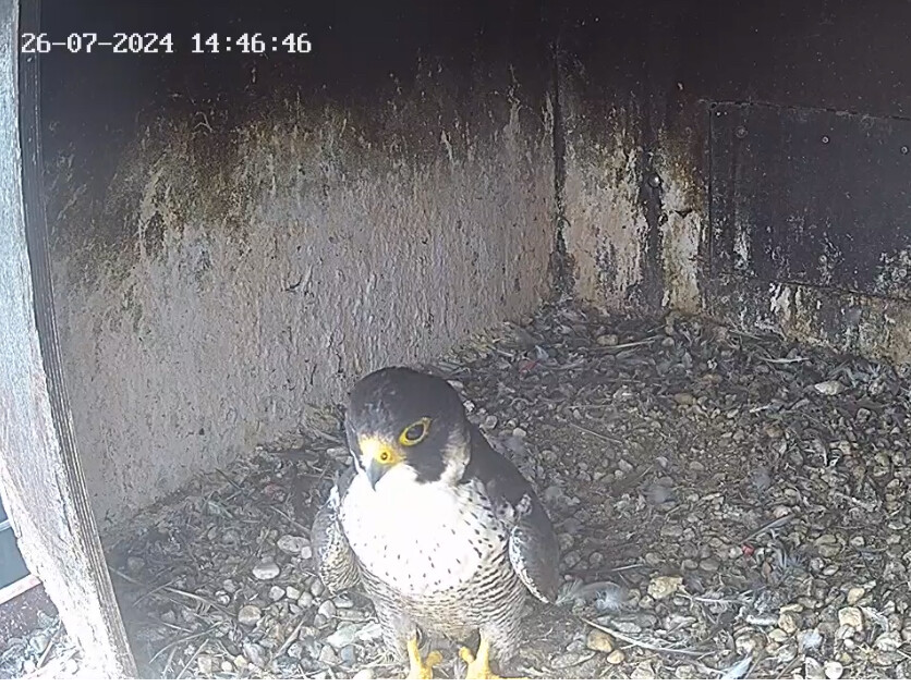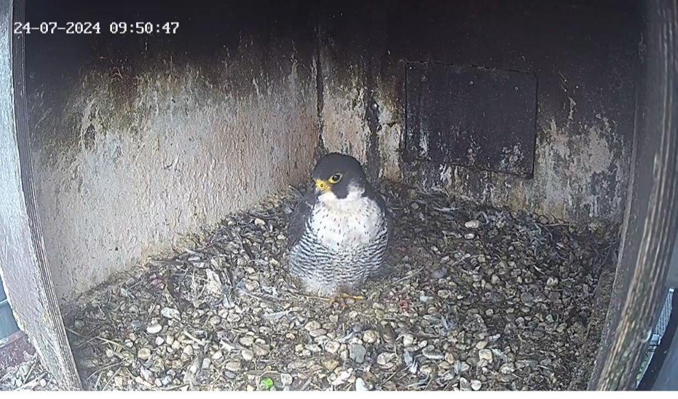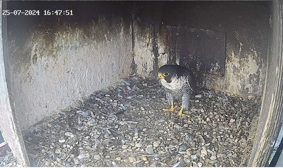 10.45h: Jetzt sieht man den Alt-Falken im Kasten von vorne. Freddy oder Frieda?