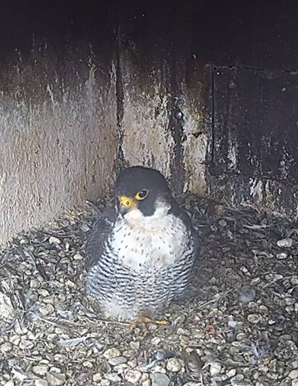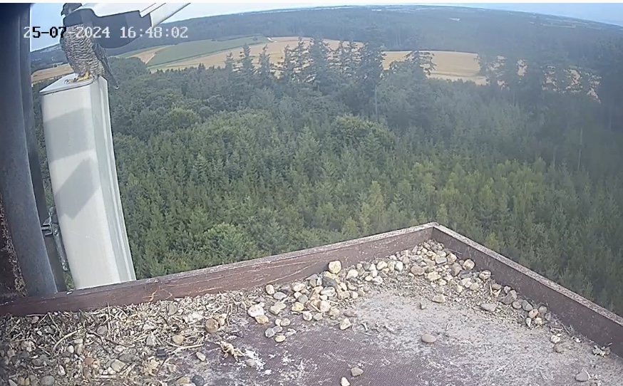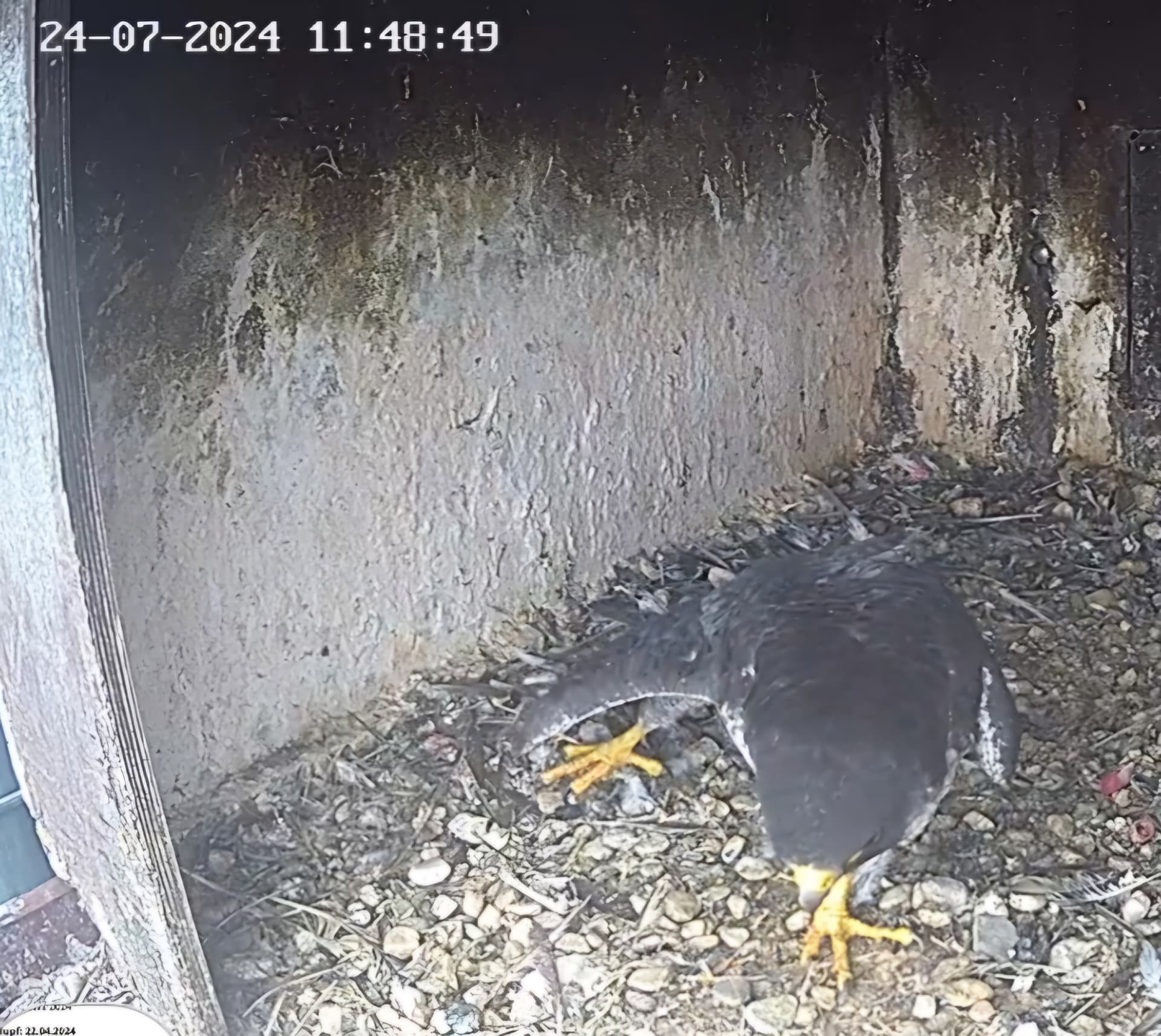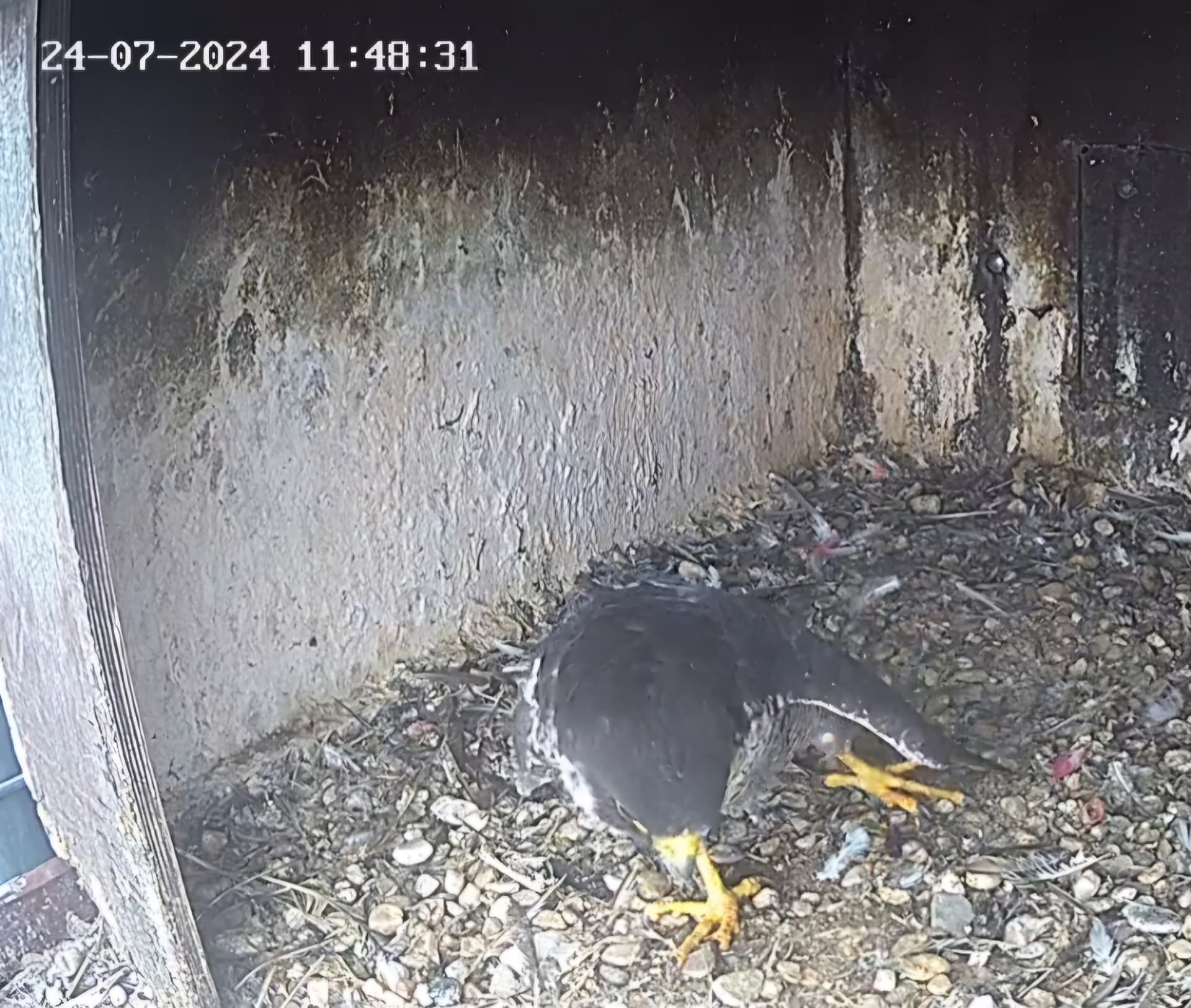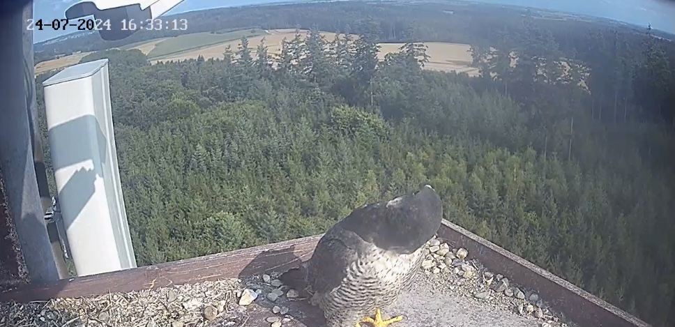 10.45h: Jetzt sieht man den Alt-Falken im Kasten von vorne. Freddy oder Frieda?