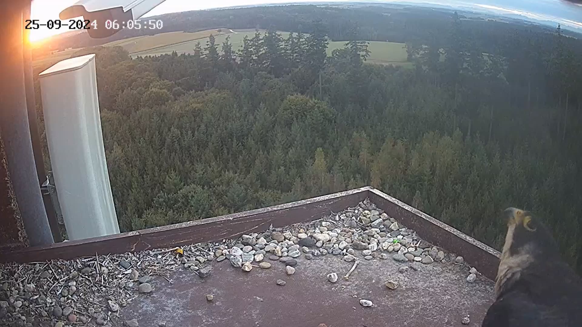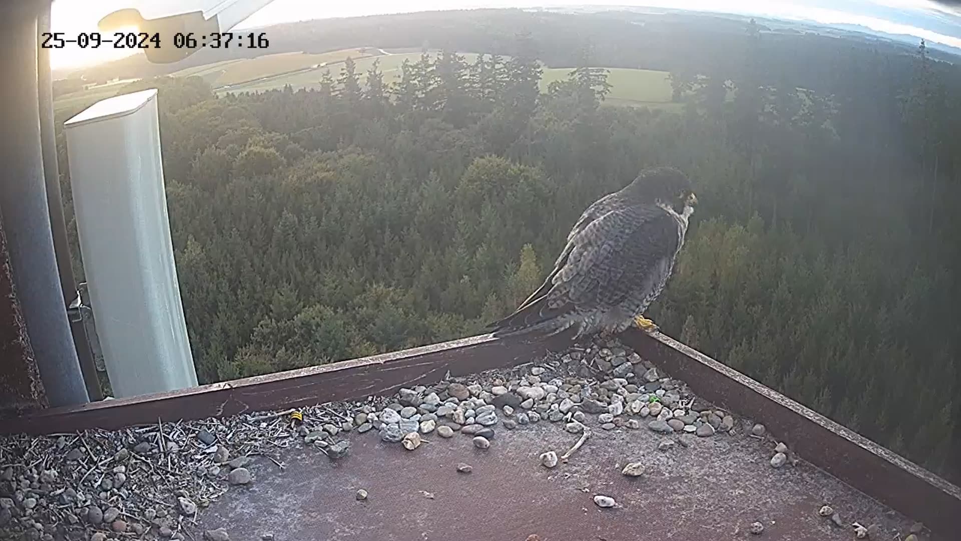 17:07 - es sitzt jemand in der rechten Ecke (Außencam) und schmeißt einen langen Falkenschatten schräg über den ganzen Balkon