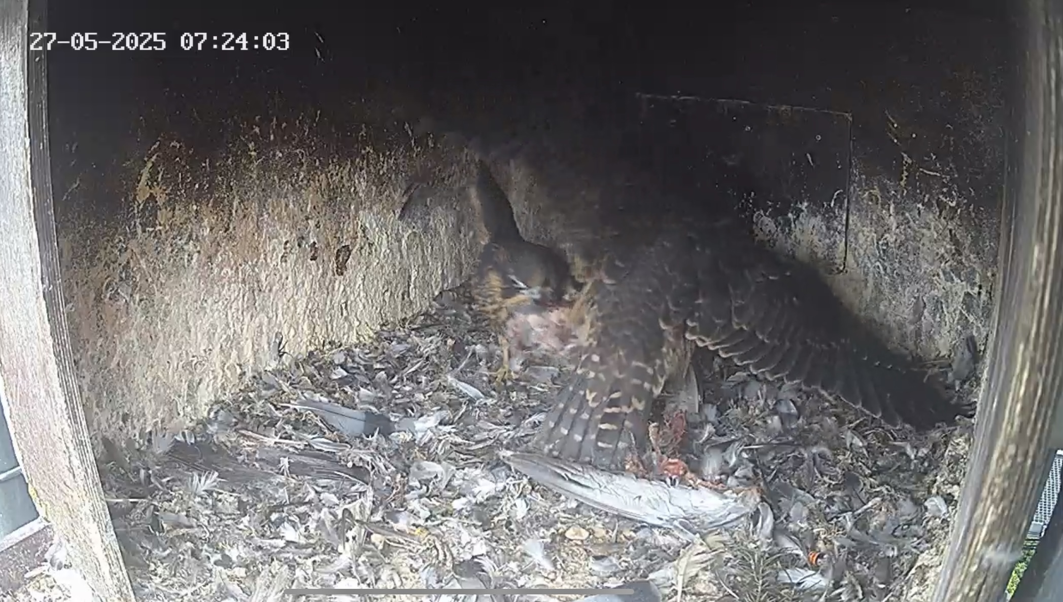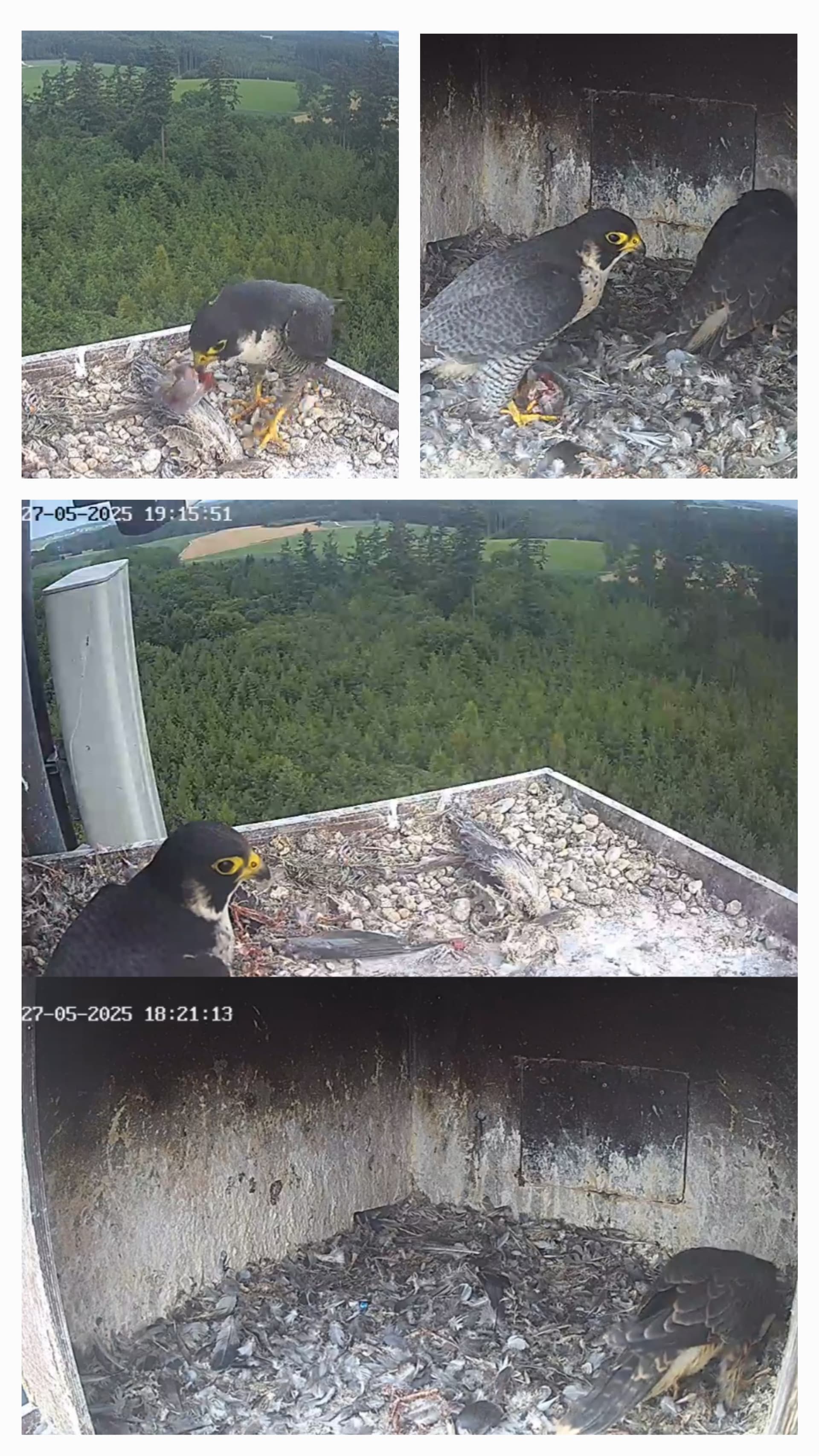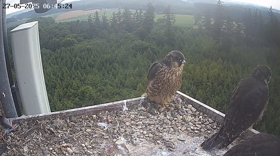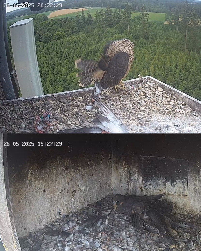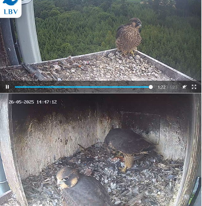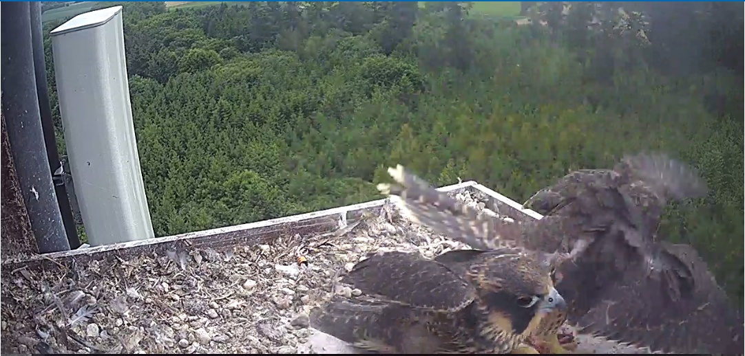 Sehr brav, die oberbayerischen Jungfalken. Kurze Ausflüge, dann wieder ins traute Heim. In Coburg gabs schon Rettungsaktionen. In der Stadt ist das schon alles nochmal gefährlicher, glaube ich…