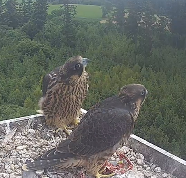 Ich finde es so schön, dass die heurigen Jungfalken nach dem Flüggewerden auch wieder recht „kastentreu“ zu sein scheinen