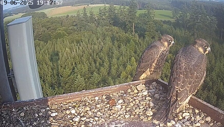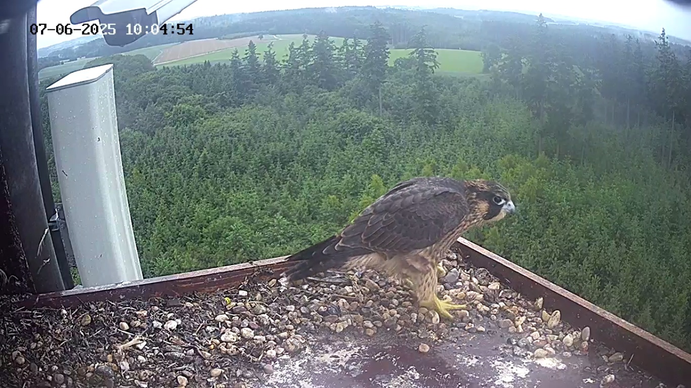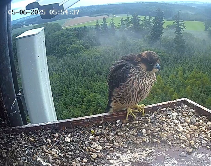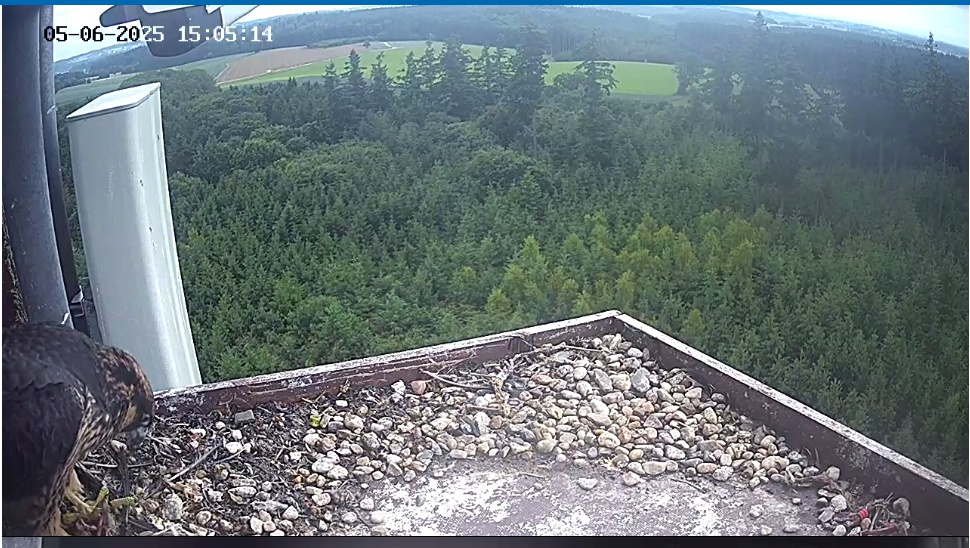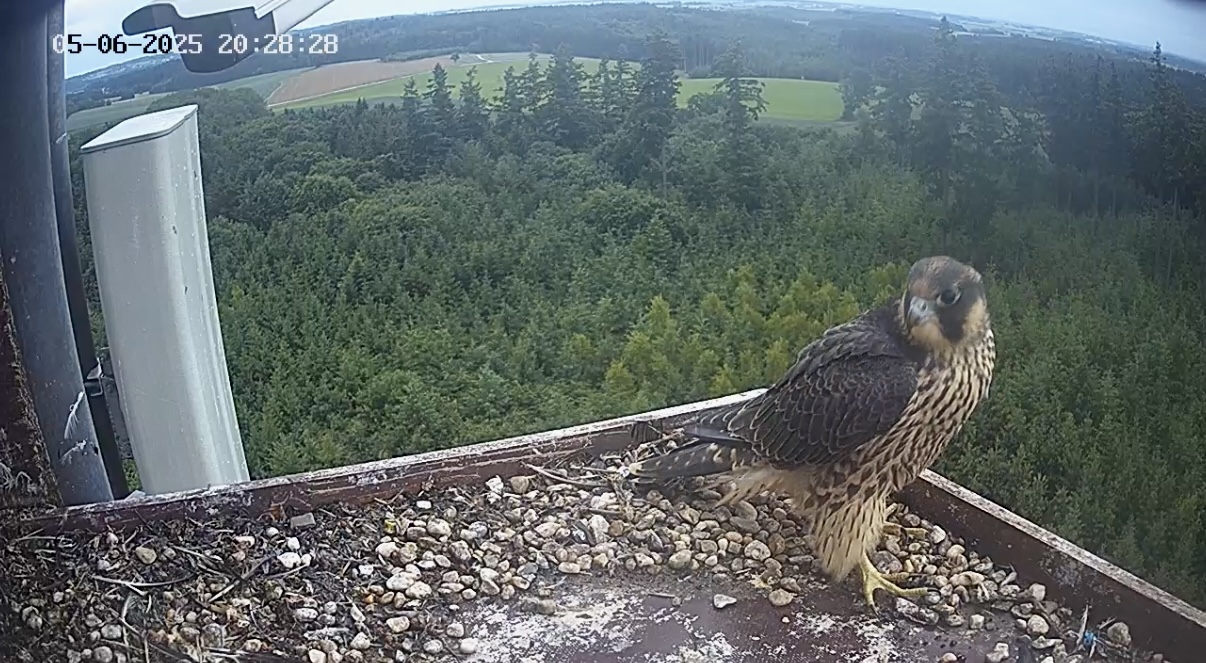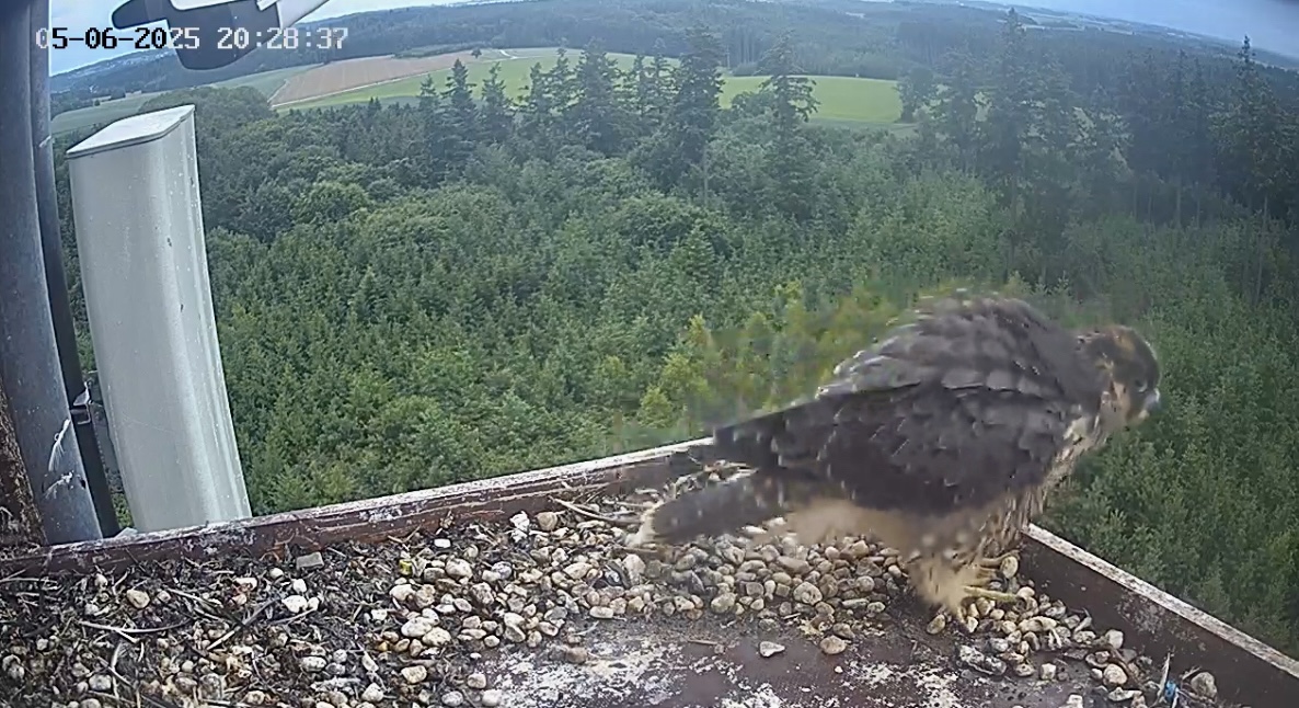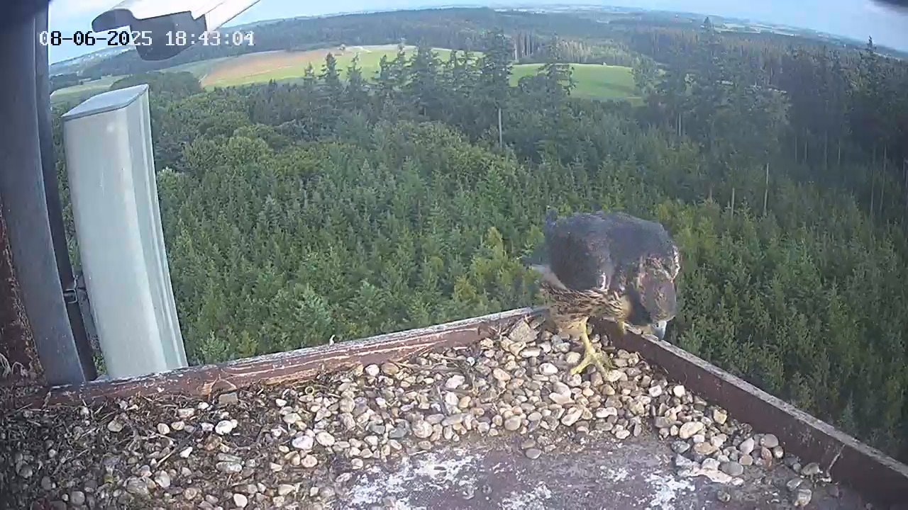 Heute Vormittag war mal jemand kurz da. In den Kasten geschaut - wieder raus und dann links zwischen Balkon-Ende und Antennengehäuse irgendwo hingehüpft ohne zu fliegen. Geht’s da zum Aufenhaltsraum?