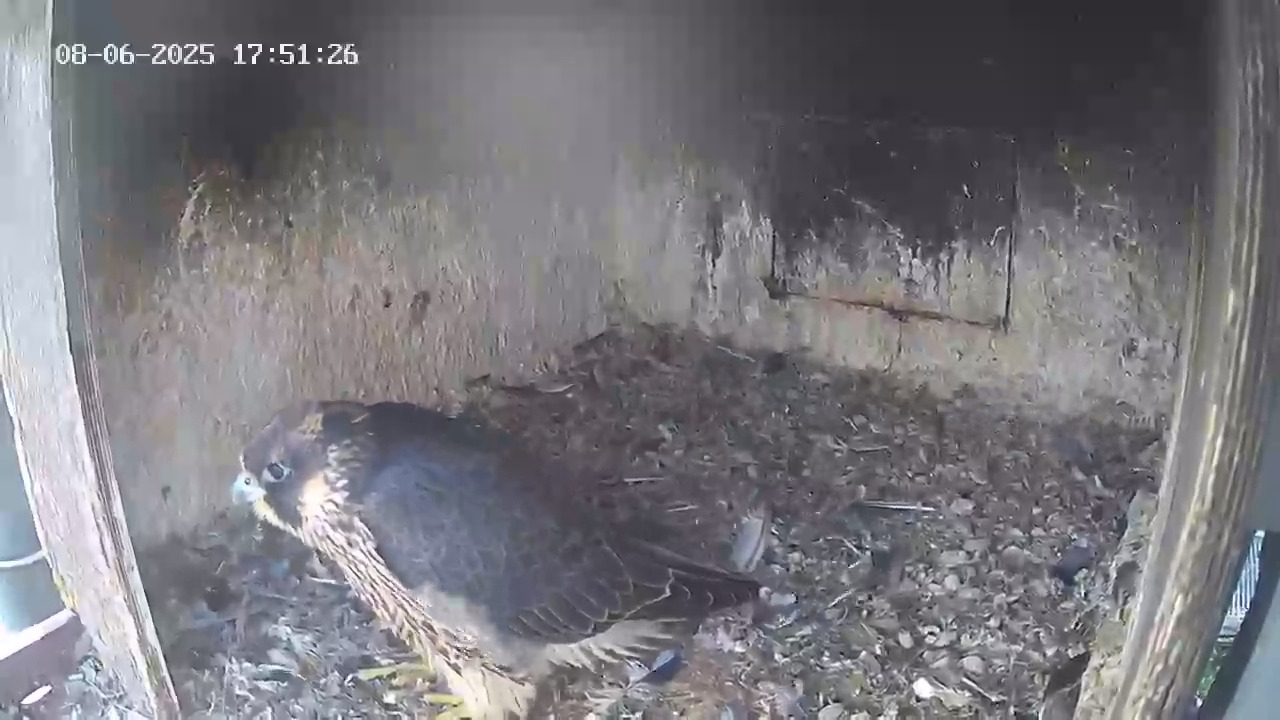 die Jungfalkin ist sauer daß außer ein paaralten Knochen nix zu fressen da ist und hüpft