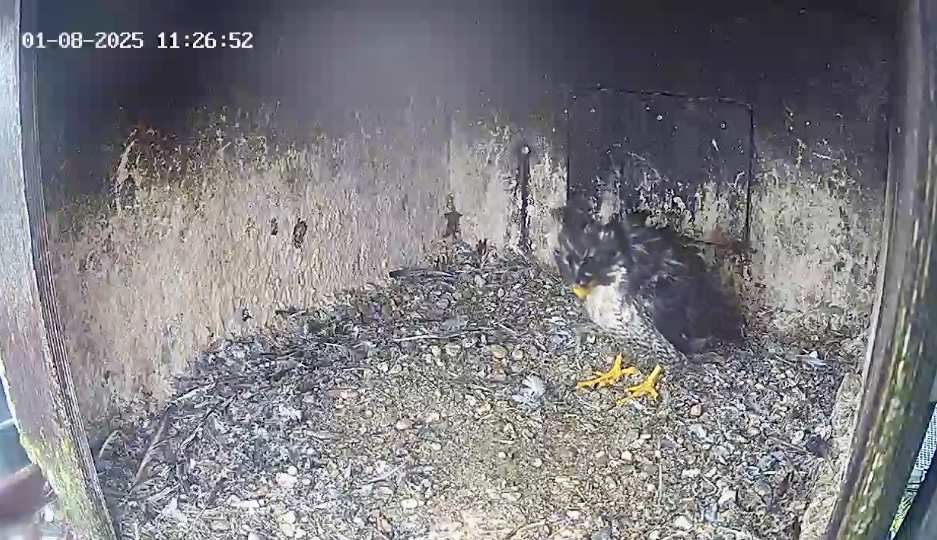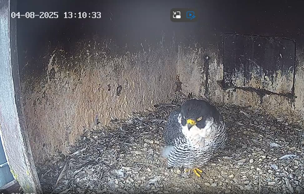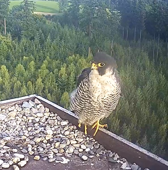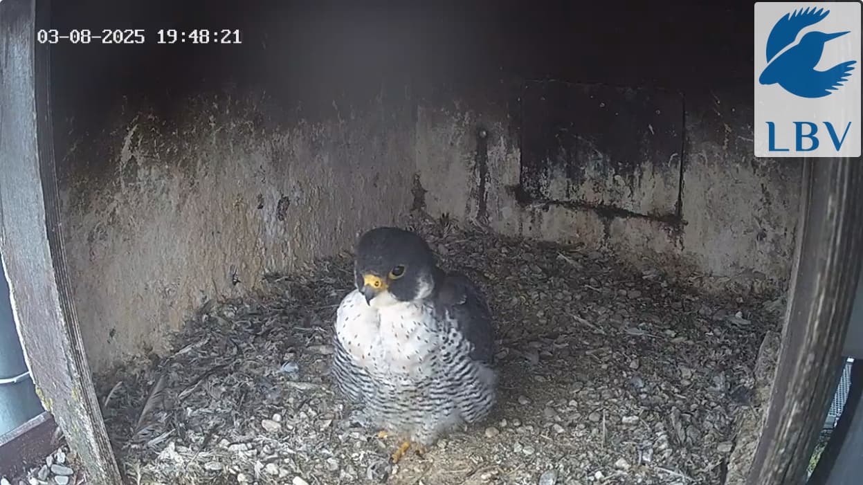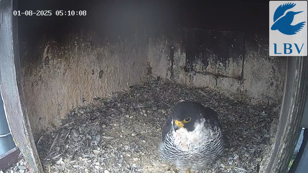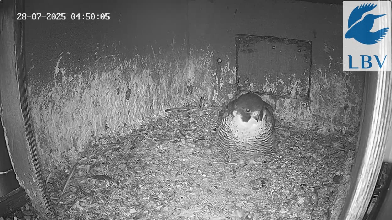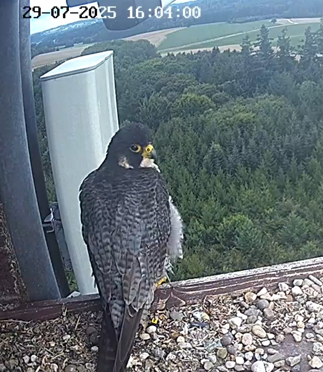 Ein nasser Wanderfalke bei der Gefiederpflege
