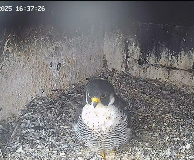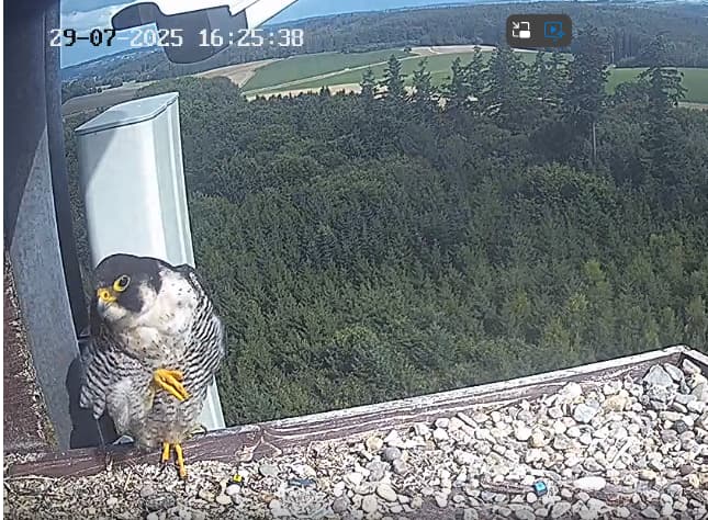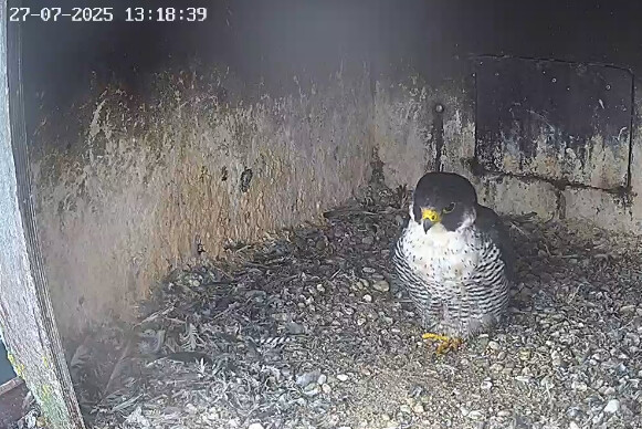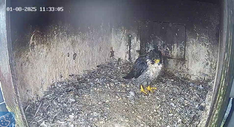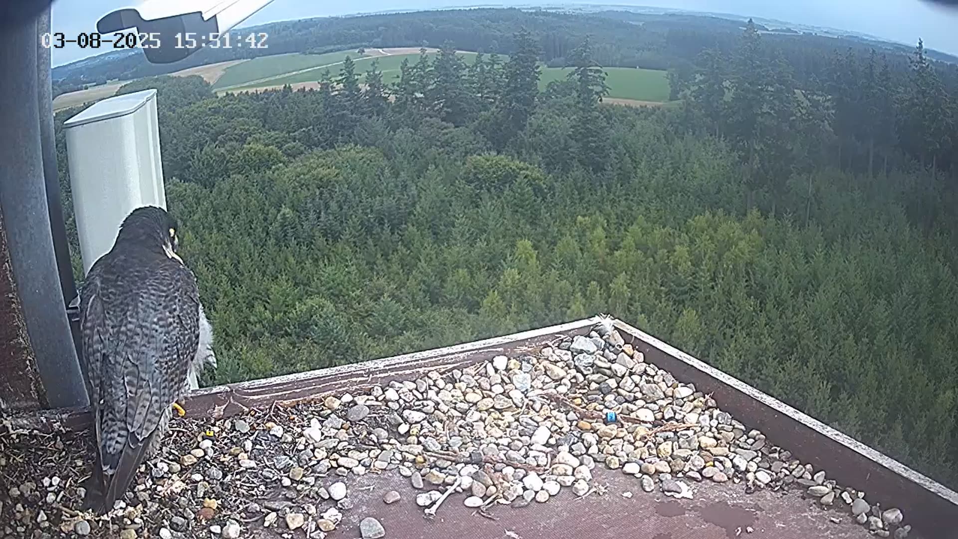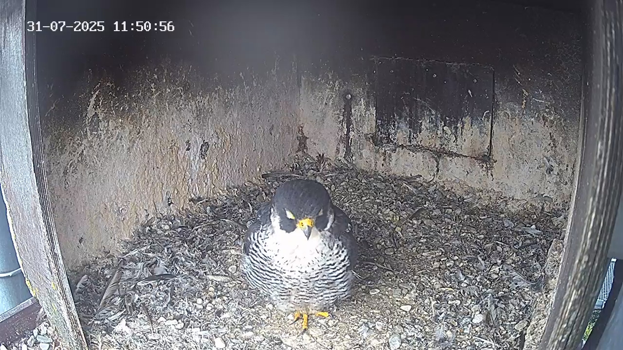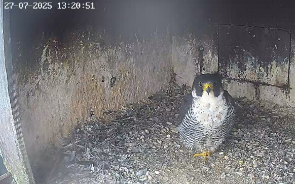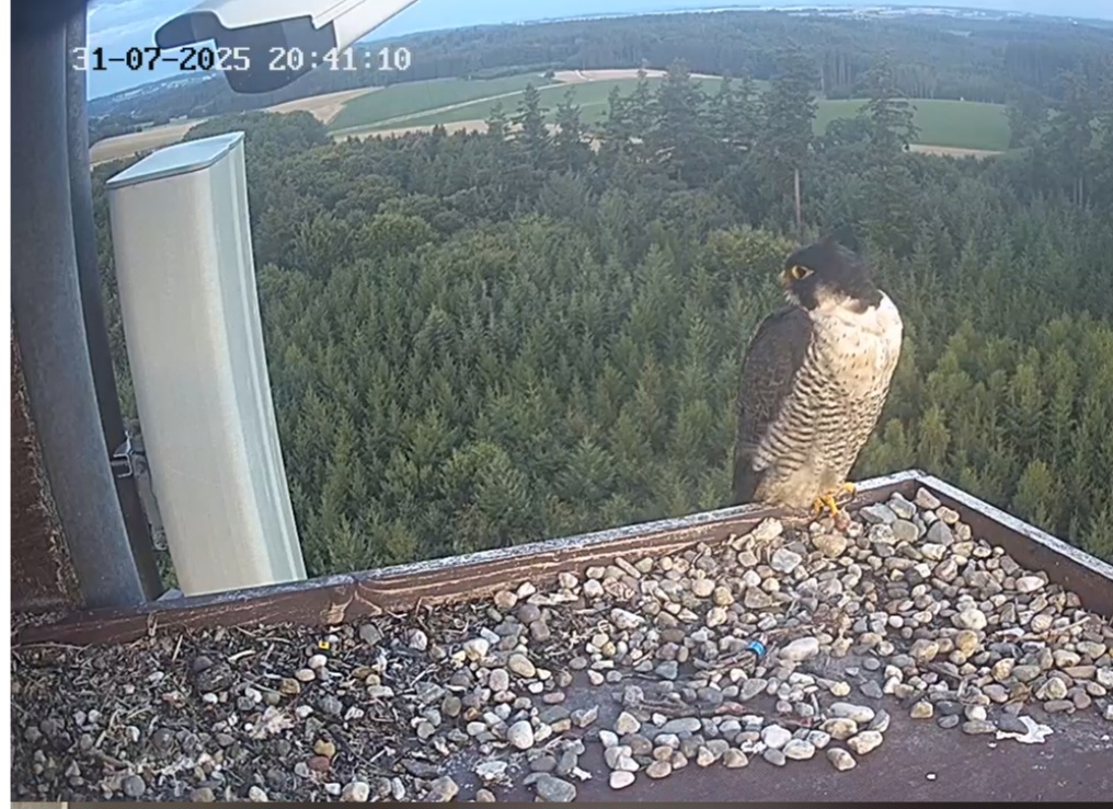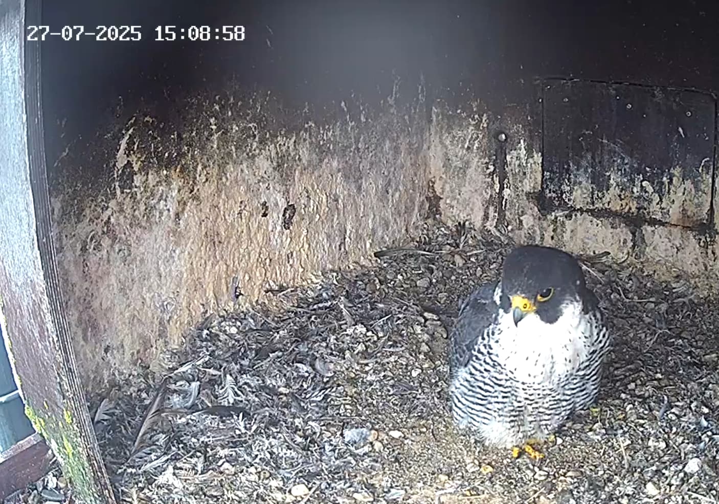 Ein nasser Wanderfalke bei der Gefiederpflege