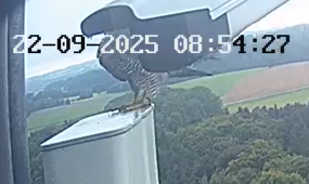 Gegen 11:50 war sie schon wieder da, hat sich kurz am Balkon aufgehalten und ist kurz drauf auf die Plattform gesprungen. Gegen 12 Uhr ist sie weg, Abflug habe ich nicht gesehen.