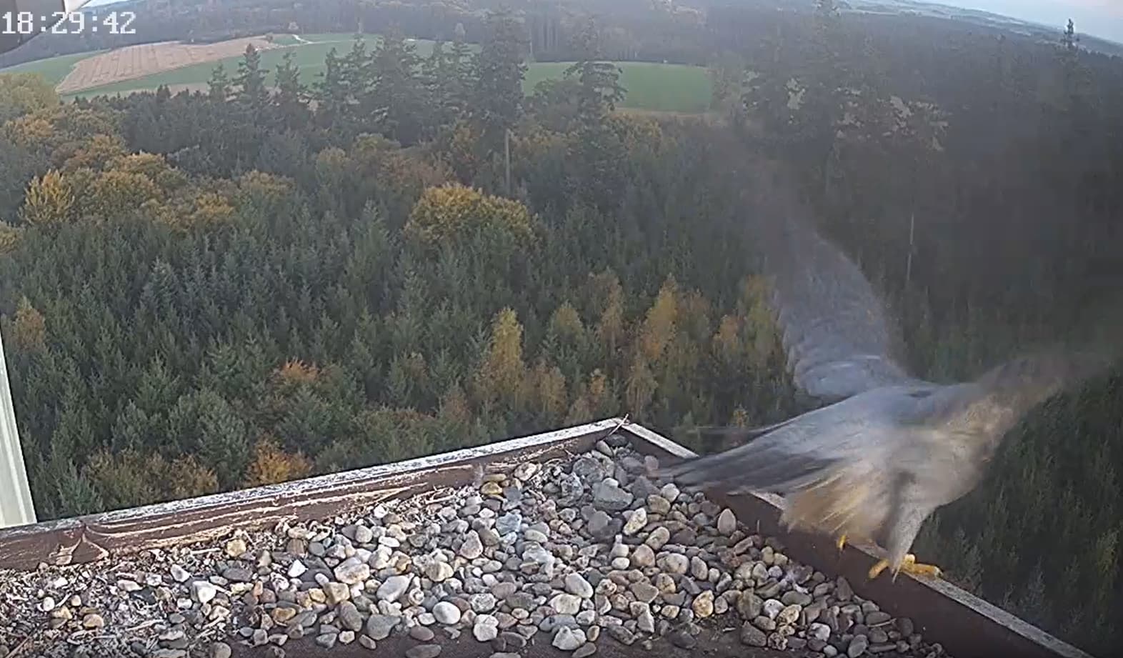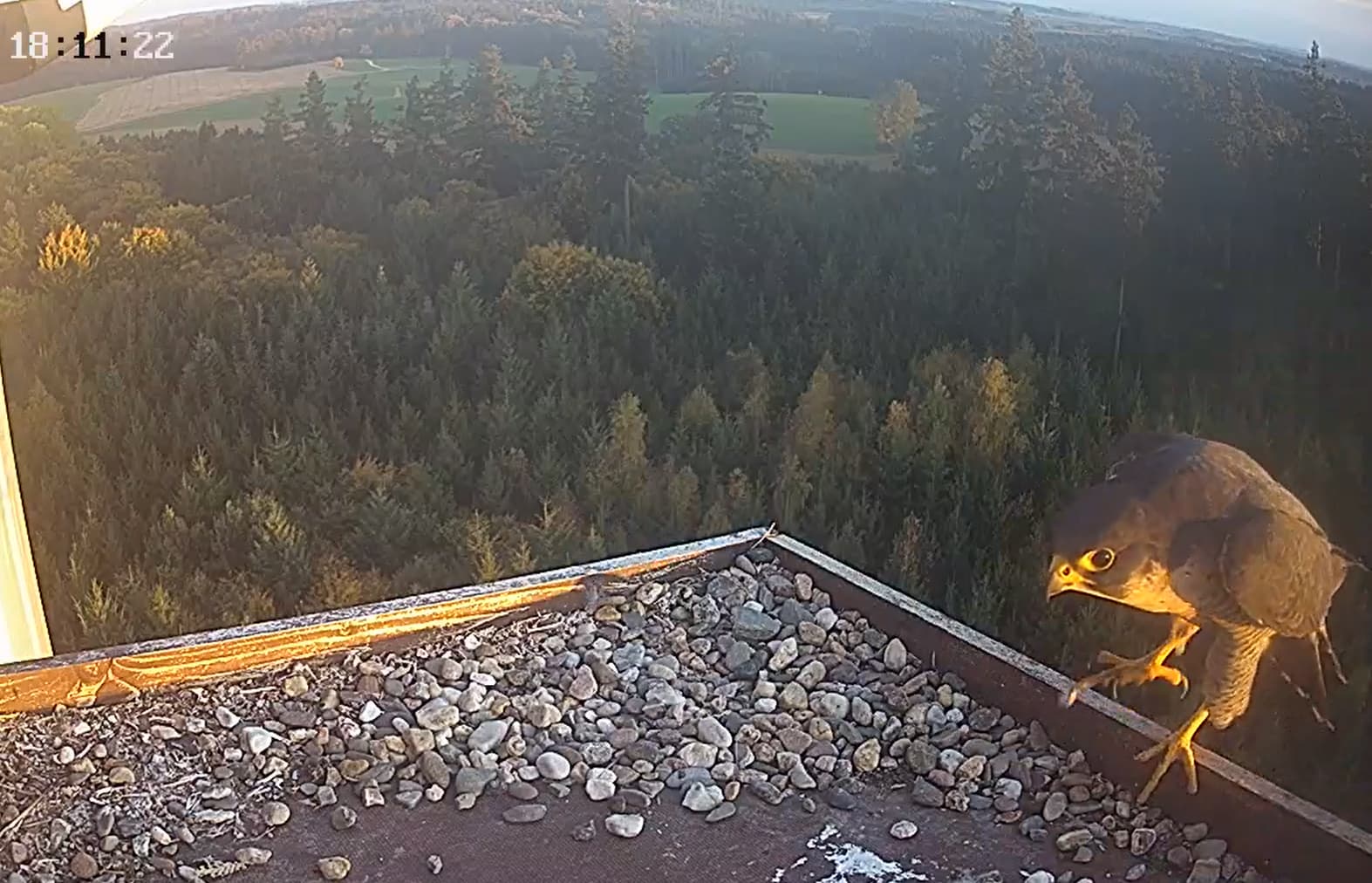 das Licht reicht leider nicht mehr, um den Falken scharf aufnehmen zu können, vor allem beim raschen Anflug