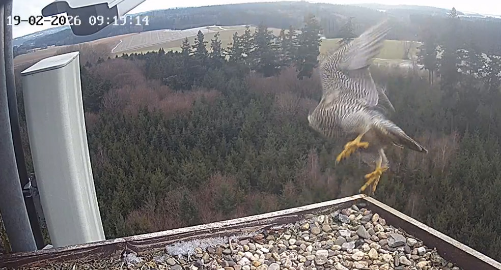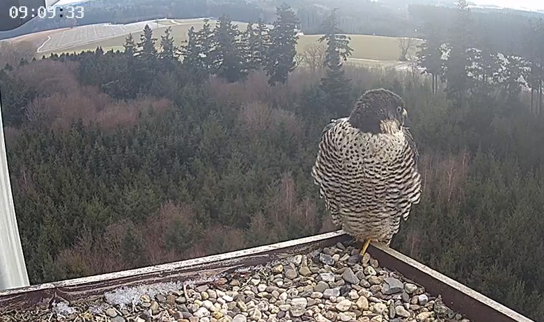 Off-topic: In Heidelberg in Gängs Tagebuch habe ich gelesen, dass sich ein Heidelberger Jungfalke S°RC aus 2022 in Weert, NL angesiedelt hat und dort wohl jetzt mit seiner 2. Brut beginnt! Das sind ca. 300 km Luftlinie. Auch nicht schlecht!