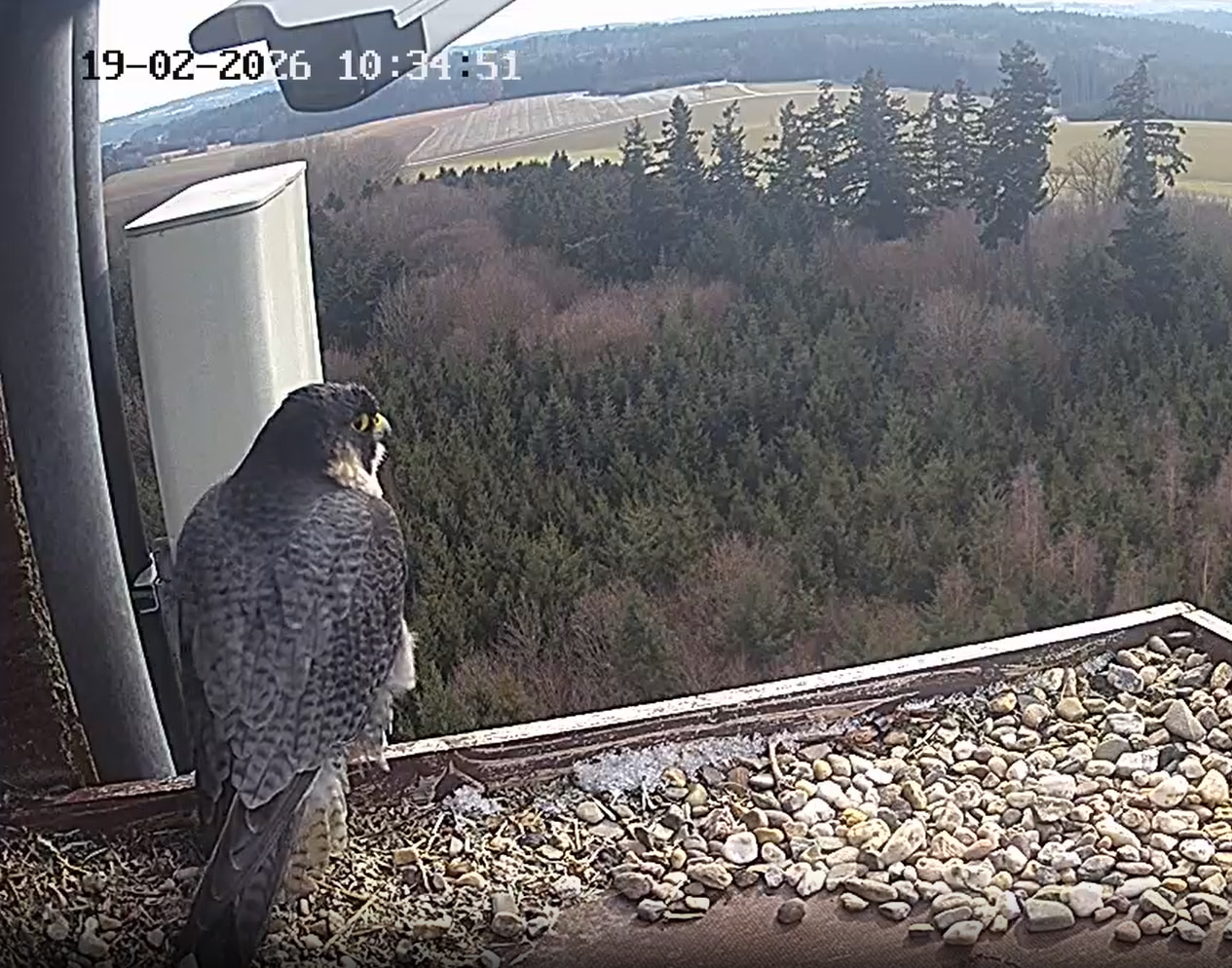 Ich habe ihn jetzt eine Zeitlang beobachtet, er war zeitweise schon recht aufgeregt und ist tänzelnd und rufend im Kasten hin und her. Scheinbar ist sie in der Nähe? Ich habe auf Vorbeiflüge geachtet, aber konnte nichts feststellen.