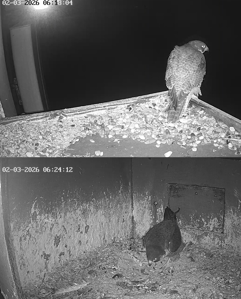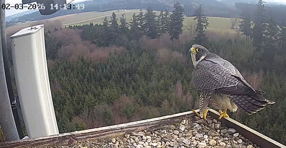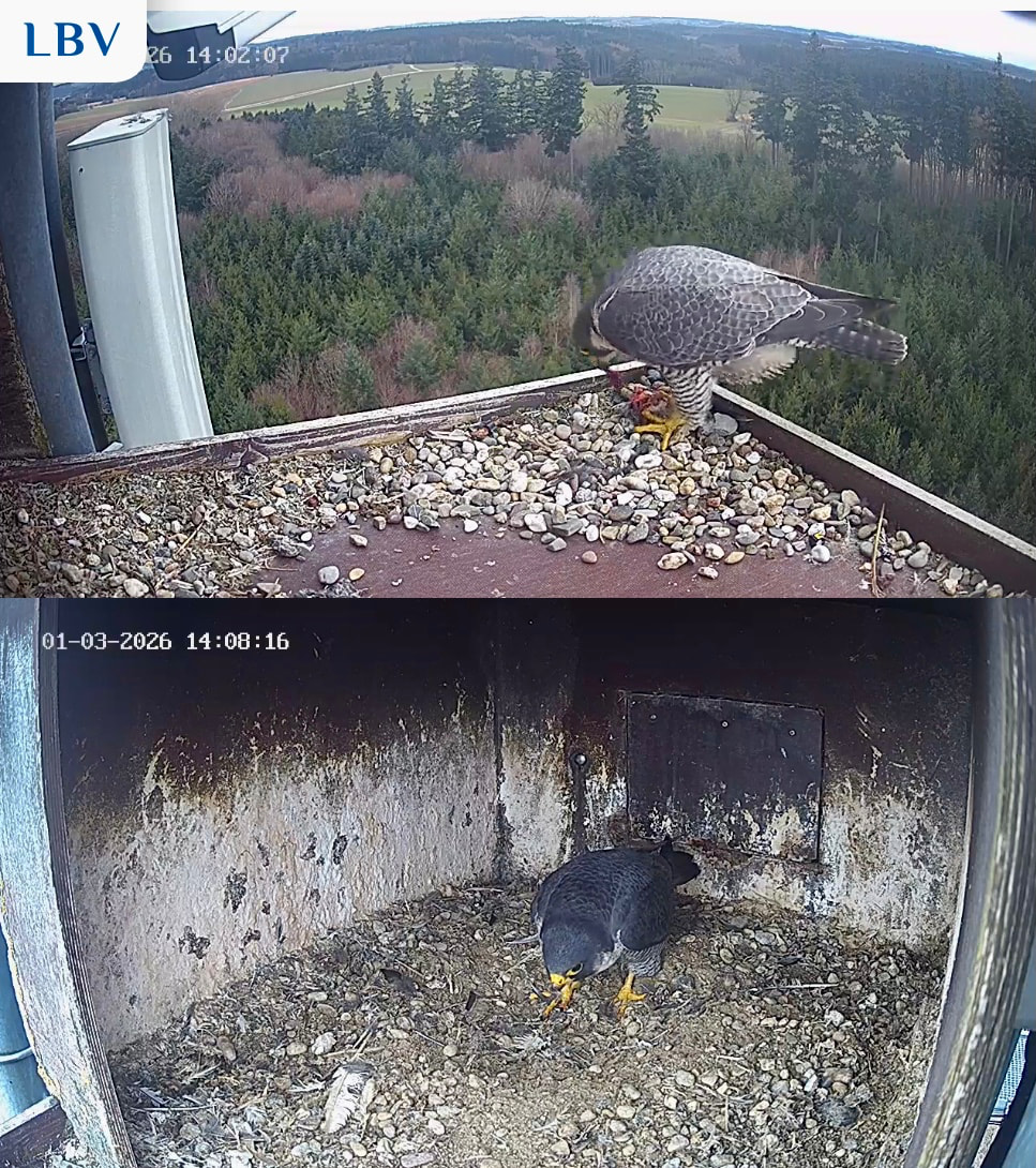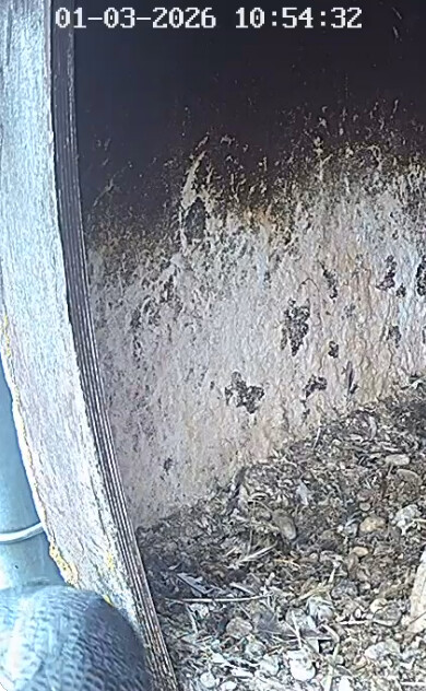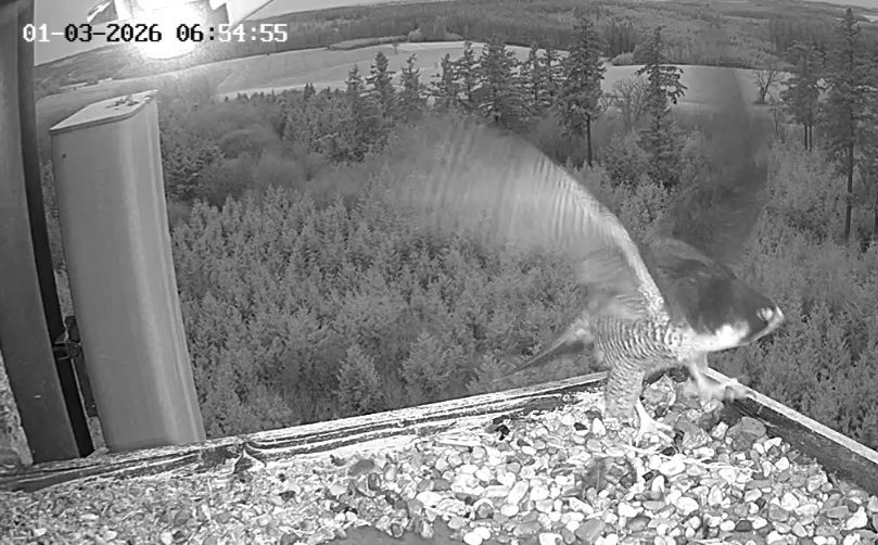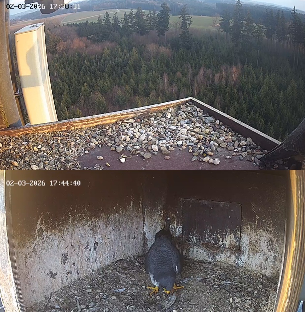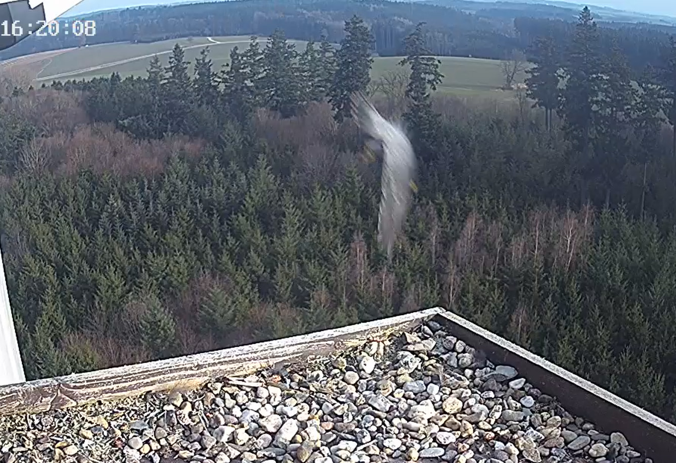 Freddy war dann bis etwa 10 Uhr ununterbrochen da: mal im Kasten, mal auf der Plattform, mal auf dem Balkon. Und jetzt hängen leider die Cams.