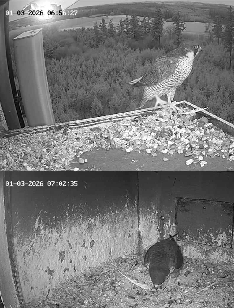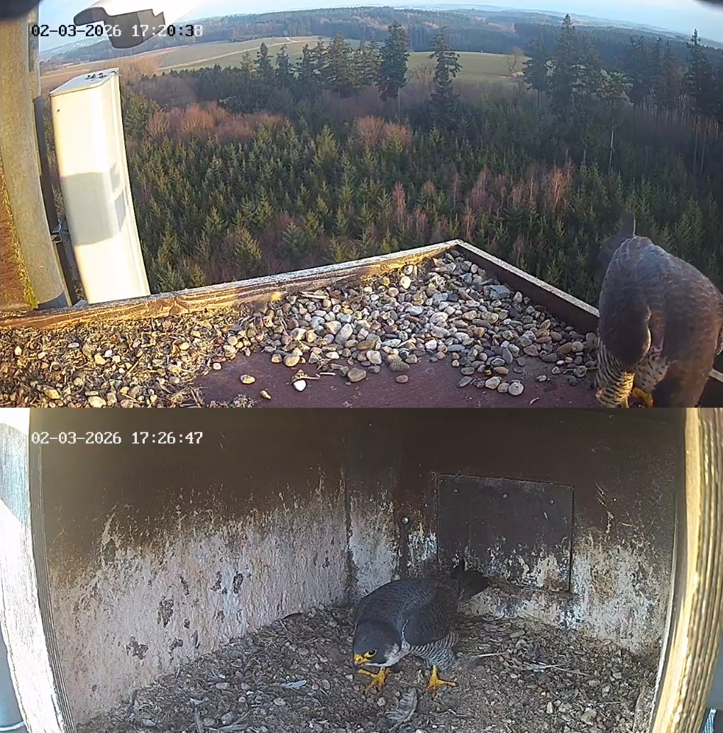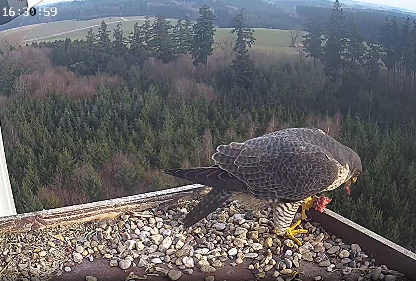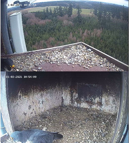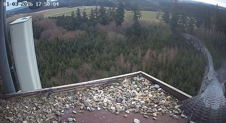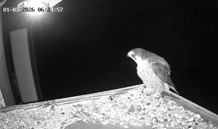 Freddy war dann bis etwa 10 Uhr ununterbrochen da: mal im Kasten, mal auf der Plattform, mal auf dem Balkon. Und jetzt hängen leider die Cams.