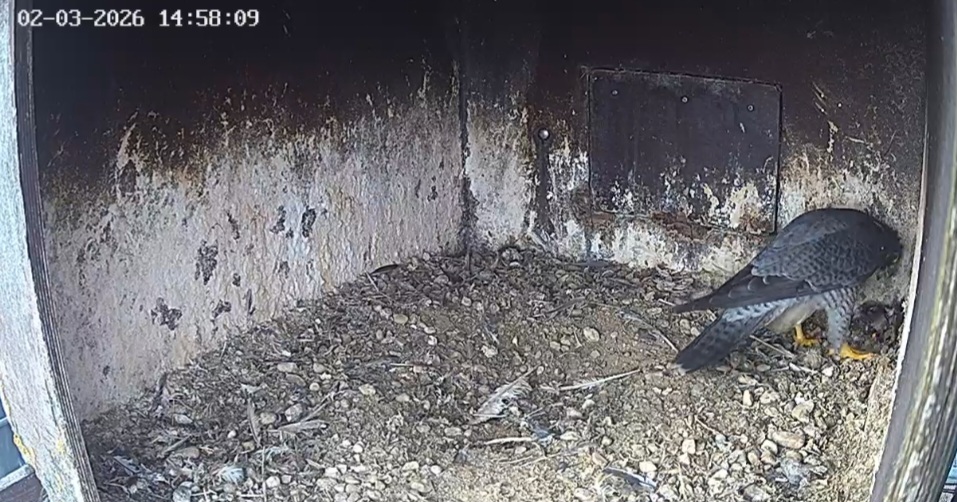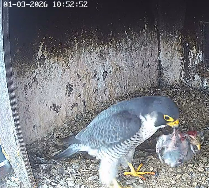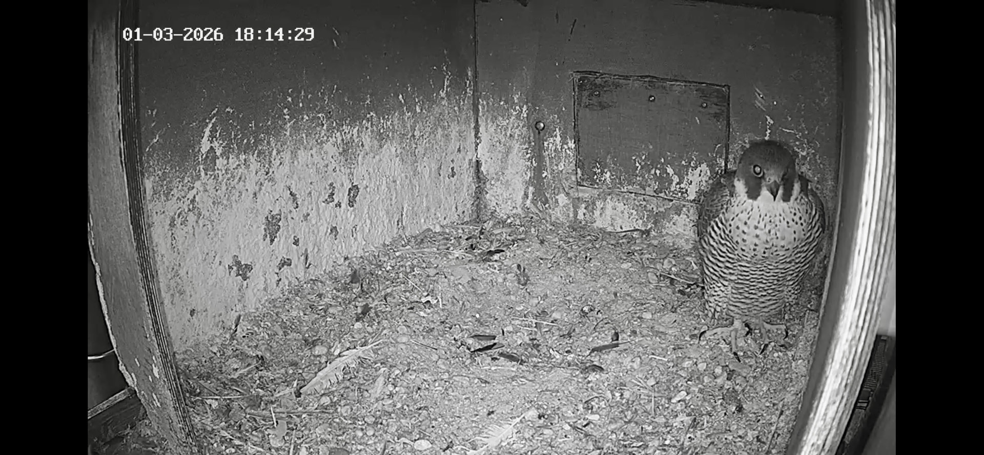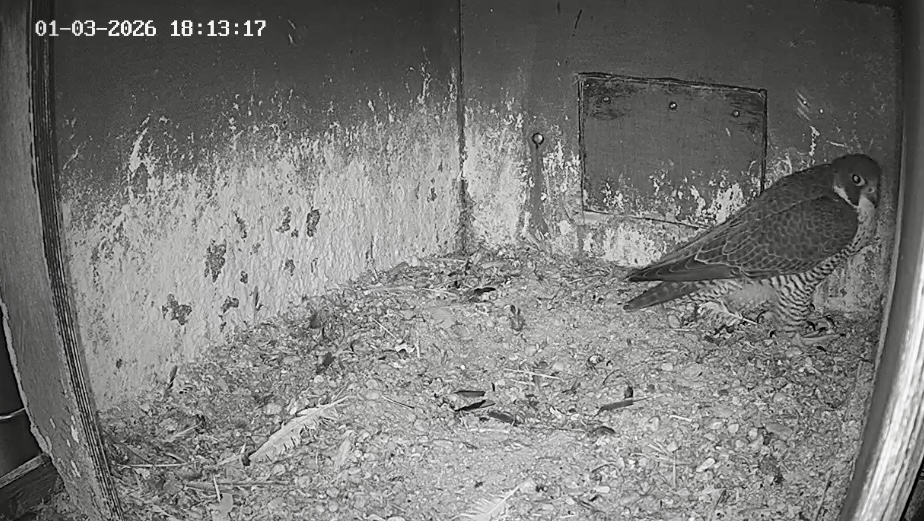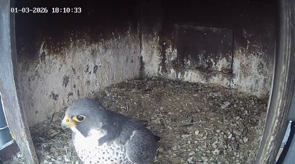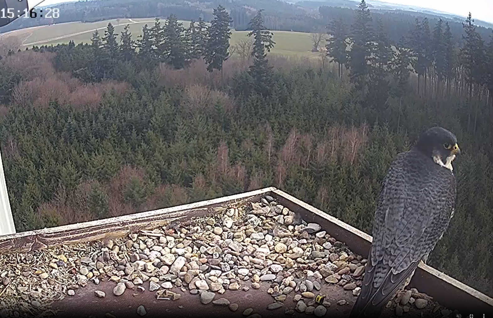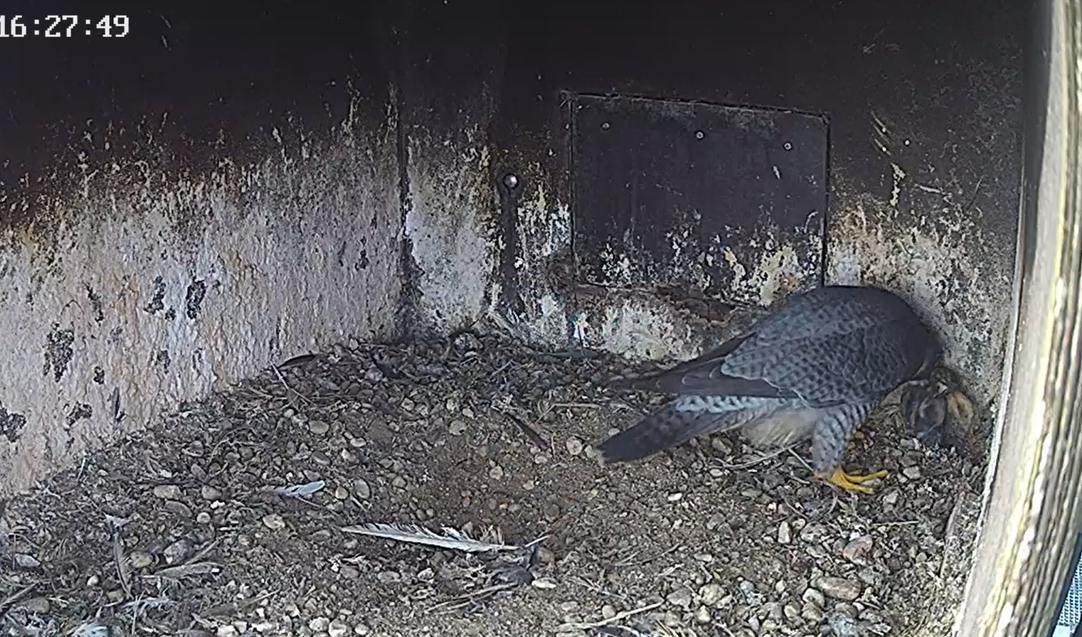 Freddy war dann bis etwa 10 Uhr ununterbrochen da: mal im Kasten, mal auf der Plattform, mal auf dem Balkon. Und jetzt hängen leider die Cams.