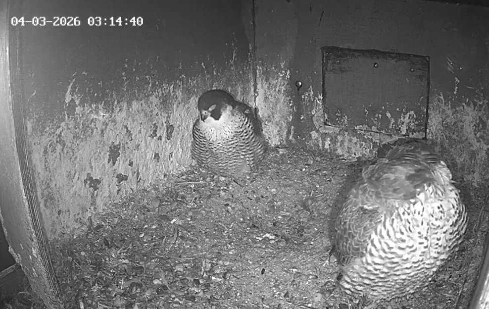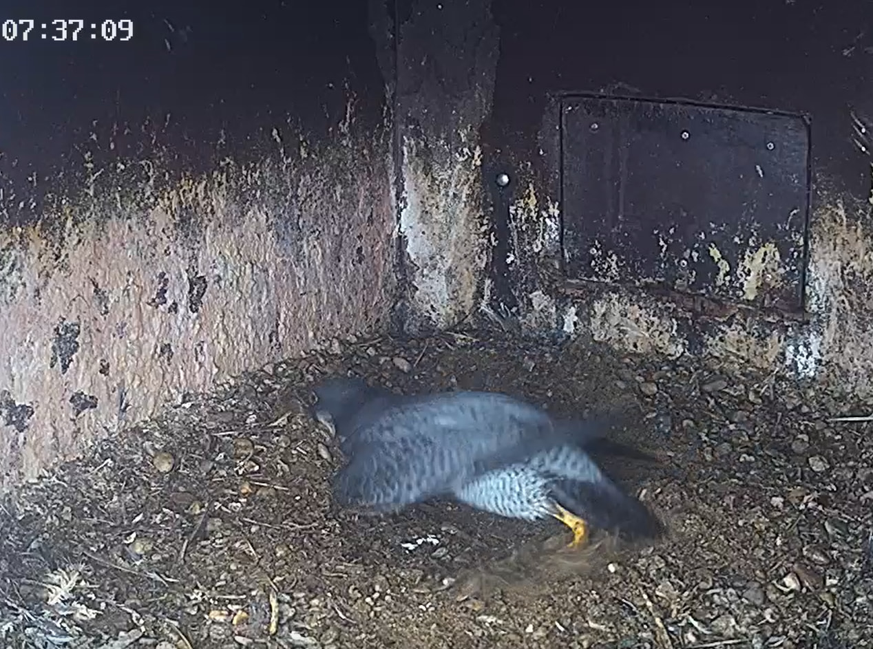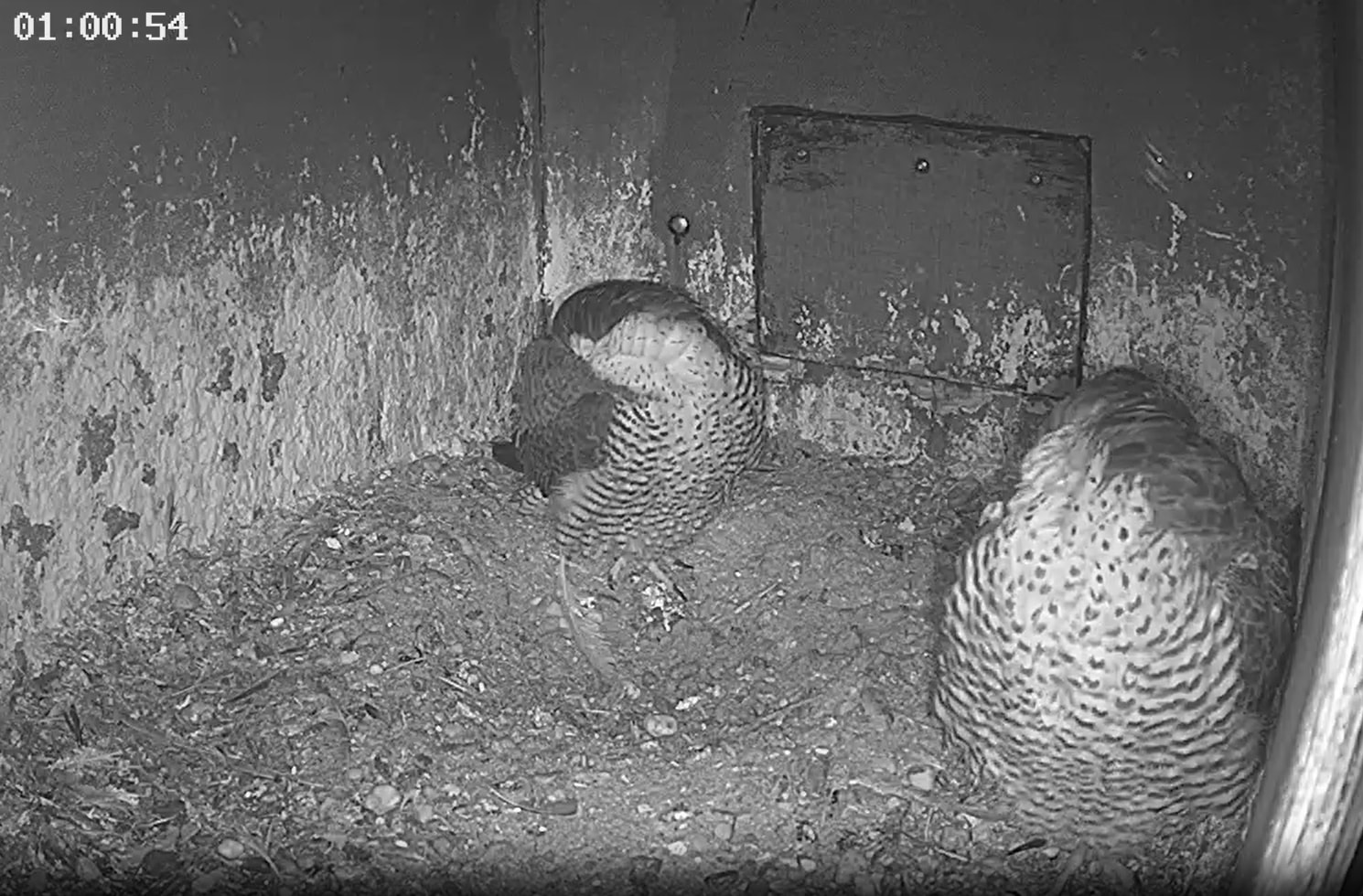 Dann gab es eine nächtliche Gefiederpflege bei Frieda, und die Mulde hat sie auch mal inspiziert.