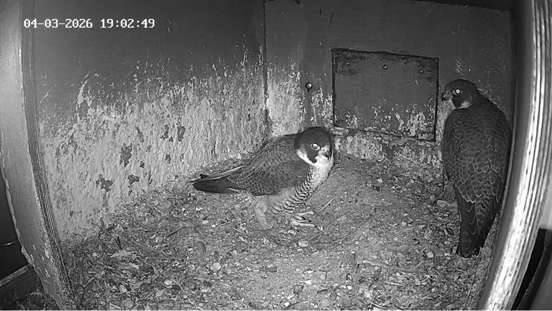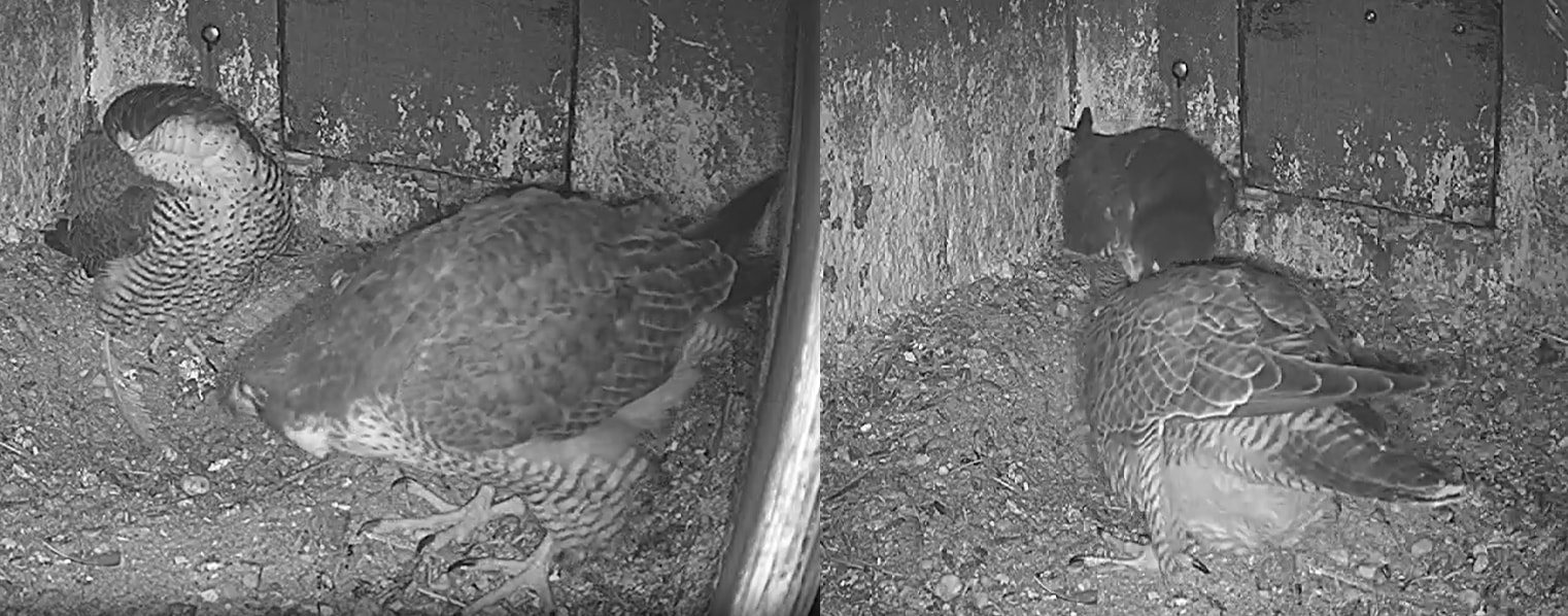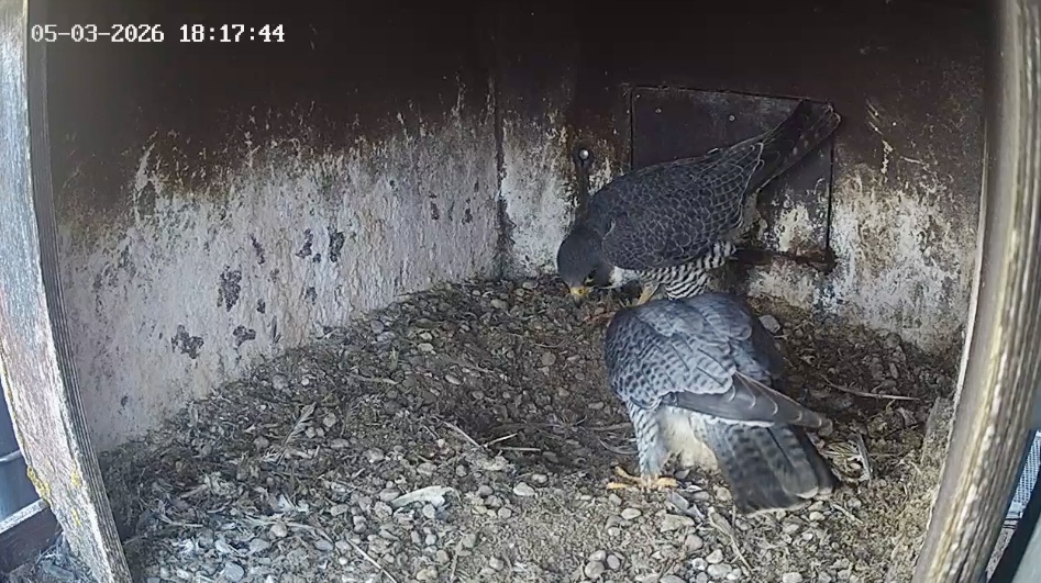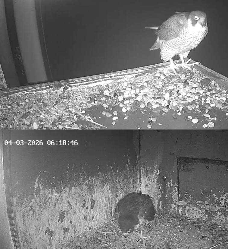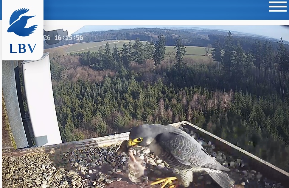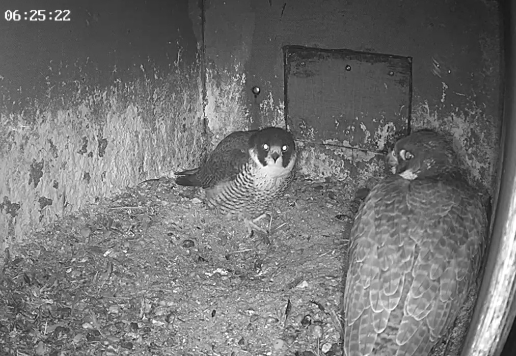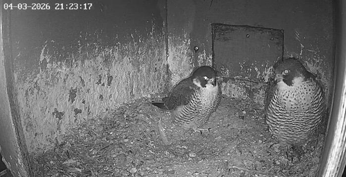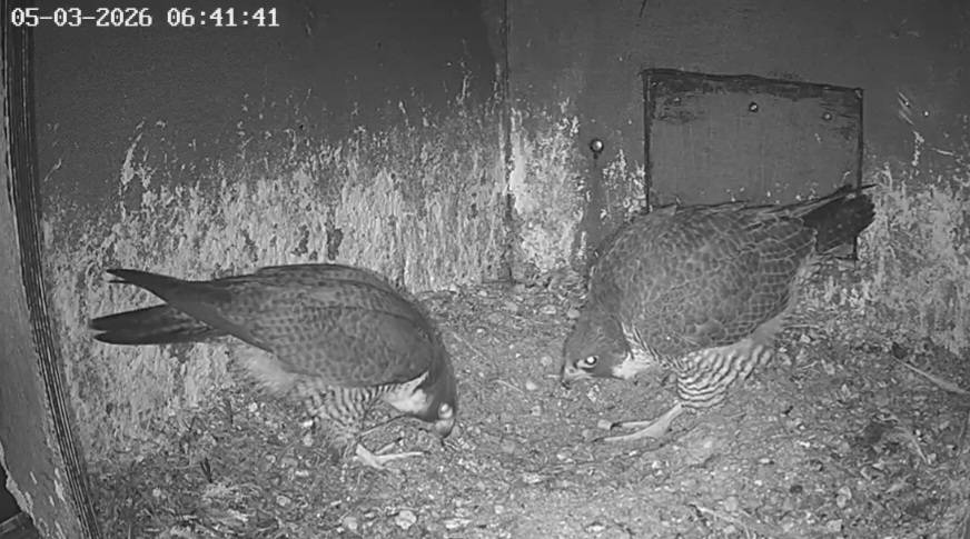 Aha! Um 6:17 kommt Weckdienst Freddy, kurzes Bonding, dann wechselt Frieda auf die Balkonecke. Gewohntes Bild inzwischen morgens ![]()