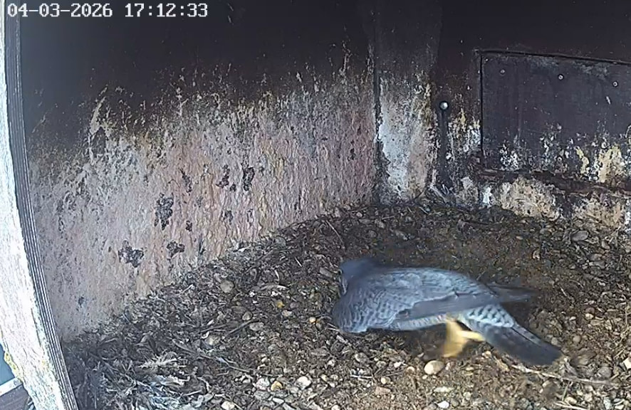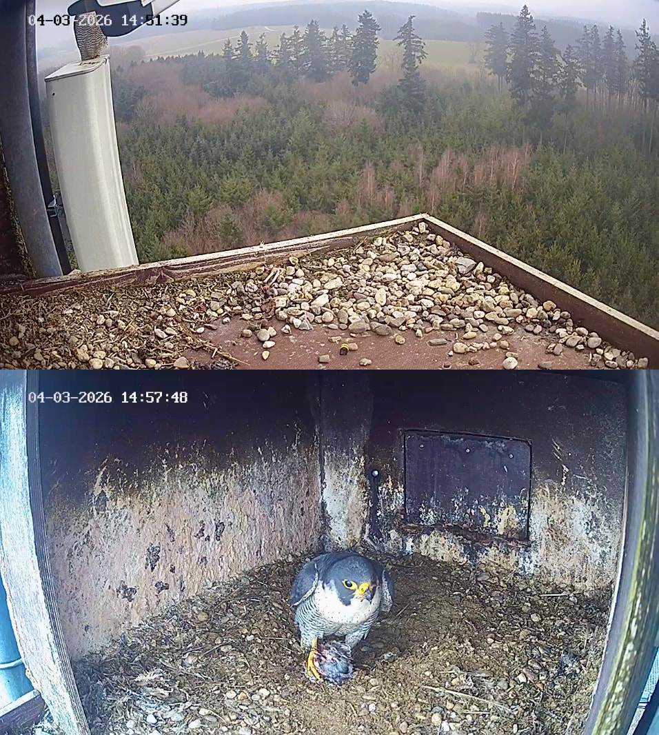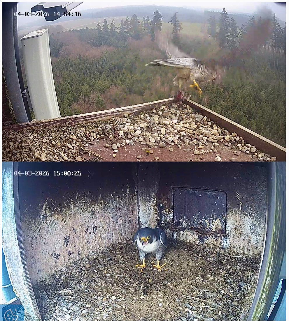 Frieda saß eine Zeitlang auf der Plattform. Um 11:09 ist sie dann nach oben weggehüpft, irgendwo über den Kasten.