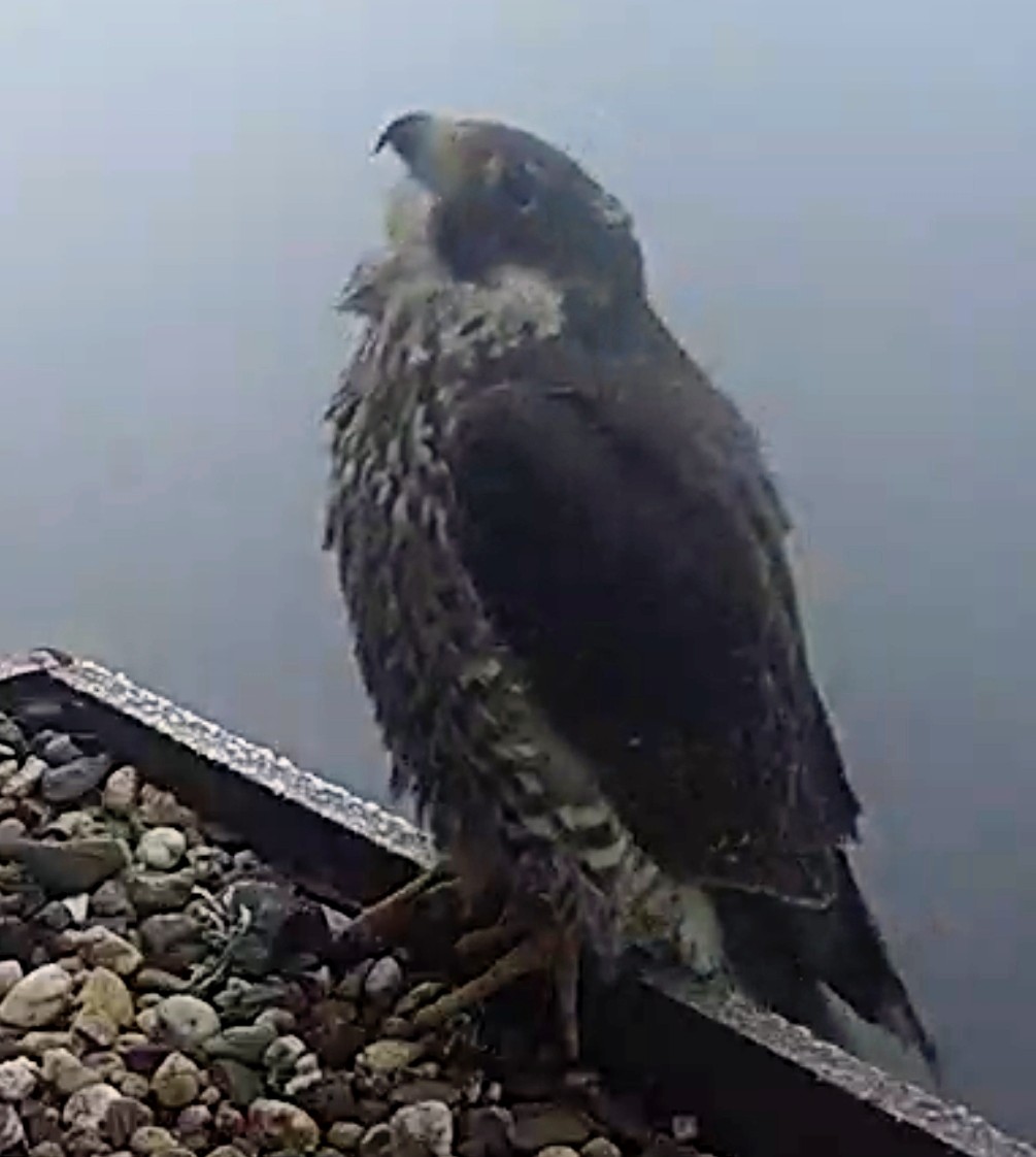 Er bzw sie schaut immer wieder nach oben, als ob es ihr bewusst wäre, dass sie hier vielleicht nicht willkommen ist und von einem erwachsenen Falken vertrieben werden könnte