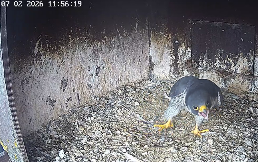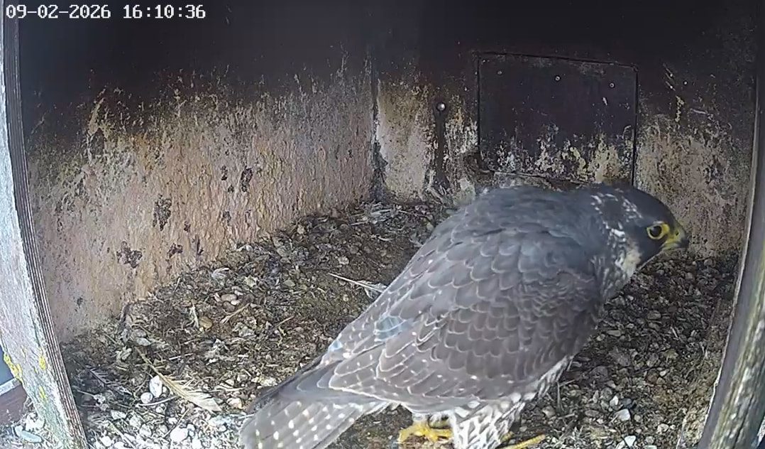 Für einen Besucher war sie echt ganz schön oft und lang da, könnte aber daran liegen, dass sie als Jungfalkin unternehmungslustig ist und viel ausprobiert und ihr Reviere noch nicht so vertraut sind.