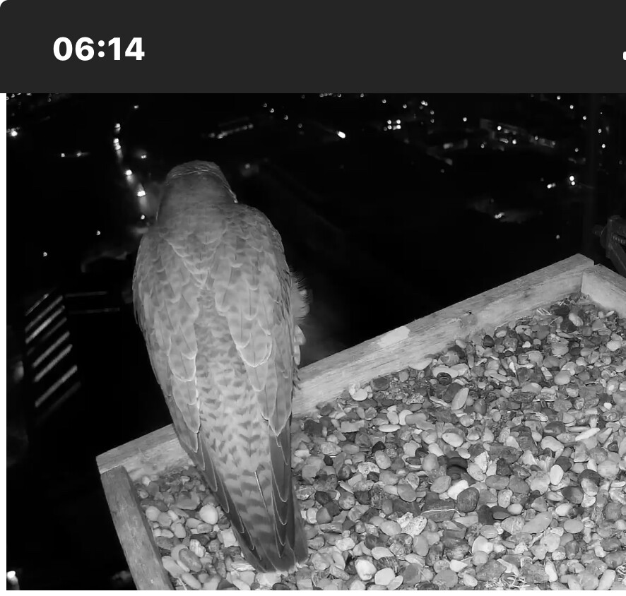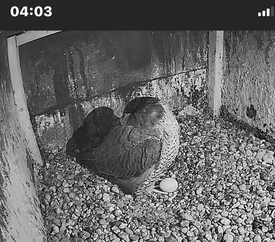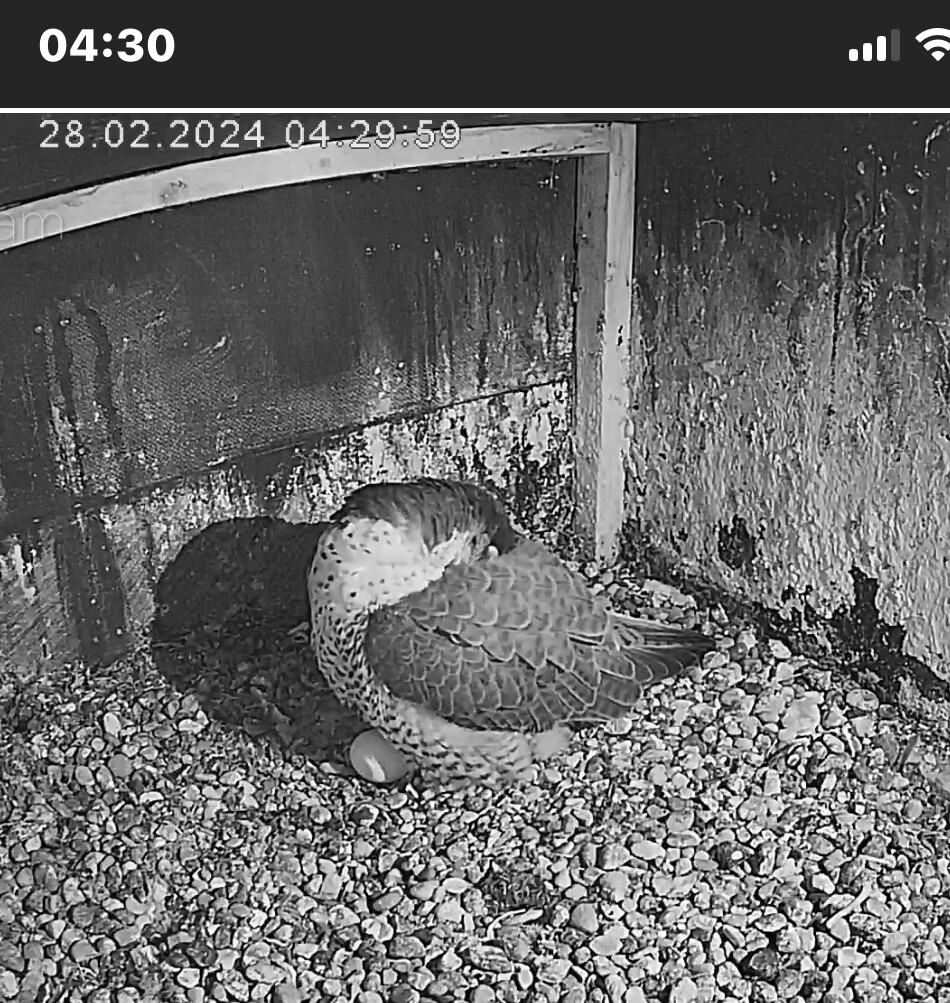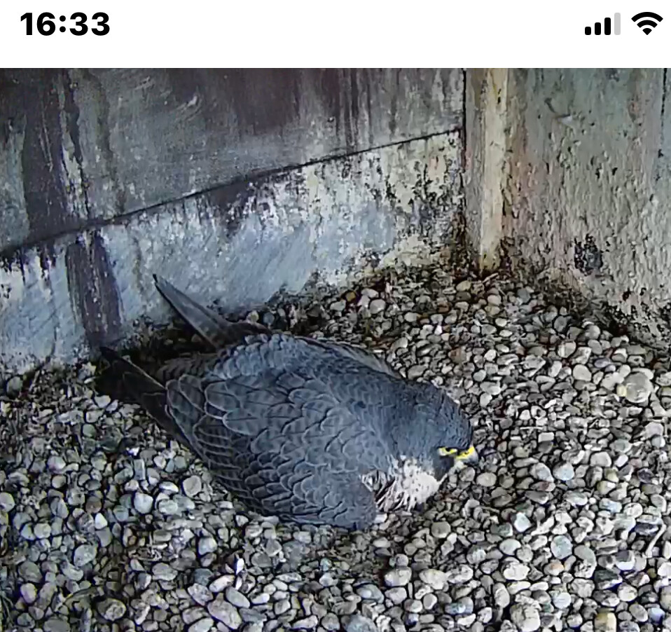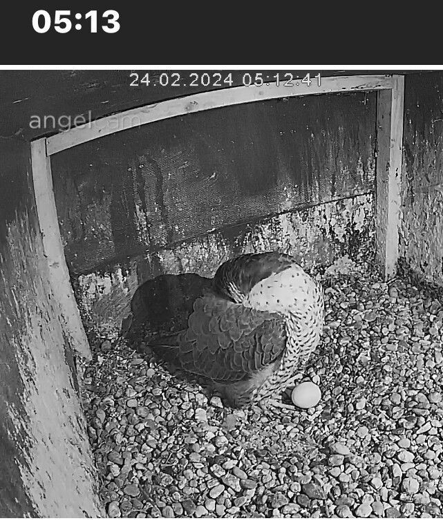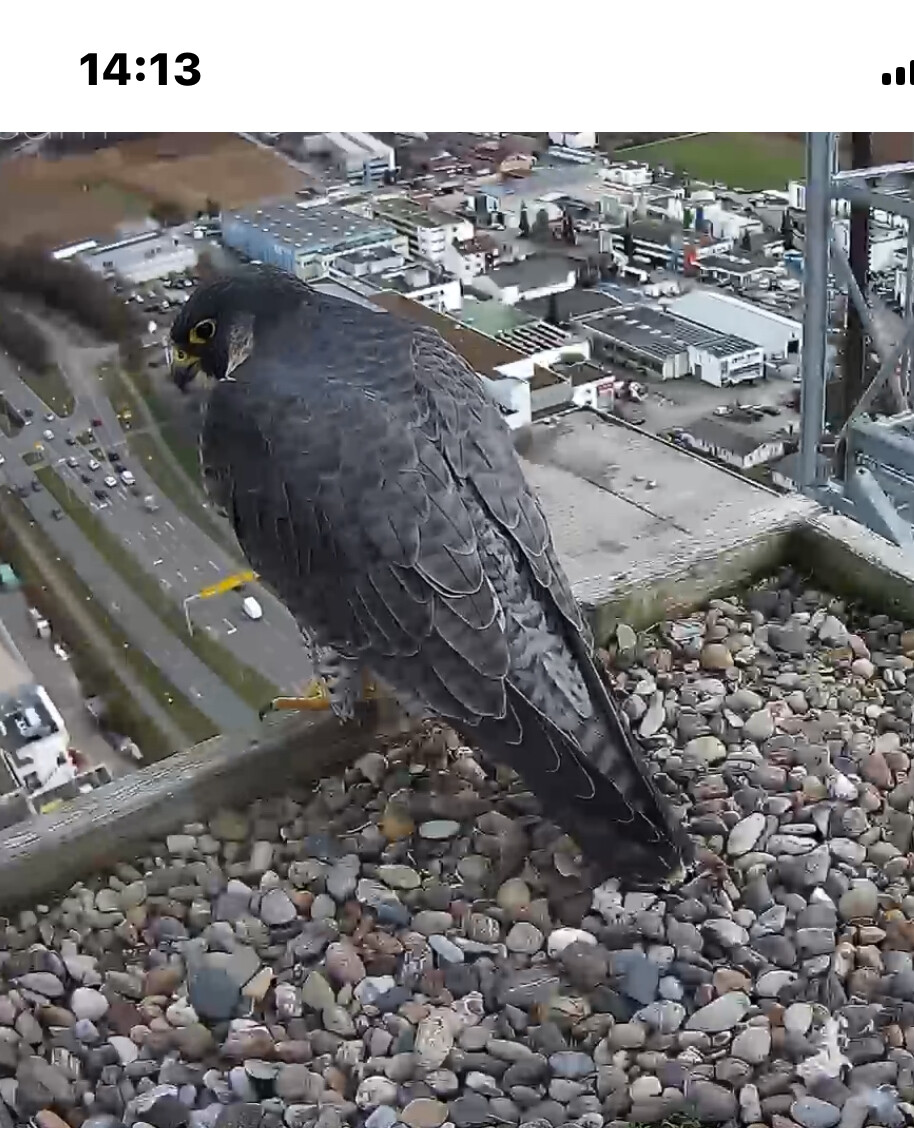 12:37 - schnell mal nach dem Sachstand geguckt - Ei allein, beide Falken unterwegs…