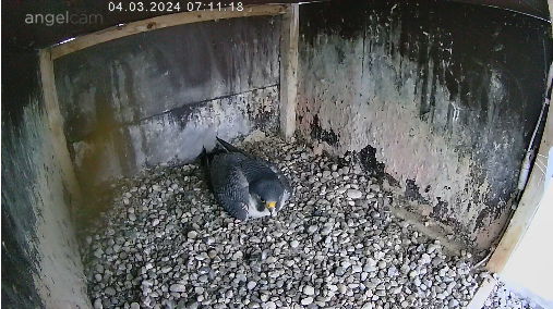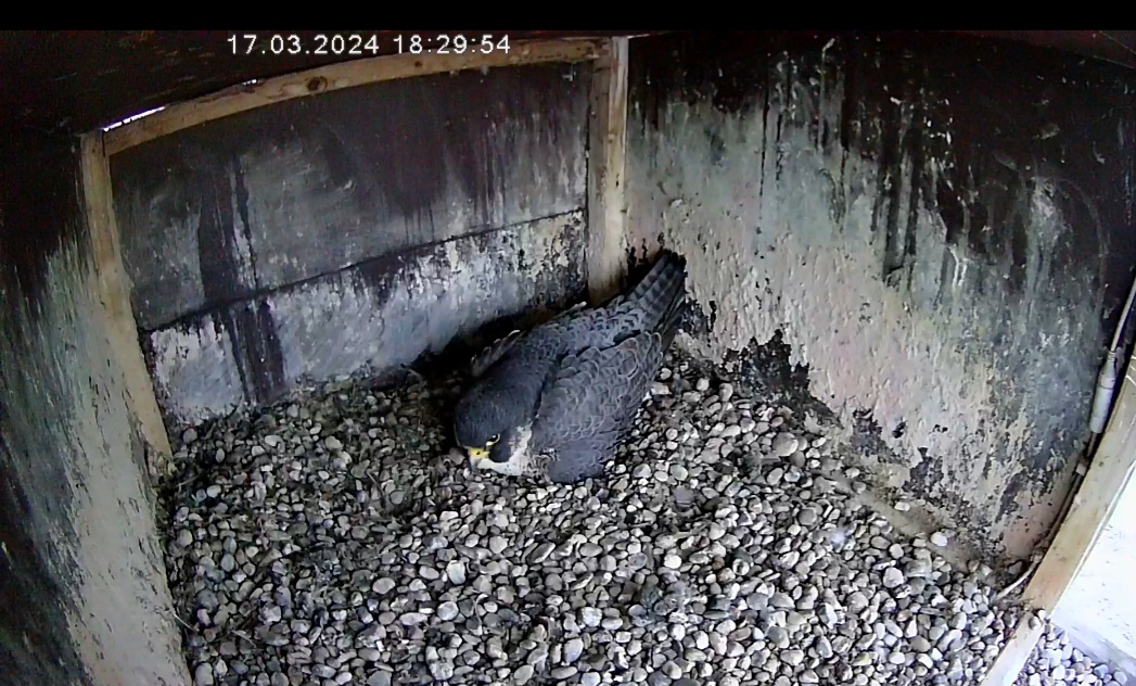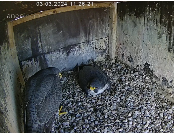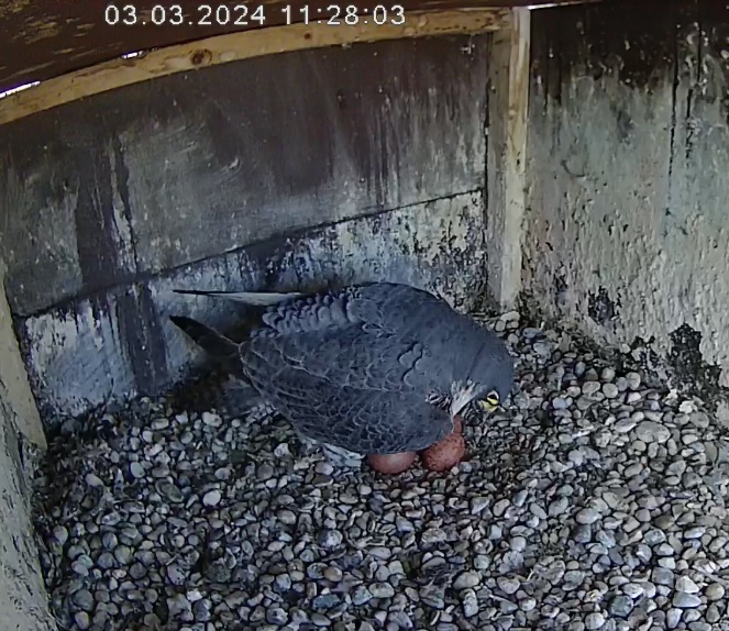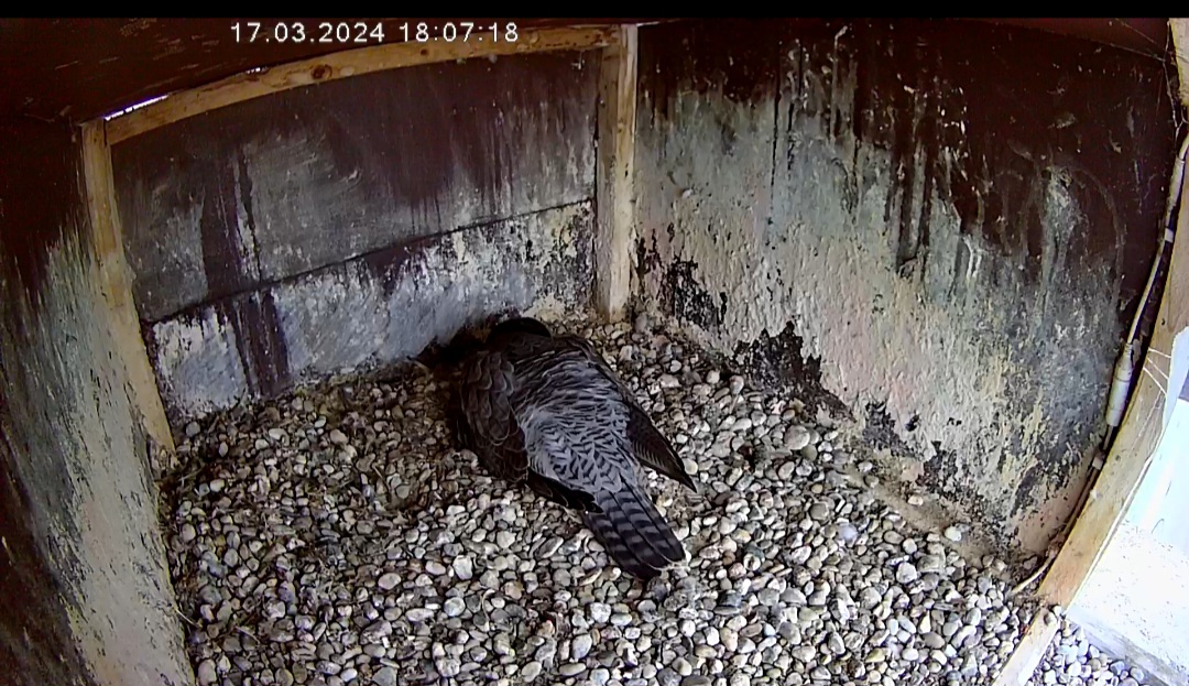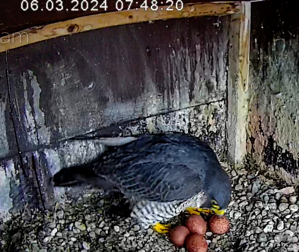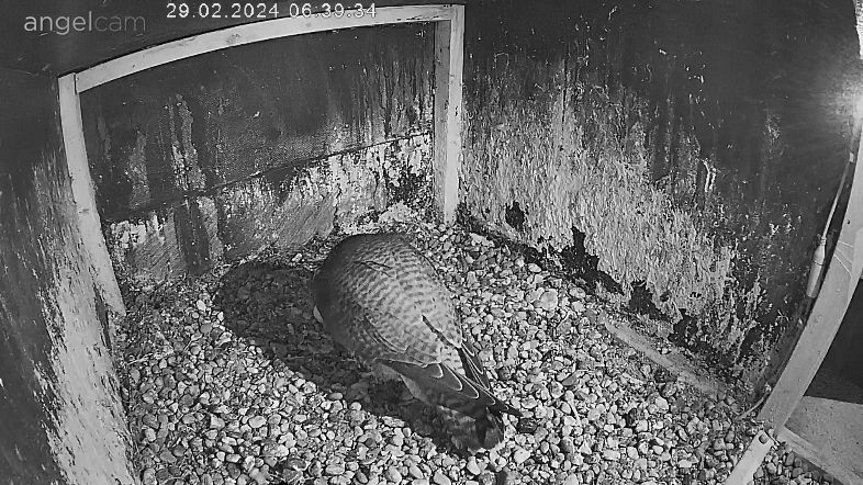 6:08 - eben war Brutwechsel, Alizée kam vom Morgenflug zurück - kurz hat Alvar gezögert, aber dann stand er doch auf.