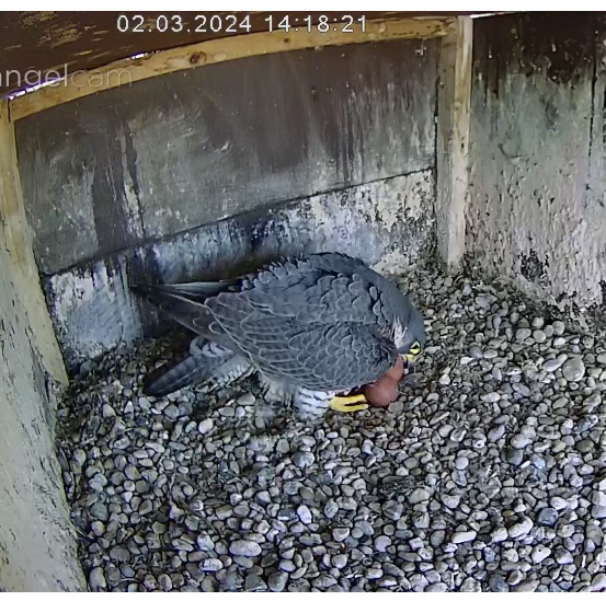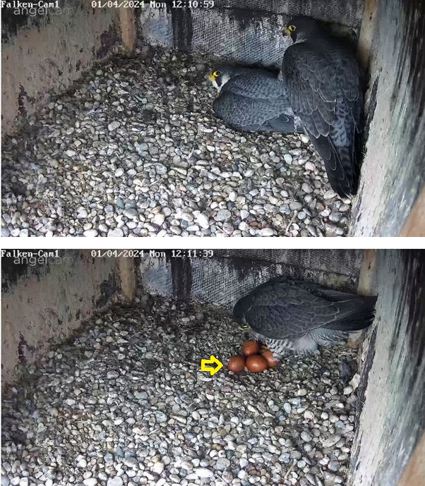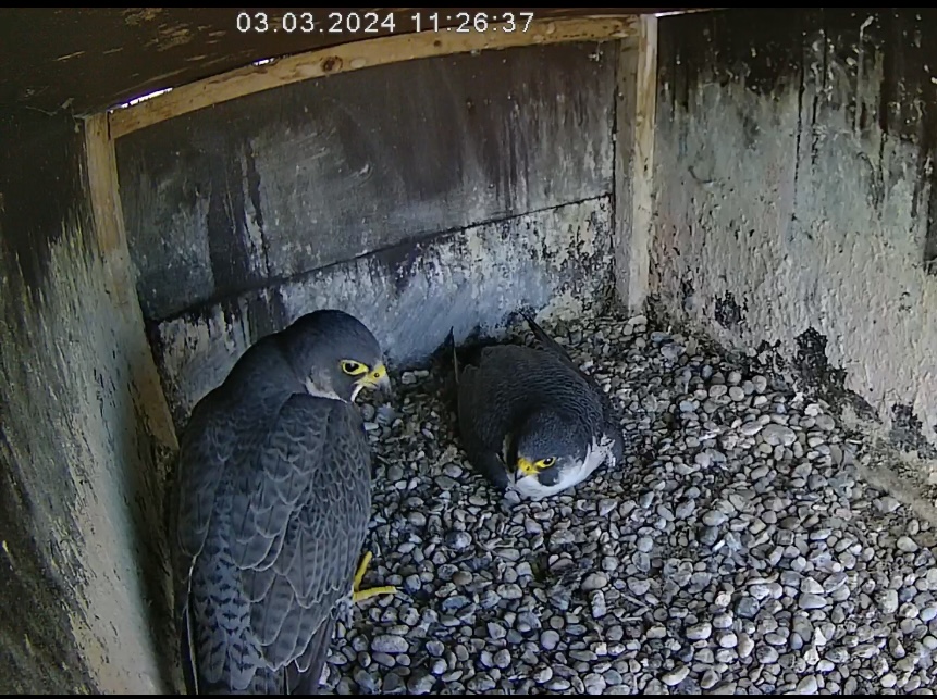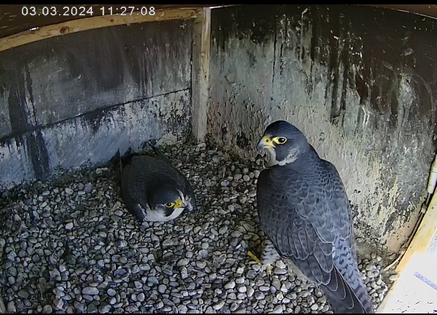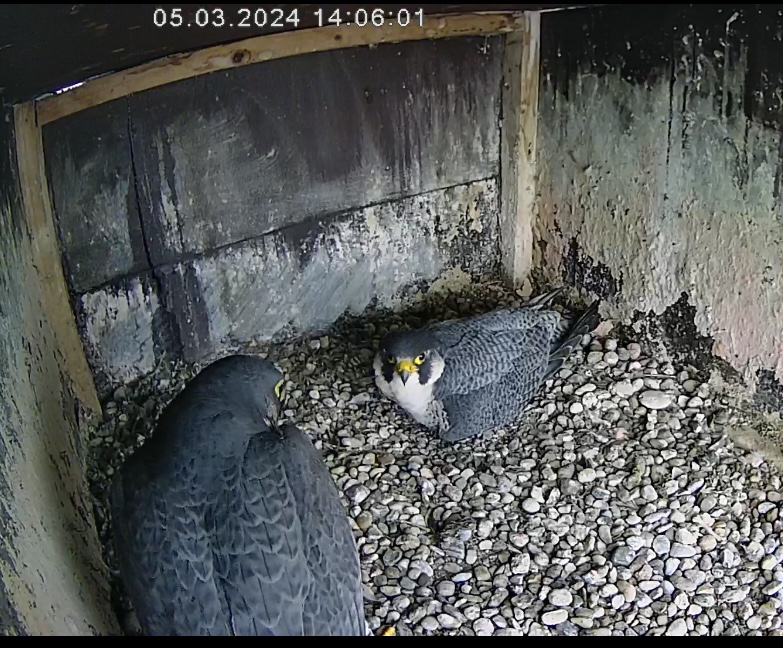 Cam 1 in Fellbach ist inzwischen auch auf den Innenraum umgestellt. Und durch Zufall kam ich grad zu einem Brutwechsel… Alvar hat ewig gezögert, ließ sich von Alizée zuerst nicht dazu überreden, das Gelege freizugeben. Tja, dann hat sie ihn doch sehr bedrängt und er gab nach ![]()