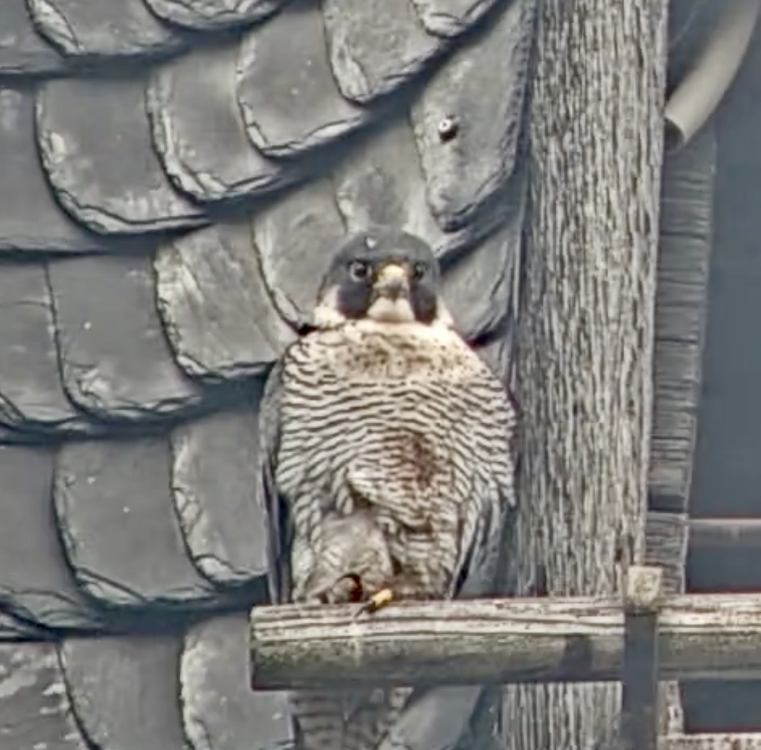 Hier in Heidelberg ist nach langen Warten wieder ein Wanderfalke im Kasten ![]()
