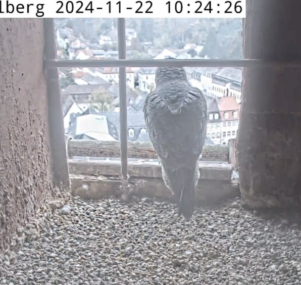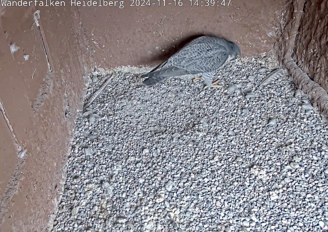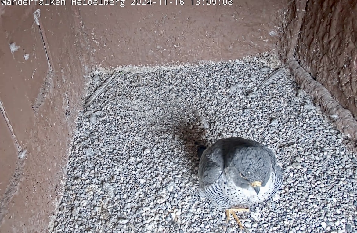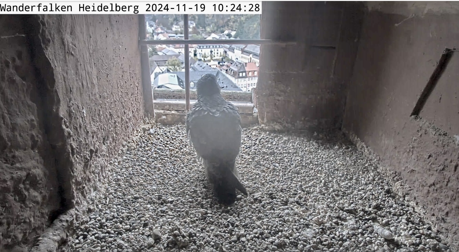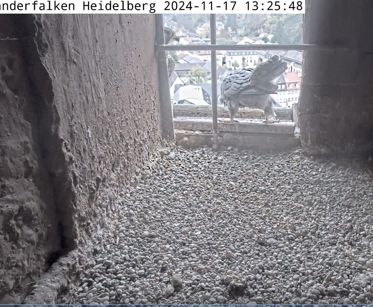 Um 13:23 ist der Wanderfalke noch am Balkon und betreibt Gefiederpflege ![]()