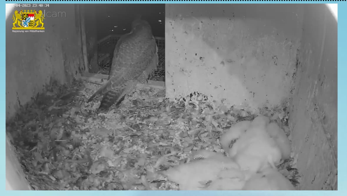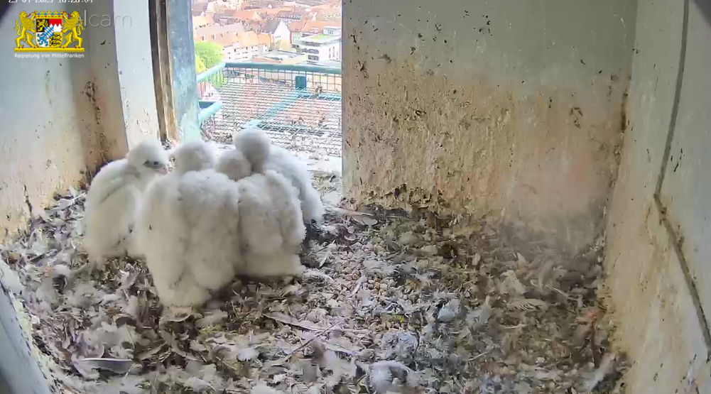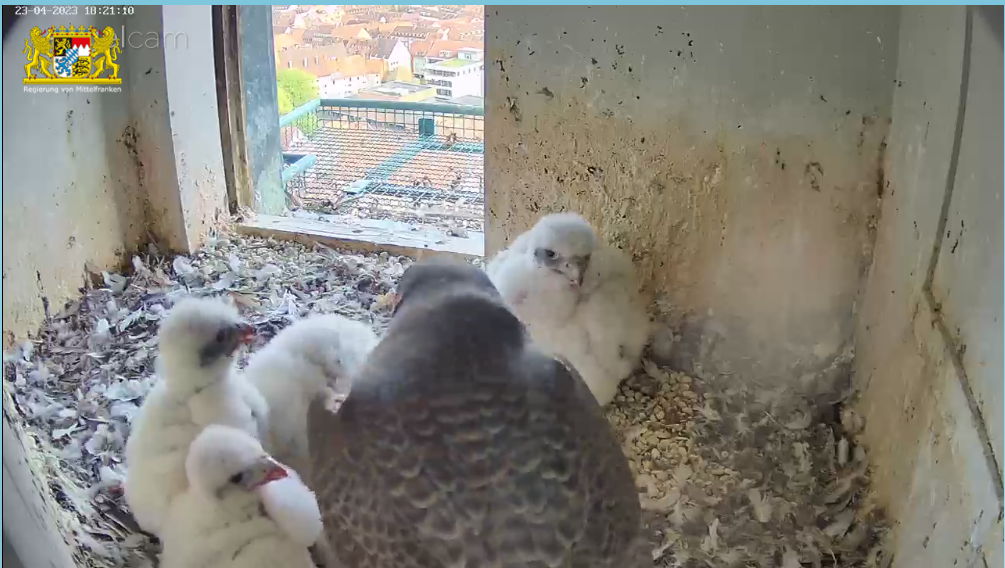 Ich habe eben nochmal betrachtet, wie die Mama einen Flauschhaufen bewacht. Könnte es sein, dass der Nachzügler ein Terzel wird und die 3 anderen Mädels sind? Denn so lange vor dem Kleinsten sind sie auch nicht geschlüpft. Und es entwickelt sich gut, ist aber immer noch viel kleiner als die Geschwister.