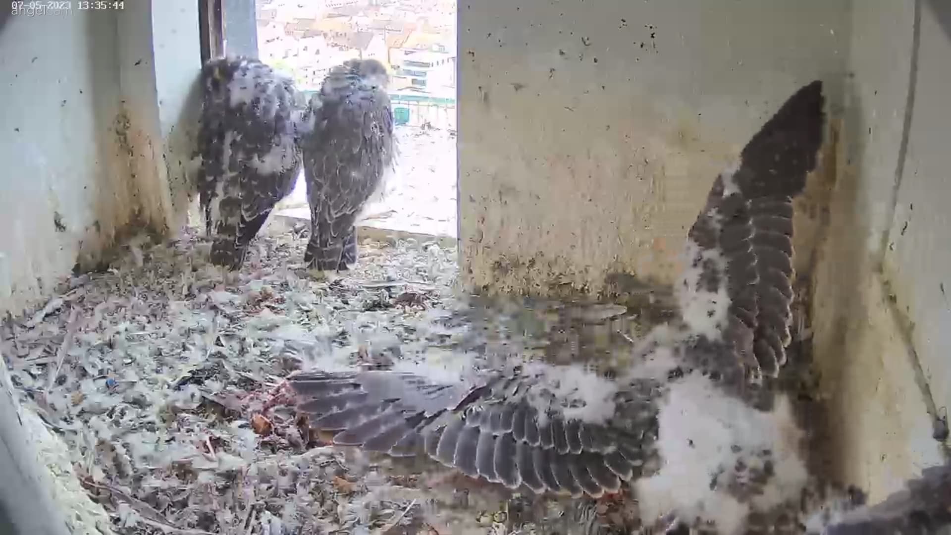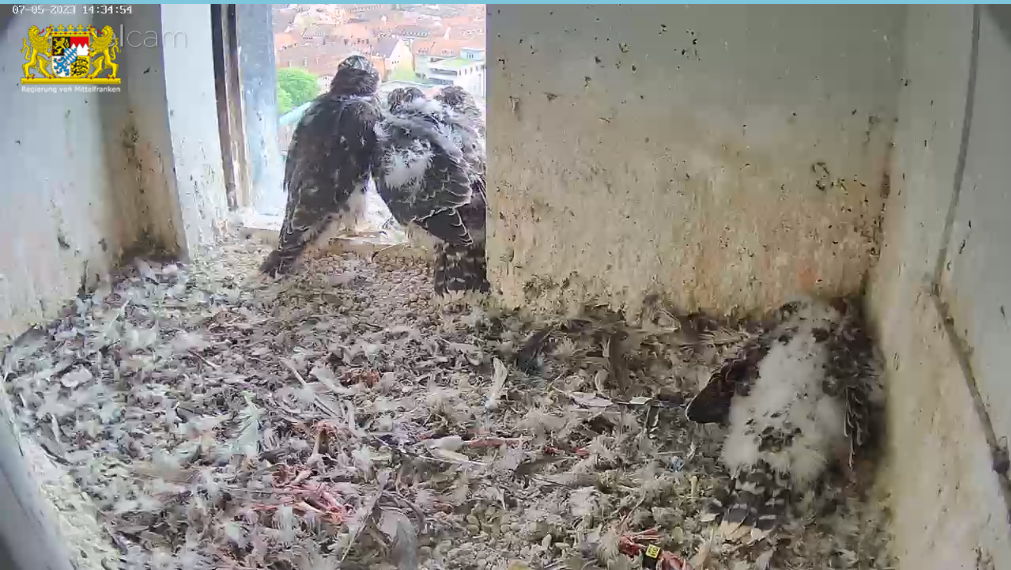 Habe gerade die Fütterung beobachtet,einer der kleinen ist rausgegangen und hat auf dem Balkon Geländer Flug Übungen gemacht, ich dachte das geht sich nicht gut aus,da fiehl er schon runter,war zu schnell für Screenshot,hat es auch jemand beobachtet