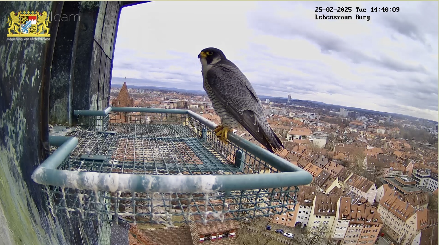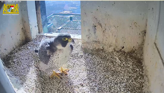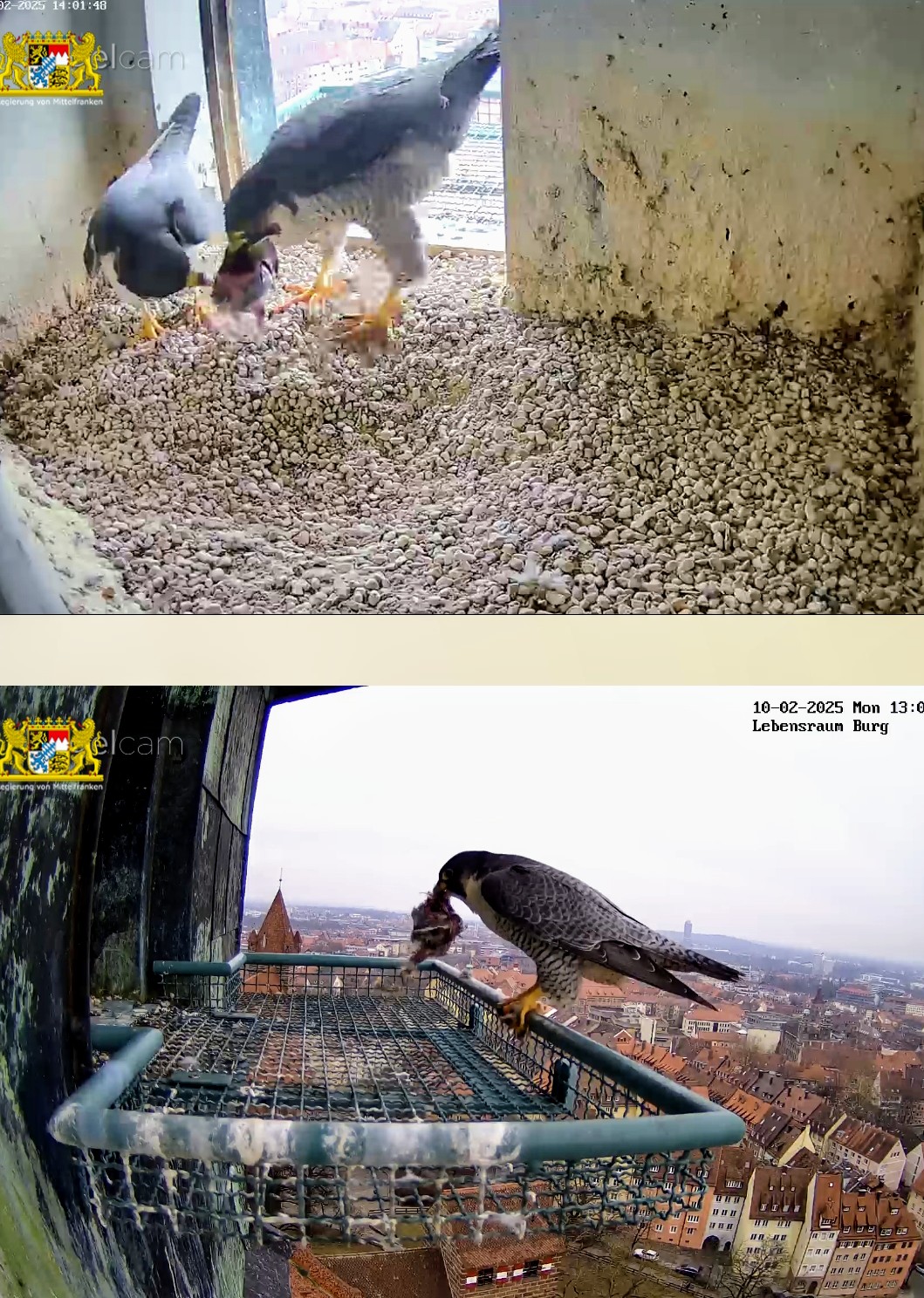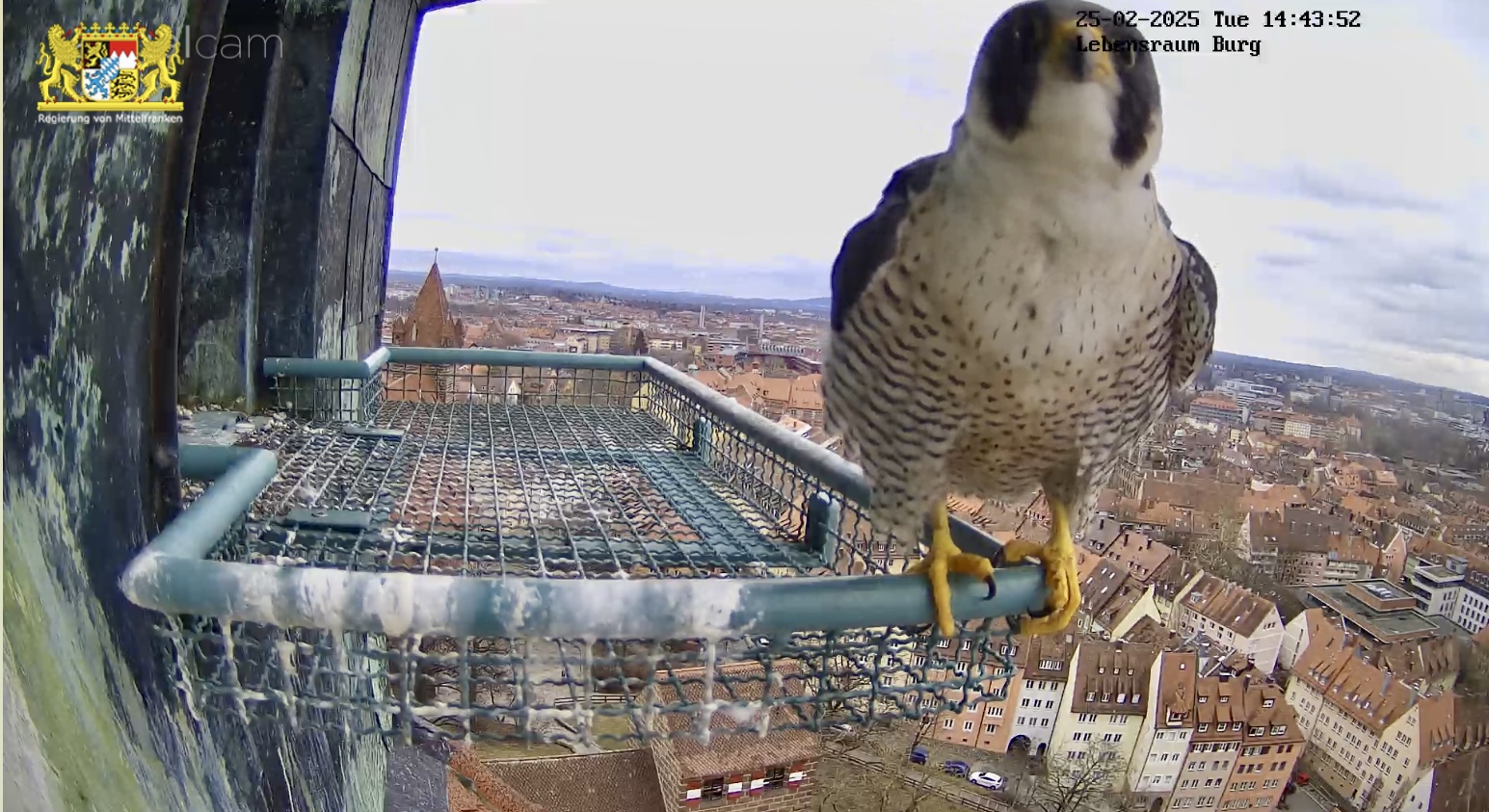 Ich hab mal in den Sichtungsmeldungen zurück gescrollt. Auf den Tag genau vor einem Jahr, am 25.02.24 wurde in den frühen Morgenstunden das erste Ei gelegt. Bisher war auch an den übrigen Brutplätzen, die wir hierzulande beobachten dürfen, meines Wissens noch keine Eiablage. Bei den Nürnberger Wanderfalken gab es in der letzten Zeit zahlreiche Sichtungen, sie kommen täglich mehrmals zum Brutplatz. Mit dem ersten Ei wird im Laufe dieser Woche gerechnet.