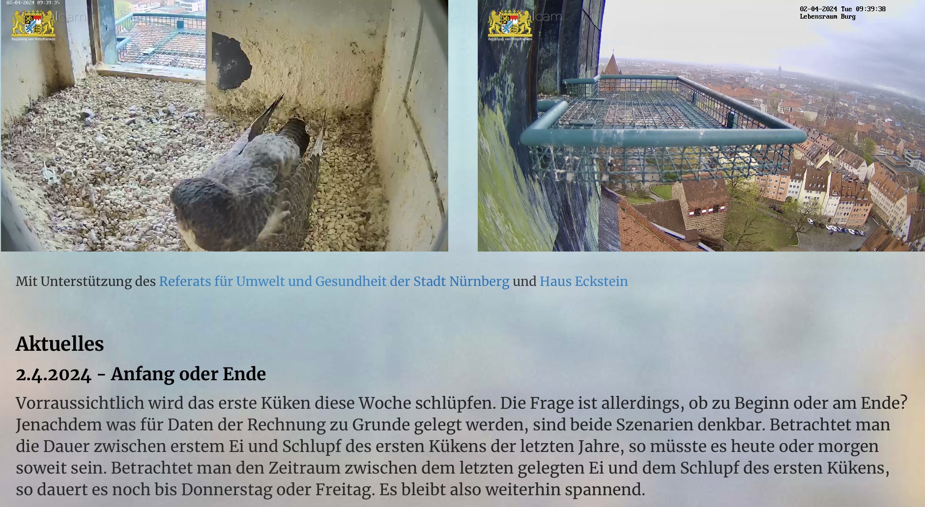 12:22 - noch nix Neues, auch nicht bei den Sichtungsmeldungen; aber Burghard sitzt schon draußen auf der Cam und wartet vermutlich genau wie wir ganz neugierig auf den Nachwuchs