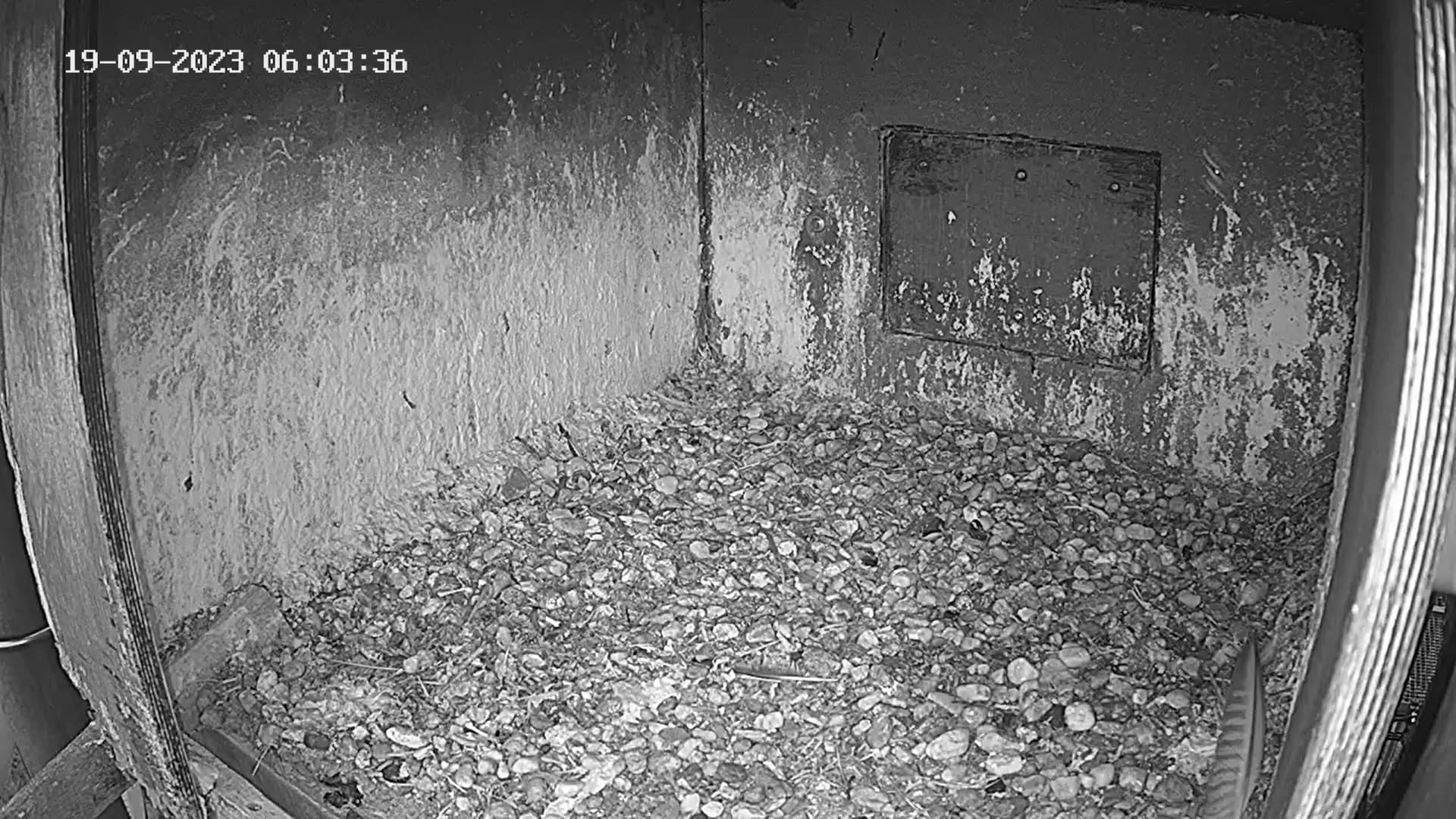 Zuerst außen schon in Farbe, innen noch schwarz-weiß. Beides Mal aber ohne Wanderfalke