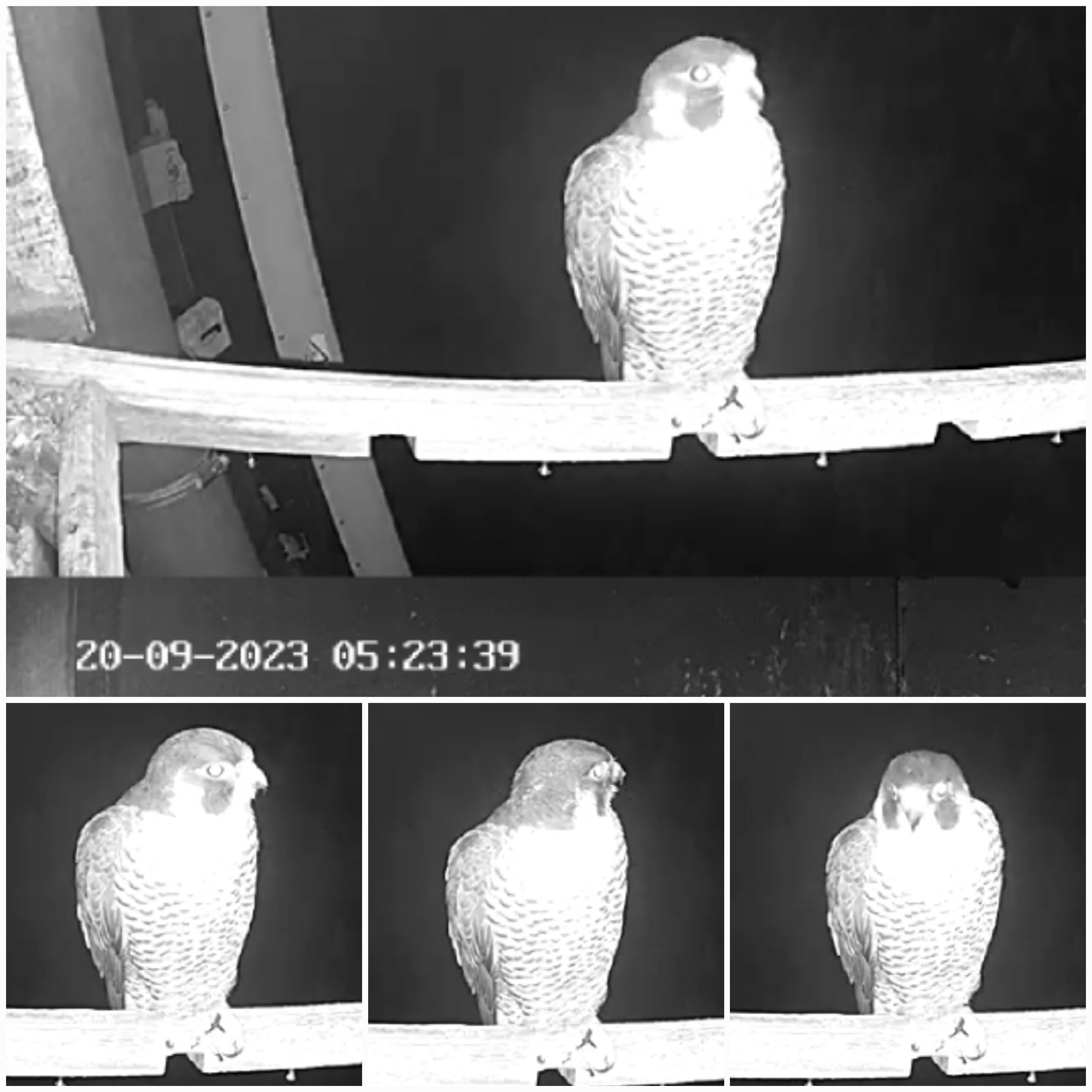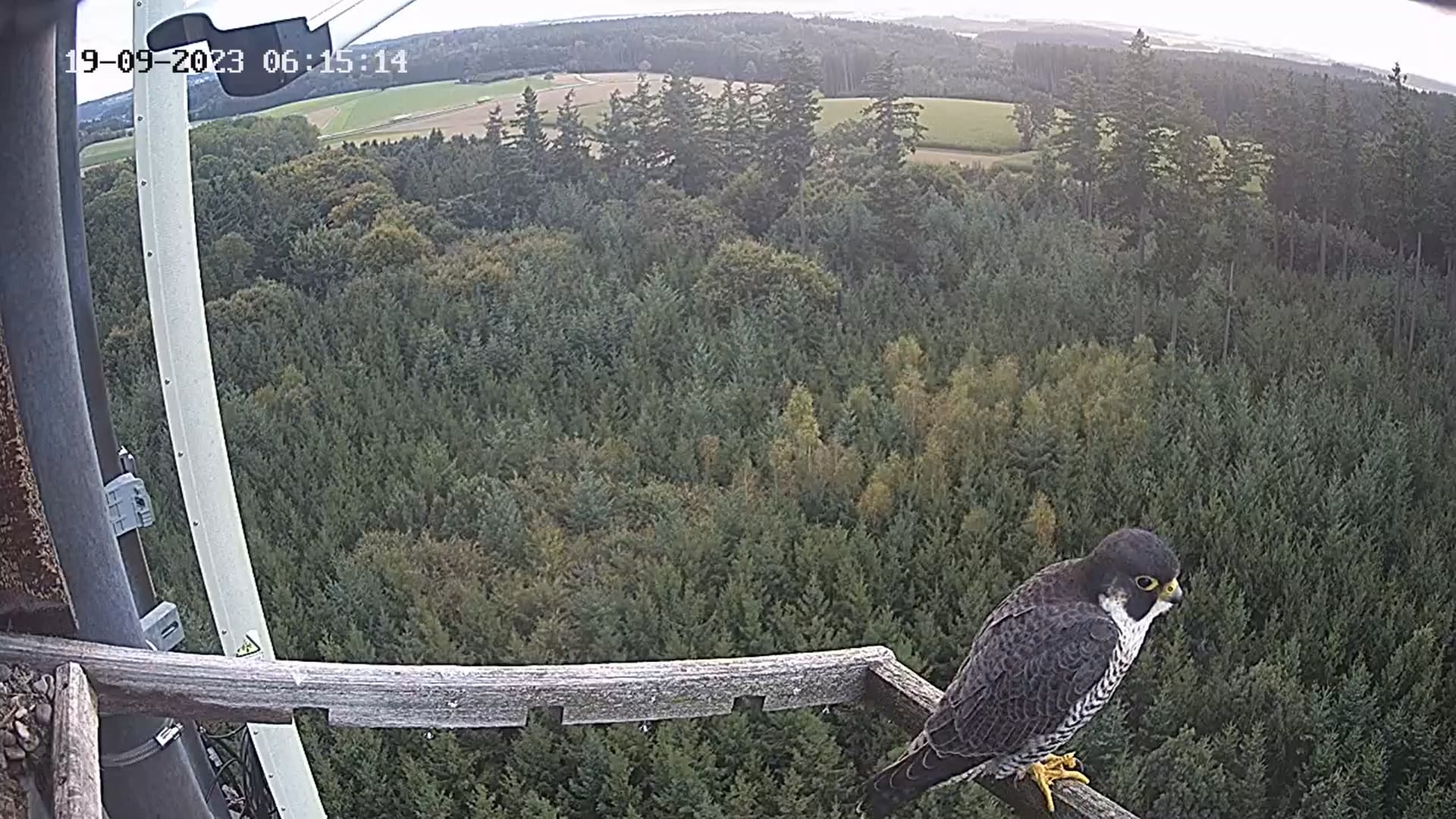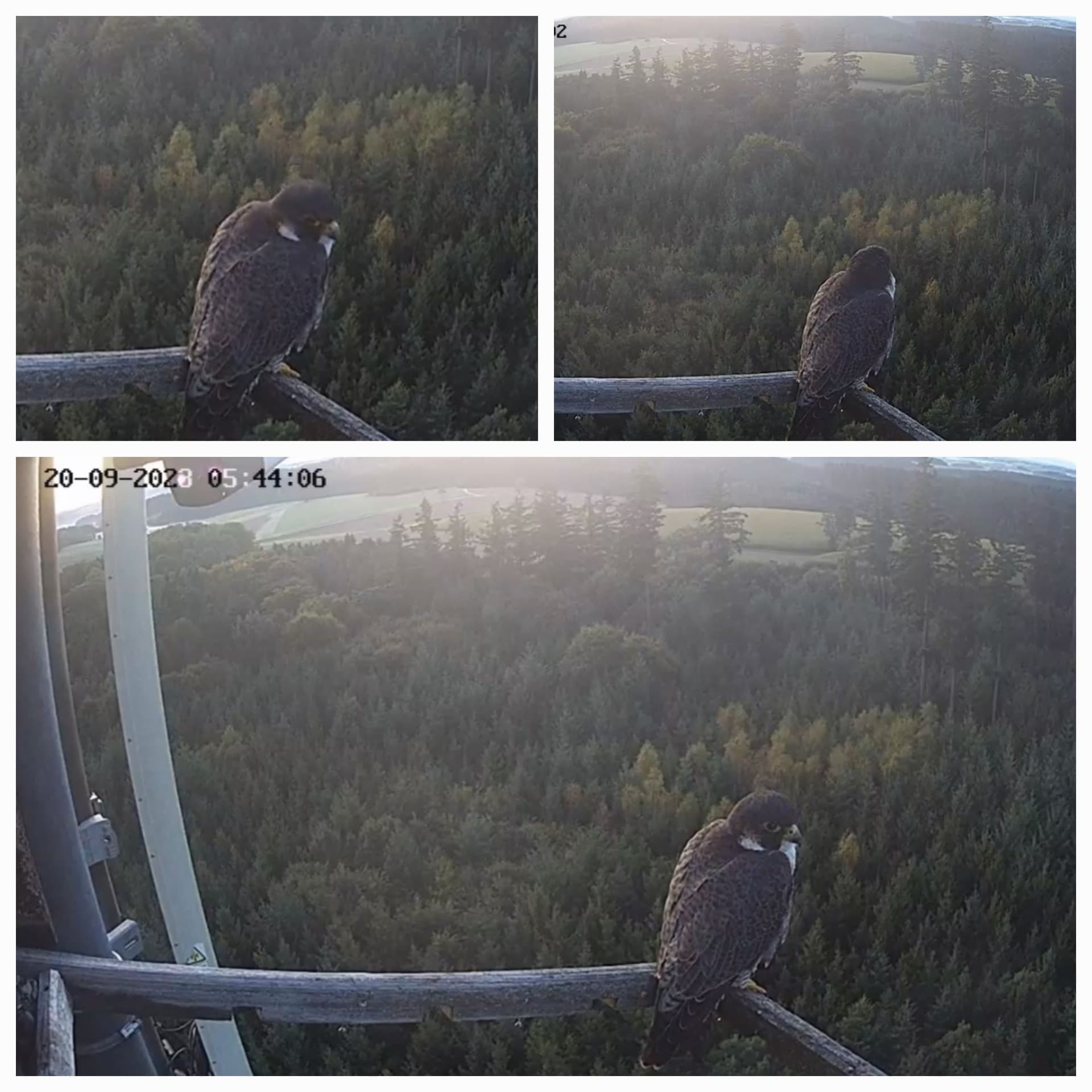 jetzt mit Wanderfalke auf der Balkonumrandung