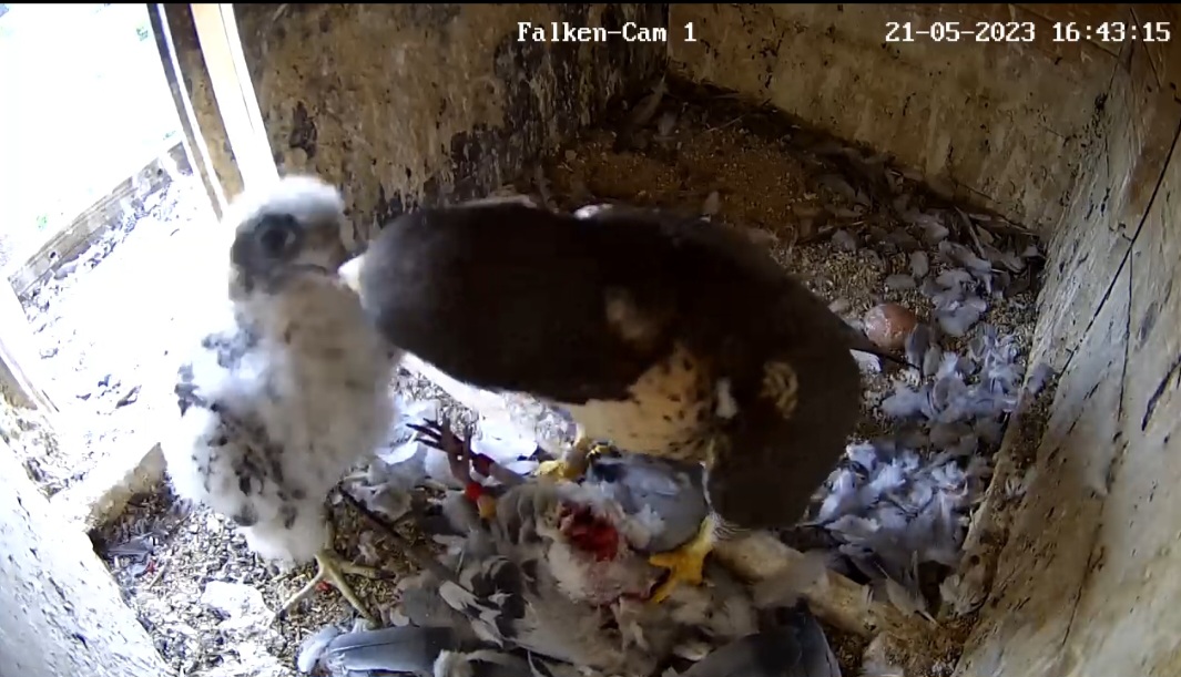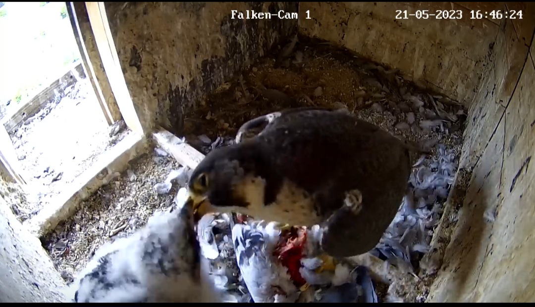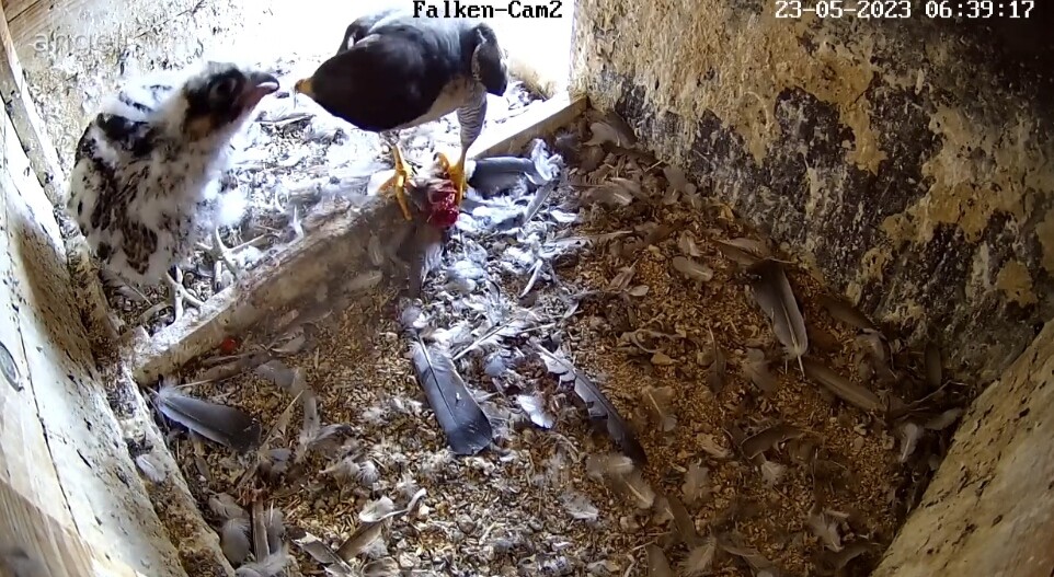 Gehören die ganzen Federn den Falken oder dem Mittagessen? ![]()