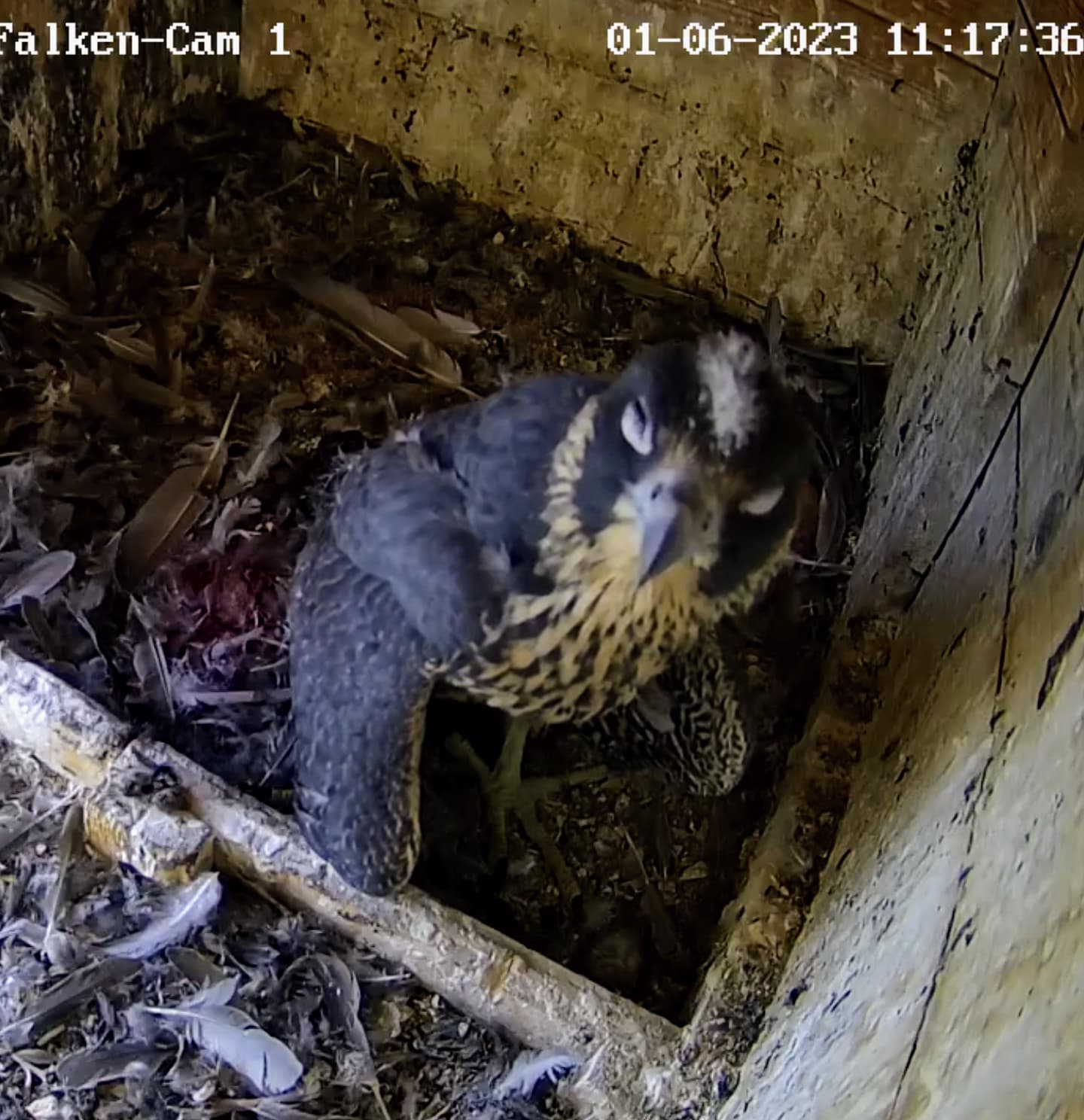 Wenn man bedenkt, wie klein es war und zuerst nicht richtig fressen wollte/konnte, hat es sich jetzt zu einem schönen Jungfalken entwickelt dank Wandas und Falcos guter Pflege ![]()