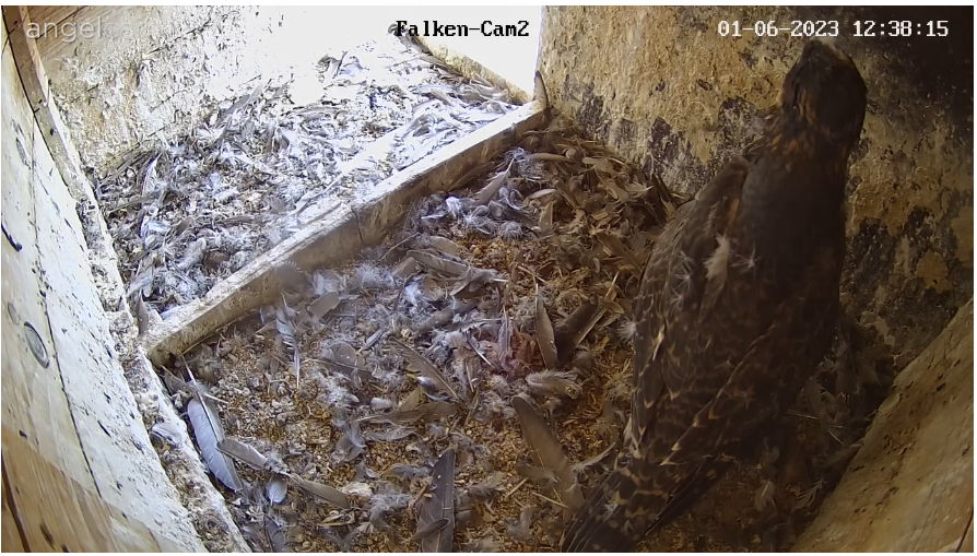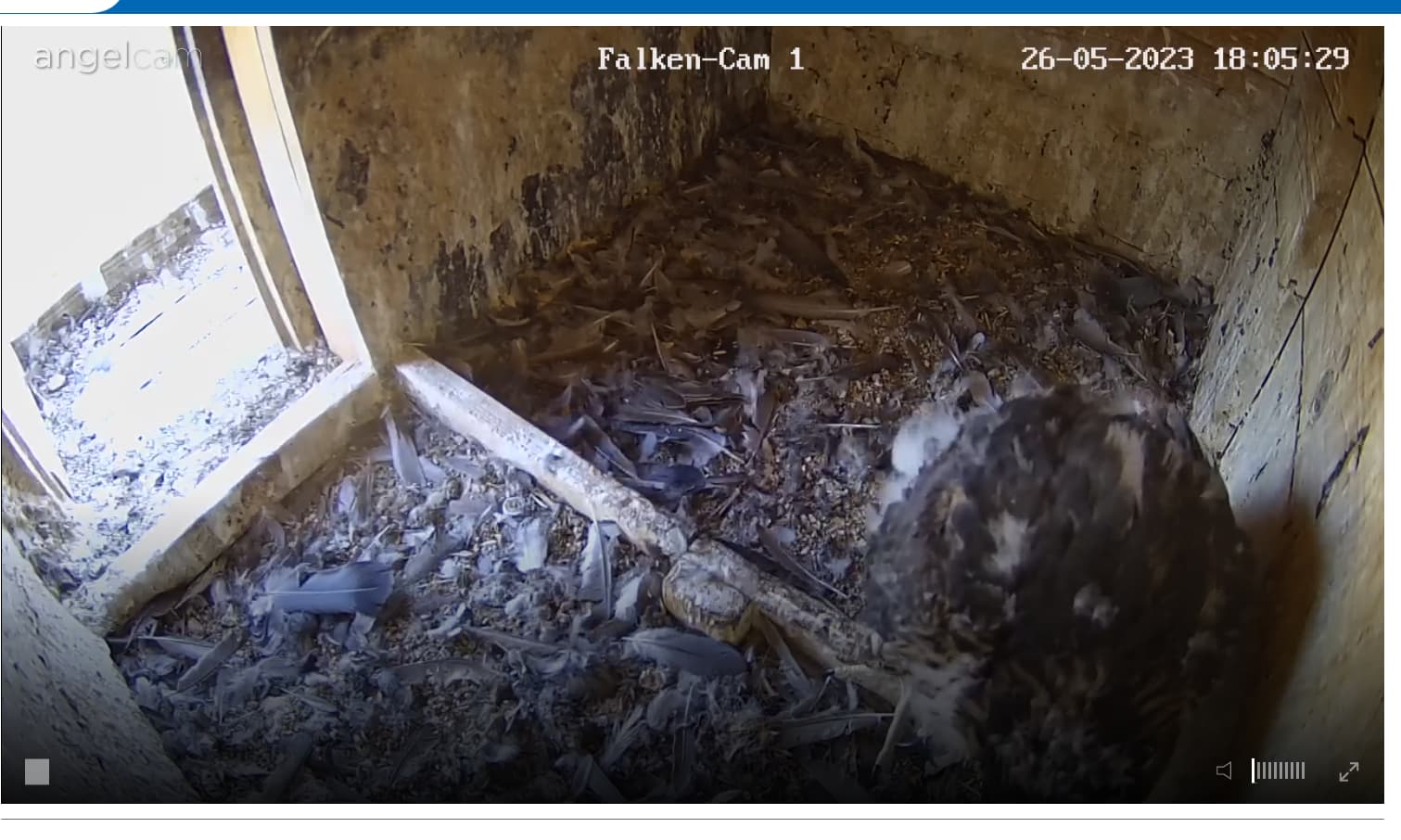 Wanda schläft immer noch mit ihrem Kleinen der inzwischen ein schöner großer Wanderfalke geworden ist ![]()