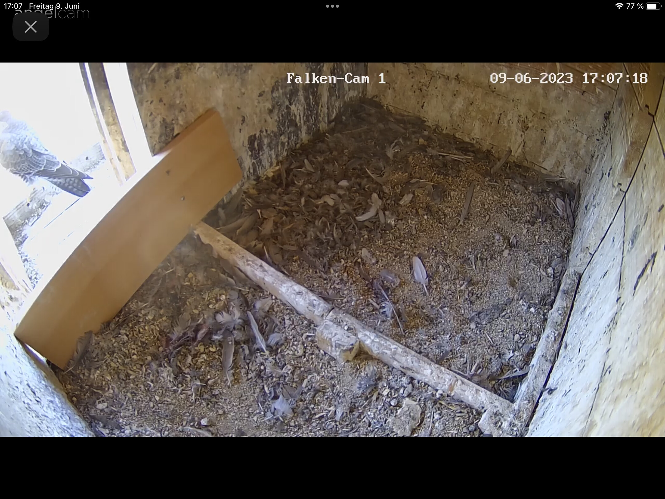 Zeit 07.06.2023 die kleine Falken Prinzessin abgestützt ung. 9 Uhr 22. Letzte Bild von sie.