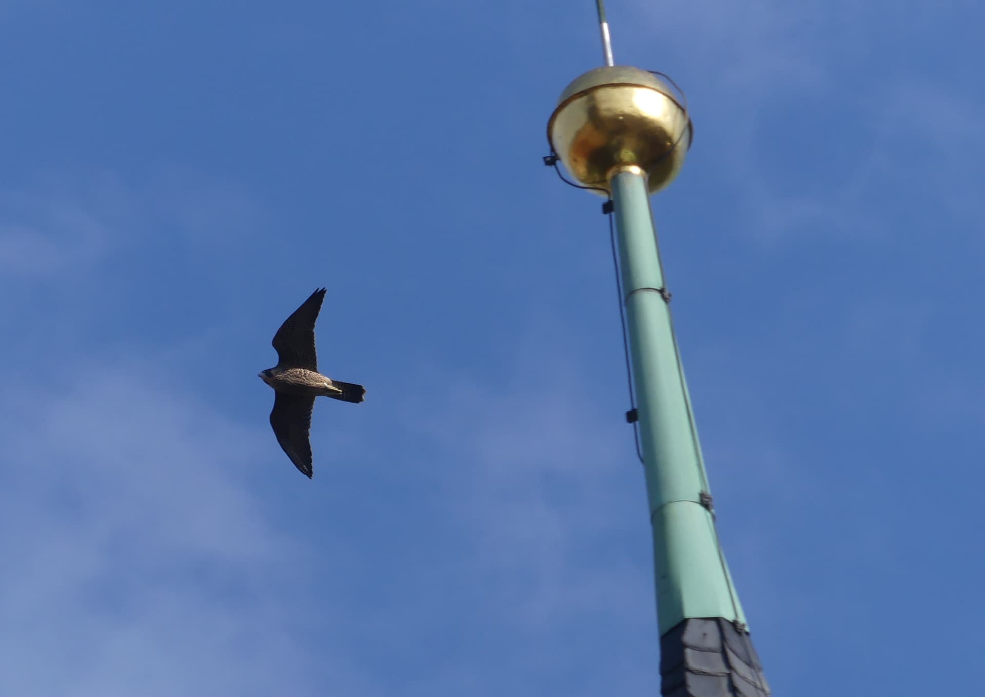 Ja, das war ein ganz besonderes Geschenk an diesem Tag !! Ich konnte die drei noch etwa eine halbe Stunde in der Abendsonne um den Kirchturm fliegen sehen. Die beiden Altvögel in größerer Höhe