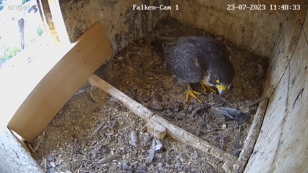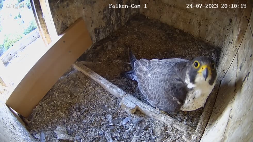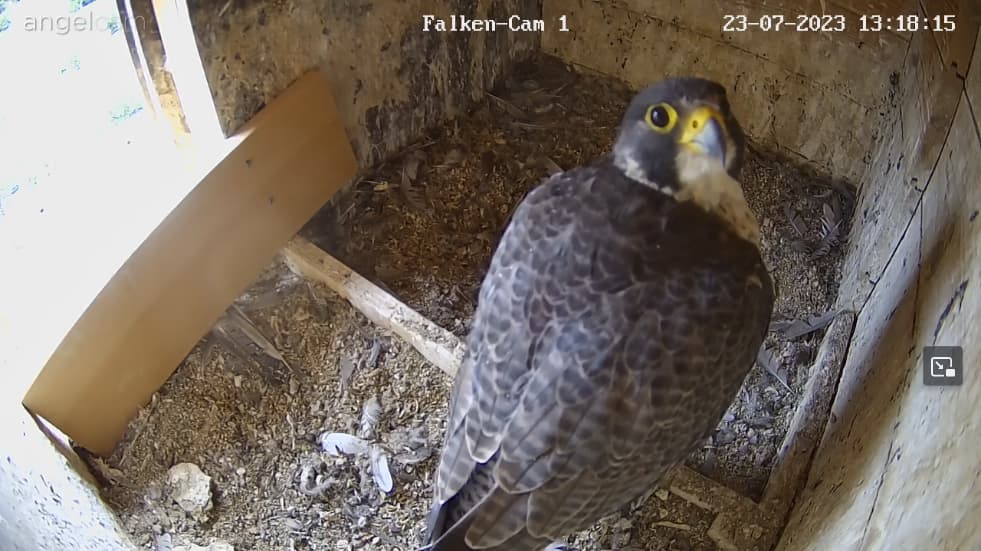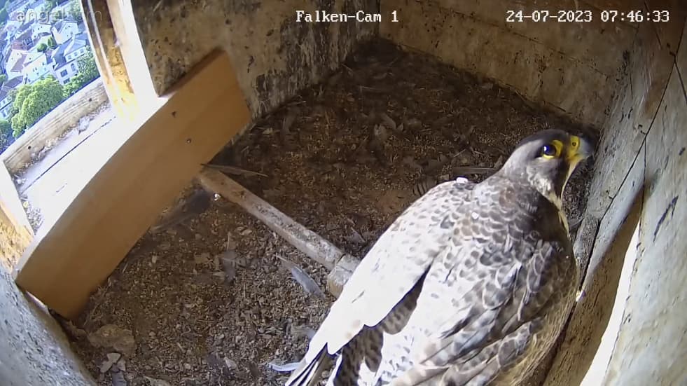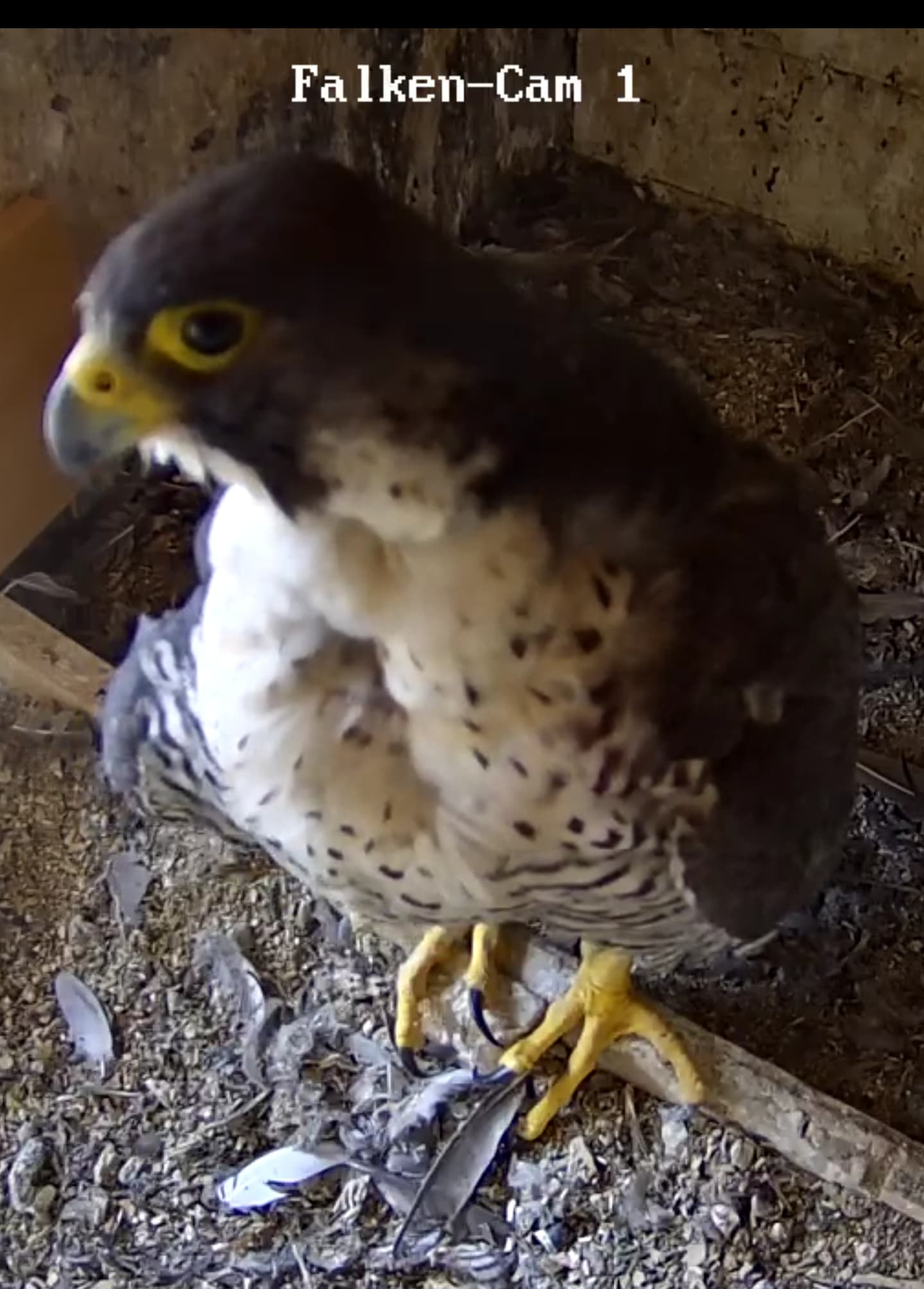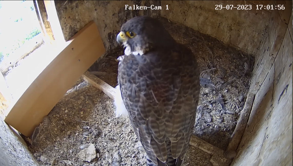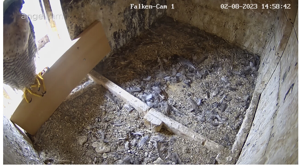 Es ist nach dem Flügge-Werden der Jungfalken auch nicht mehr ganz so einfach, sie weiter zu beobachten. Sie erkunden anfangs noch die Umgebung, aber mit zunehmendem Alter werden die Lernflüge zum Beutemachen etc. immer länger und weiter weg, bis sie schließlich irgendwann die heimatlichen Gefilde verlassen. Auch bei anderen Webcams ist es ähnlich, mit Glück ist mal ein Jungfalke zu sehen, vielleicht kommt ab und zu auch mal einer sogar noch in den Kasten zurück auf Stippvisite, aber das ist eher selten, zumindest nach meinen Beobachtungen über die Jahre weg auf diversen Cams.