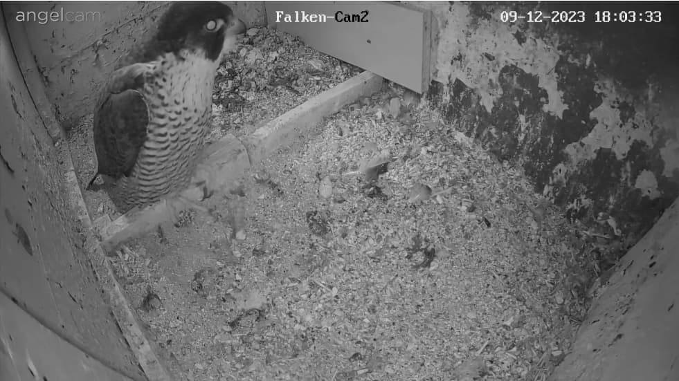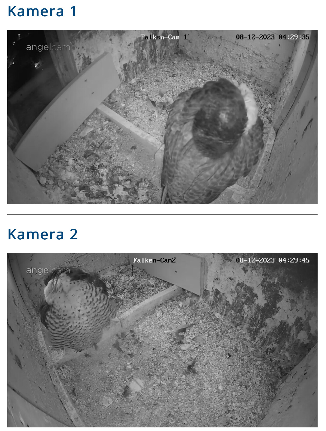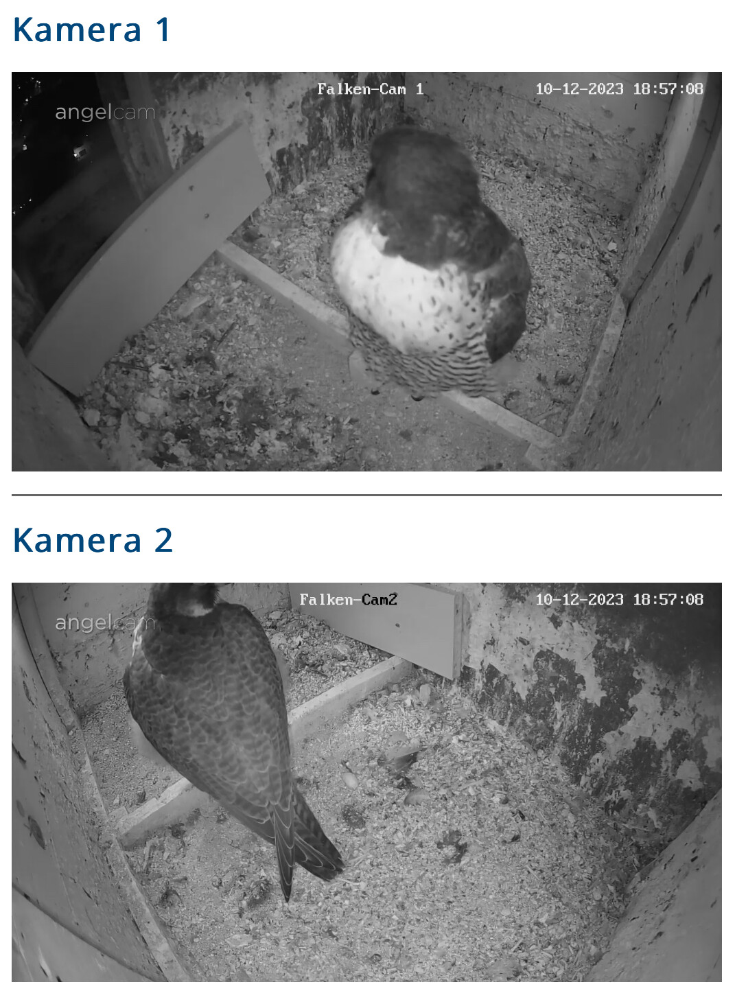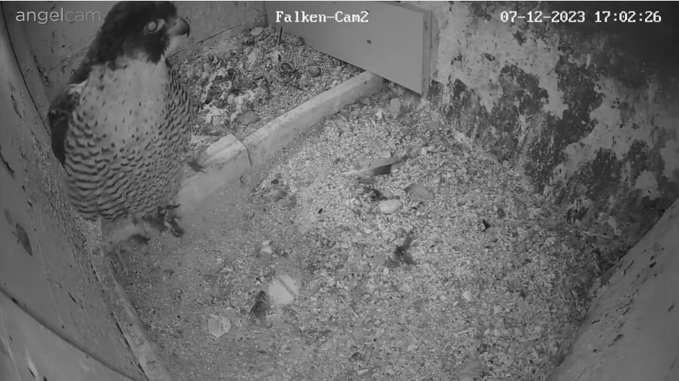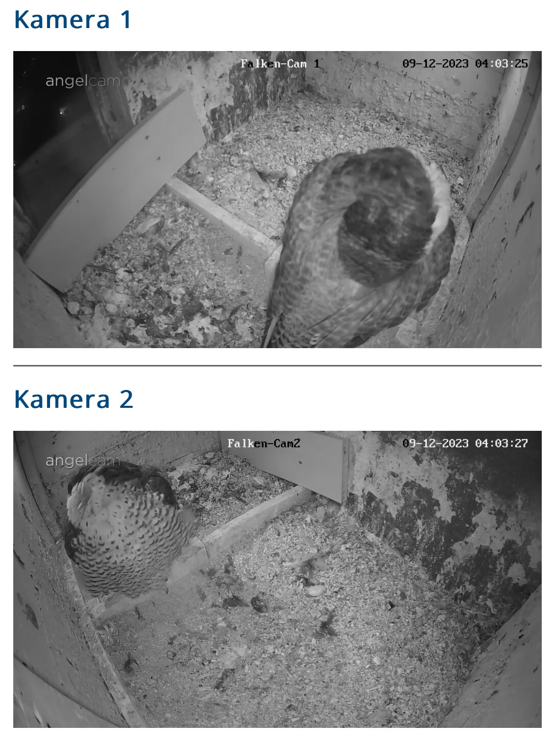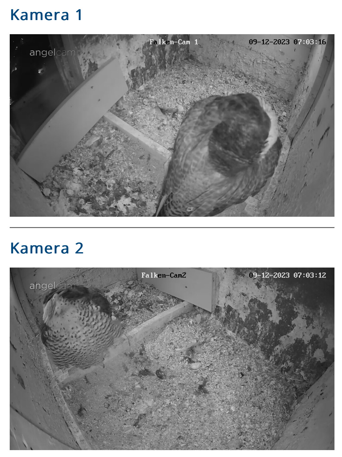 Am Dienstag hat eine Kamera noch Tageslicht und in der anderen sieht man einen sehr gut gefüllten Kropf. Viele Grüße!