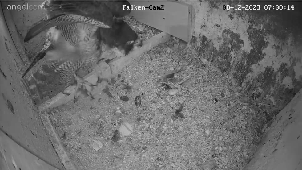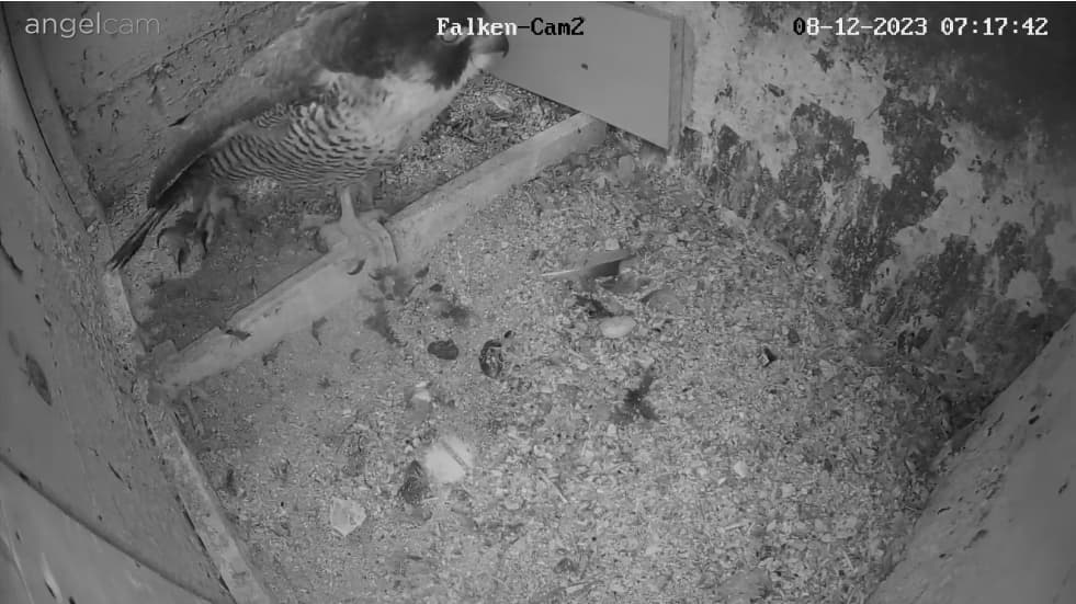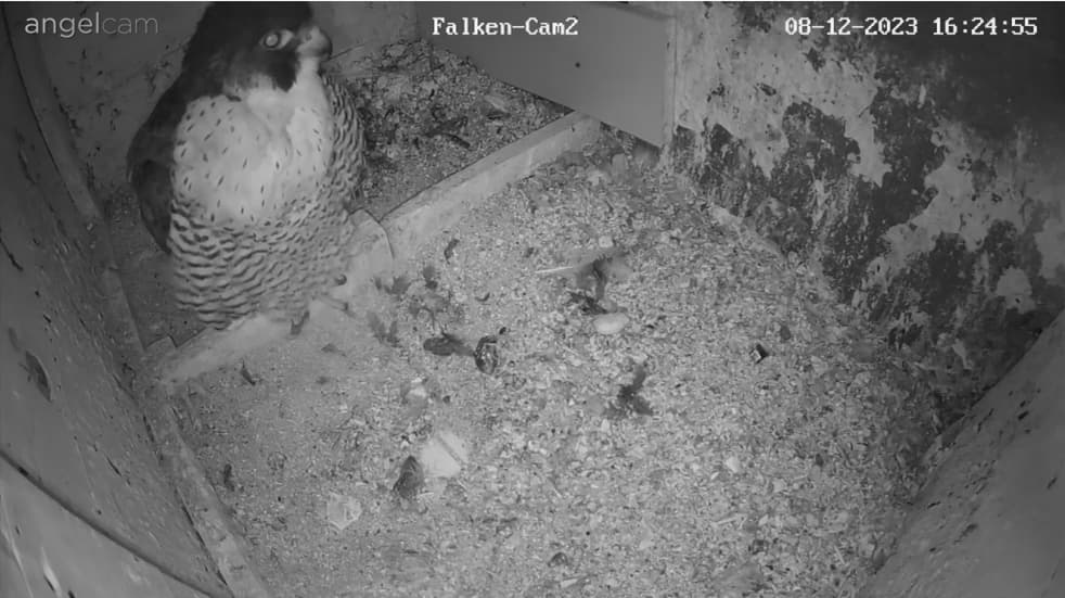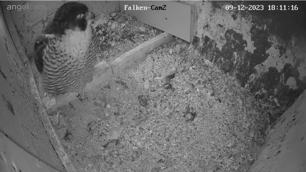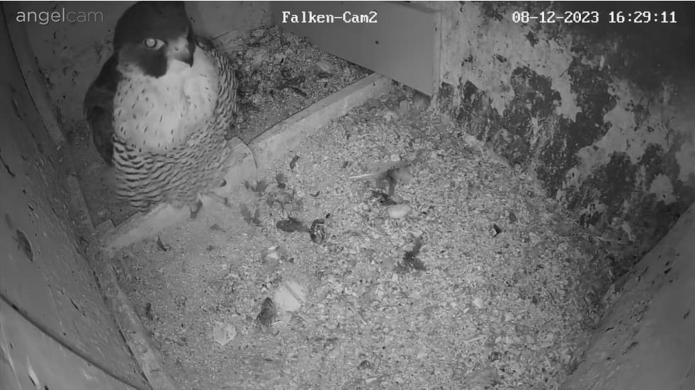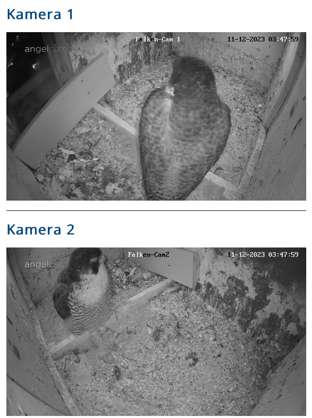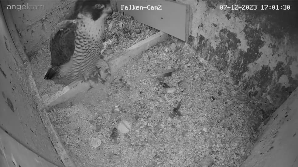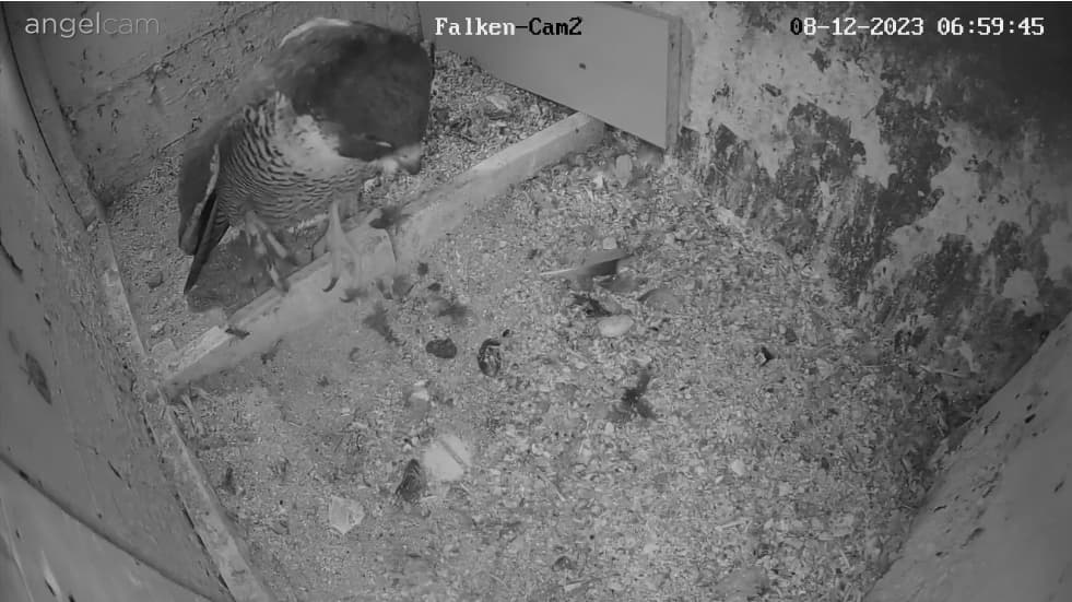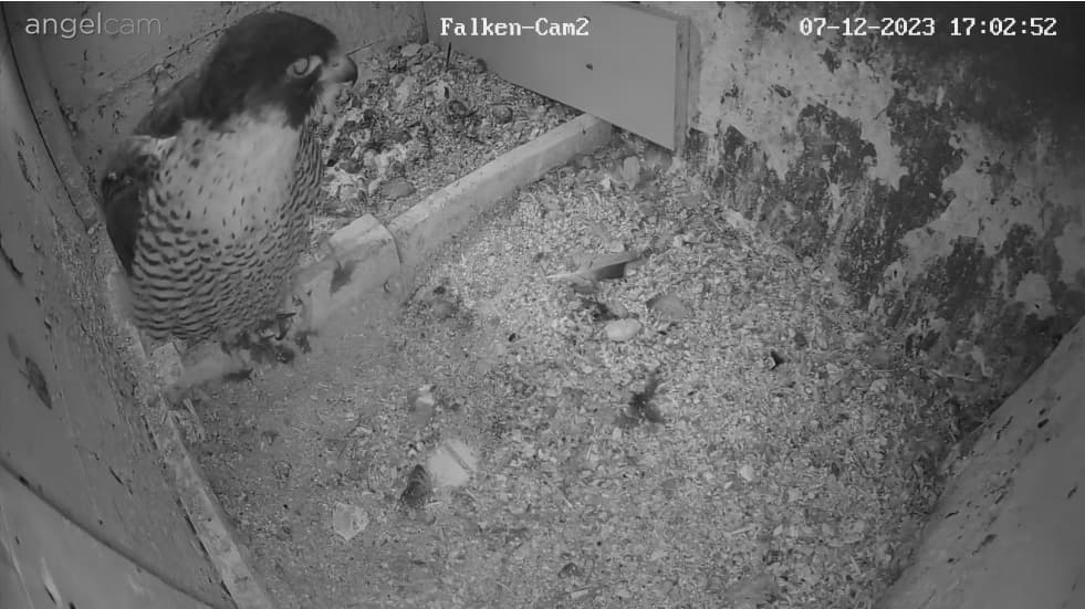 Am Dienstag hat eine Kamera noch Tageslicht und in der anderen sieht man einen sehr gut gefüllten Kropf. Viele Grüße!